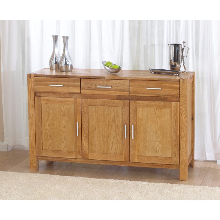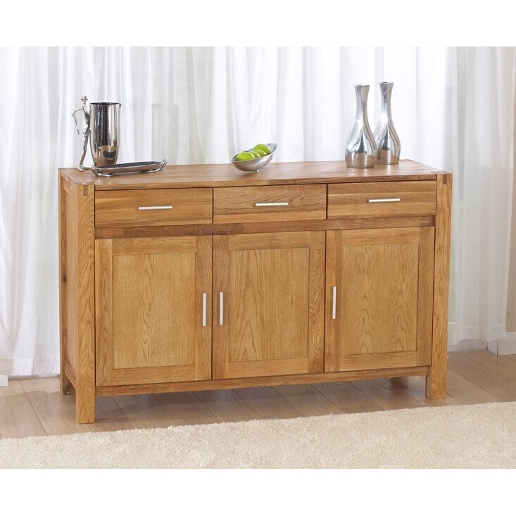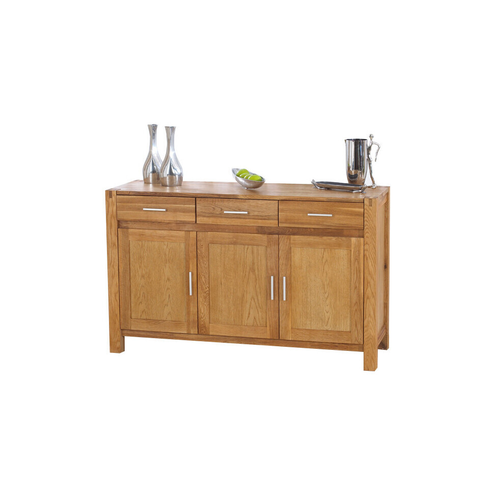 The Verona collection, made from resilient, handsome oak, combines handy practicality with elegant style in a range full of clean lines that will look fabulous and complement any space. The Verona offers plenty of space to store your essentials. The classic sideboard features three doors and three drawers. The Verona sideboard's oak construction with an oiled finish is timeless; ideal for both modern and classic interiors.