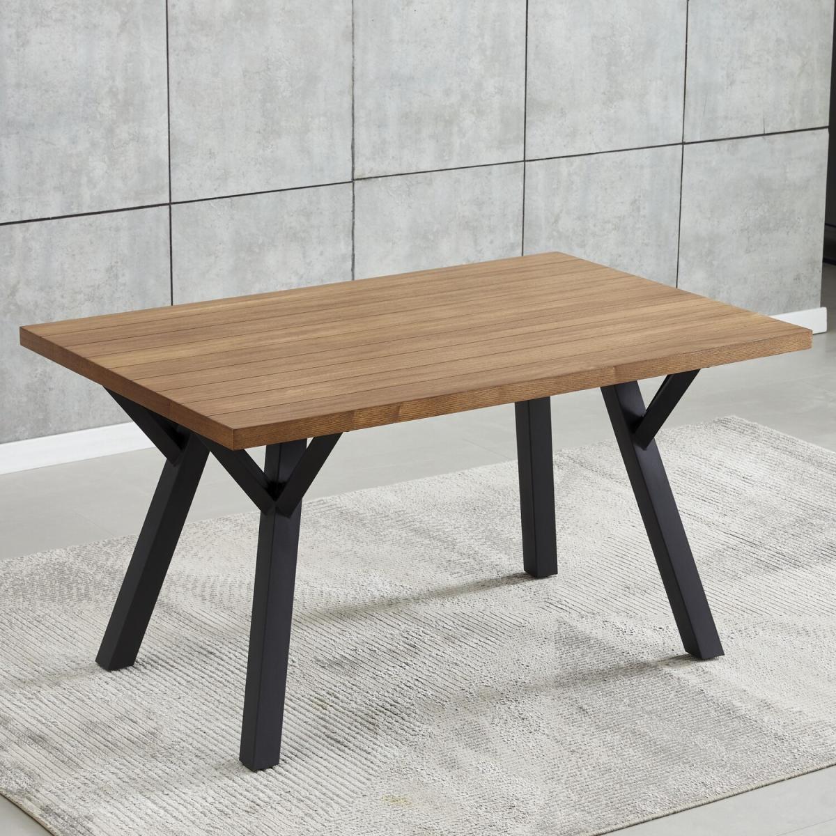 Introducing the Verona 140cm Rectangular Dining Table - Timeless Elegance for Your Dining Space! Upgrade your dining area with the Verona 140cm Rectangular Dining Table, a stunning fusion of contemporary design and enduring craftsmanship. Measuring 140cm x 90cm, this wooden dining table provides a spacious yet intimate setting for your family and friends to gather around. The solid wooden top exudes warmth and character, offering a durable surface that withstands the test of time. The sleek black powder-coated legs not only provide a stable foundation but also introduce a touch of modern sophistication to the table's design. Complementing the legs, the genuine wooden veneer finish adds a luxurious touch, creating a harmonious blend of classic and contemporary aesthetics. The Verona dining table is more than just a piece of furniture, it's a statement of style that enhances the visual appeal of your dining space. Now, you can enjoy the beauty and functionality of this exquisite piece without the stress of assembly. Transform your dining space with the Verona 140cm Rectangular Dining Table - where quality meets design, and every meal becomes a celebration. Redefine your dining experience with a table that effortlessly combines elegance and practicality, creating a focal point for memorable gatherings and shared moments. Elevate your home with the timeless charm of the Verona dining table today.