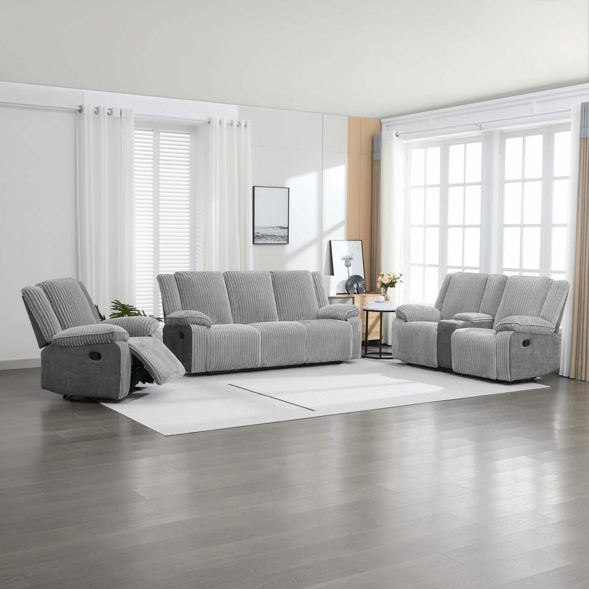 Relax in comfort and style with the Verona Latch Recliner Sofa Set. Upholstered with premium soft Jumbo Cord fabric, a softer material providing a plush and inviting feel, the Verona ensures your relaxation is unmatched. The standout feature of the Verona is the centre console. With 2 cupholders and a handy storage compartment this makes the Verona 2-seater perfect for movie night. A great hidden feature of the Verona 3-Seater is the fold down middle seat, which unveils a handy drinks tray with 2 cupholders. Recline with ease with the easy to use recline function. Simply lift the latch on the side of the sofa and relax. Available in Beige and Grey, the Verona Manual Recliner Sofa Set is the perfect addition to your living room. Dimensions - Height: 103.5cm, Width: 1 Seater: 100.5cm, 2 Seater: 186cm, 3 Seater: 216cm, Depth: 93cm, Seat Depth: 57cm, Seat Height: 50cm, Seat Width: 1 Seater: 56cm, 2 Seater: 145.5cm, 3 Seater: 174cm, Backrest Height: 66cm