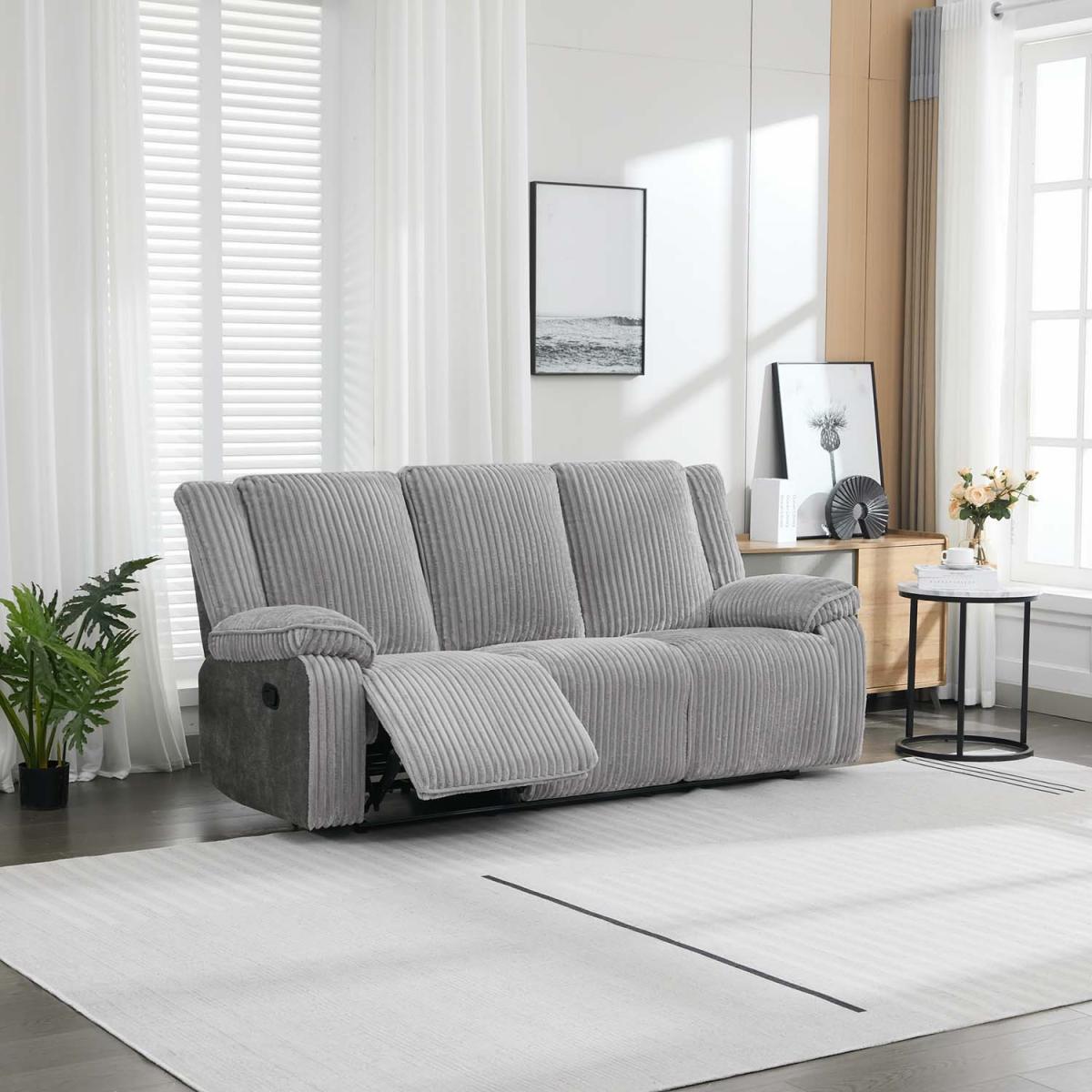 Relax in comfort and style with the Verona 3-Seater Manual Recliner Sofa. The Verona is upholstered with premium soft Jumbo Cord fabric, a softer material providing a plush and inviting feel, ensuring your relaxation is unmatched. With deep foam padding, pocket springs and lumbar support, you will not want to leave this gorgeous chair. Recline with ease with the easy to use recline function. Simply lift the latch on the side of the sofa and relax. A great hidden feature of the Verona 3-Seater is the fold down middle seat, which unveils a handy drinks tray with 2 cupholders. Available in Beige and Grey, the Verona Manual Recliner Sofa is the perfect addition to your living room. Dimensions - Height: 103.5cm, Width: 216cm, Depth: 93cm, Seat Depth: 57cm, Seat Height: 50cm, Seat Width:174cm, Backrest Height: 66cm