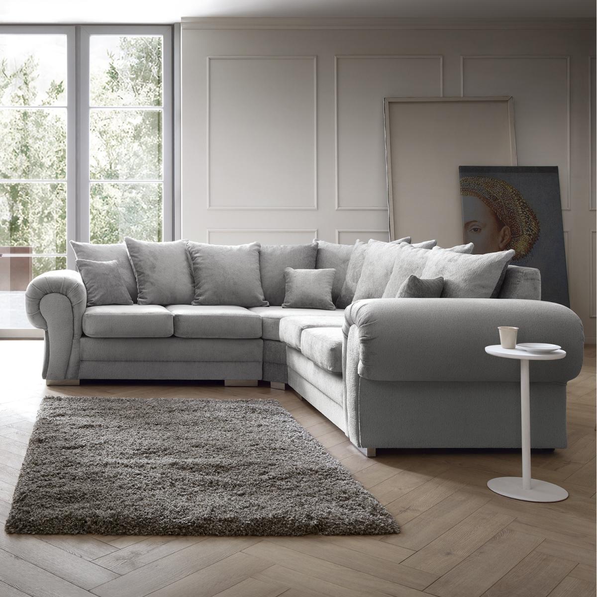 A beautiful soft chenille corner sofa with a luxurious finish. The Verona collection features a classic and timeless button-tufted design on its scroll arms. A classic twist on otherwise modern sofa, this feature makes the Verona an elegant and sophisticated choice. Chenille is durable and easy to clean. Legs have an elegant chrome effect finish making the sofa look very modern and incredibly light. Fibre filled back cushions provide comfortable support and deep foam filled slab seats rest upon a solid wood plinth base. An excellent addition to your living room that is made to last. Overall Size H80 x W245 x D245cm Height (H) 80cm Width (D1) 92cm Footstool Width (W1) 92cm Depth of seat (DS) 60cm Floor to seat (F) 42cm Seat Back height (S) 50cm Arm rest height (H1) 58cm Leg Height (L) 5cm Overall Size H80 x W245 x D245cm Height (H) 80cm Width (D1) 92cm Footstool Width (W1) 92cm Depth of seat (DS) 60cm Floor to seat (F) 42cm Seat Back height (S) 50cm Arm rest height (H1) 58cm Leg Height (L) 5cm