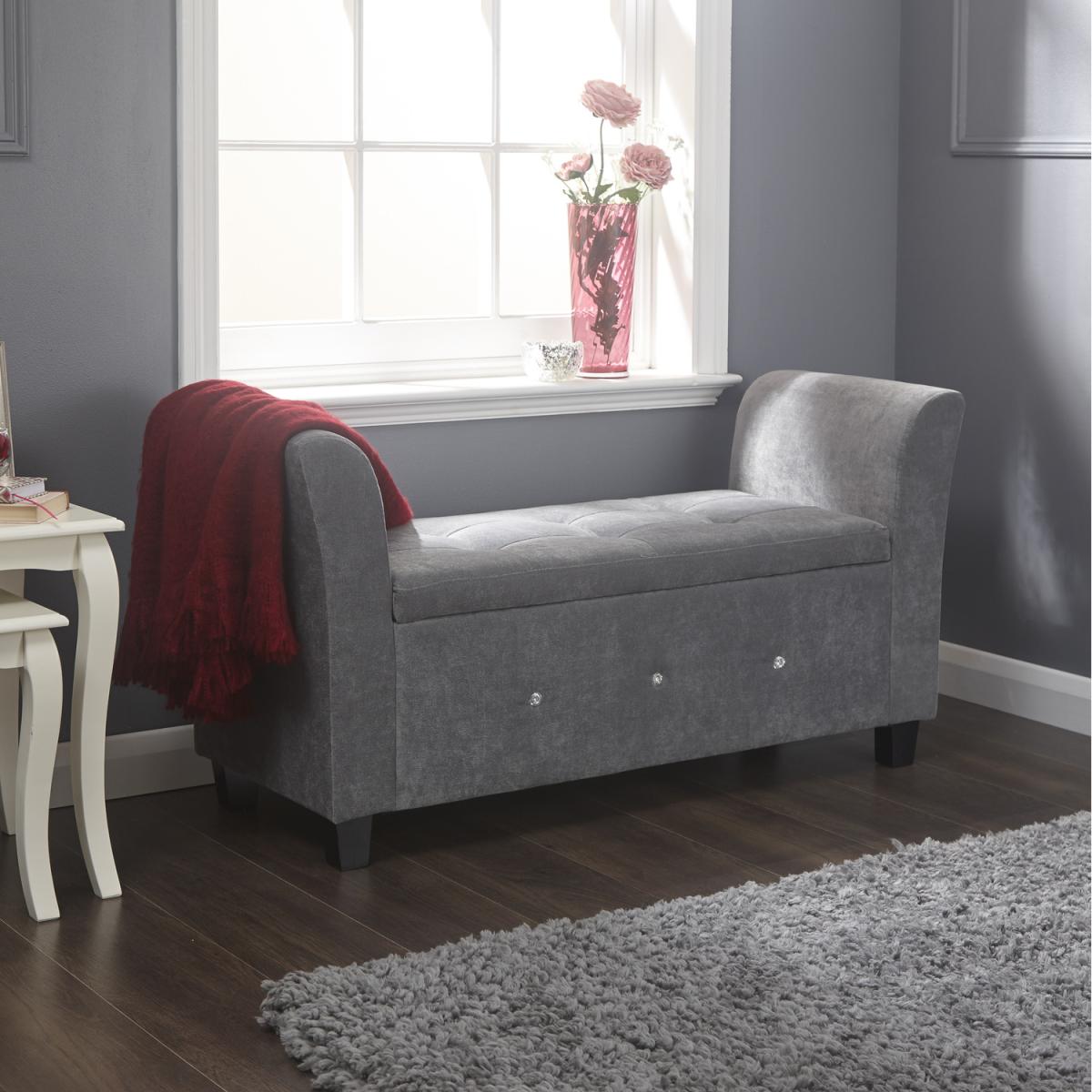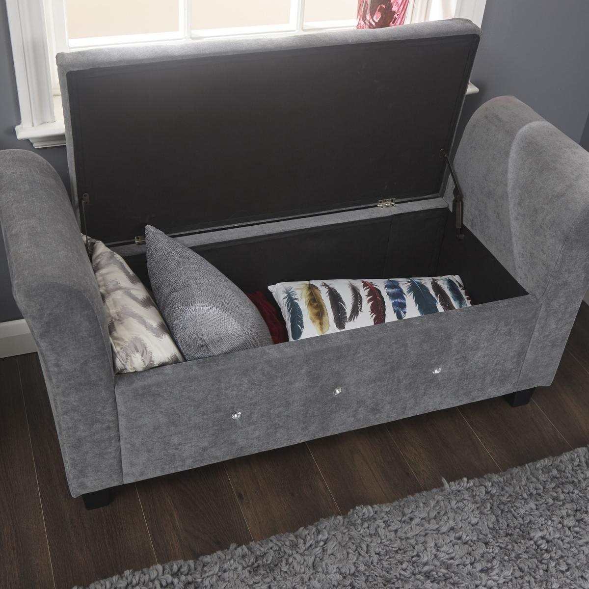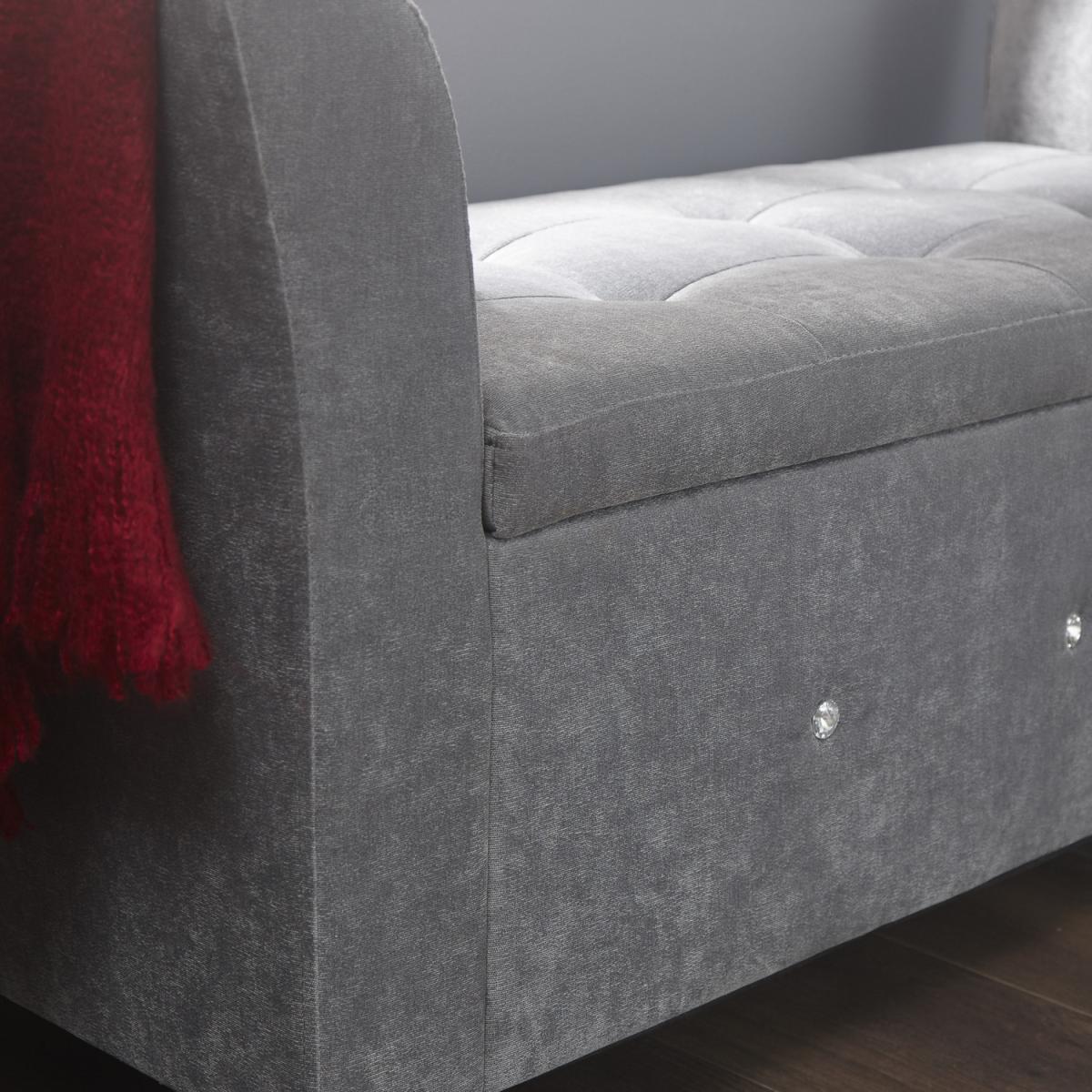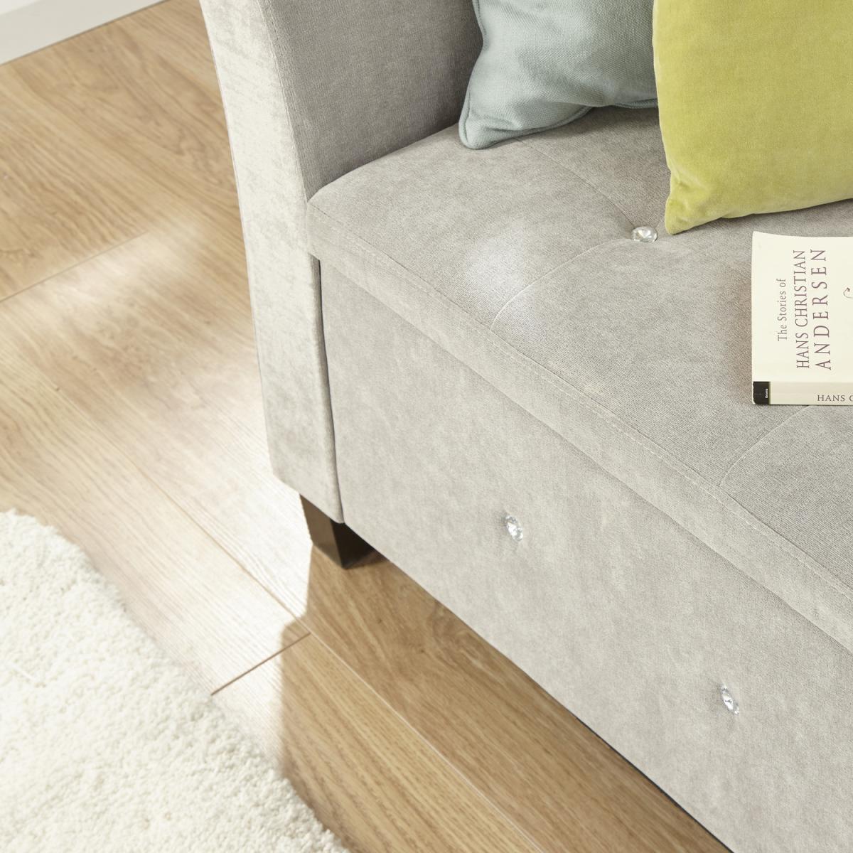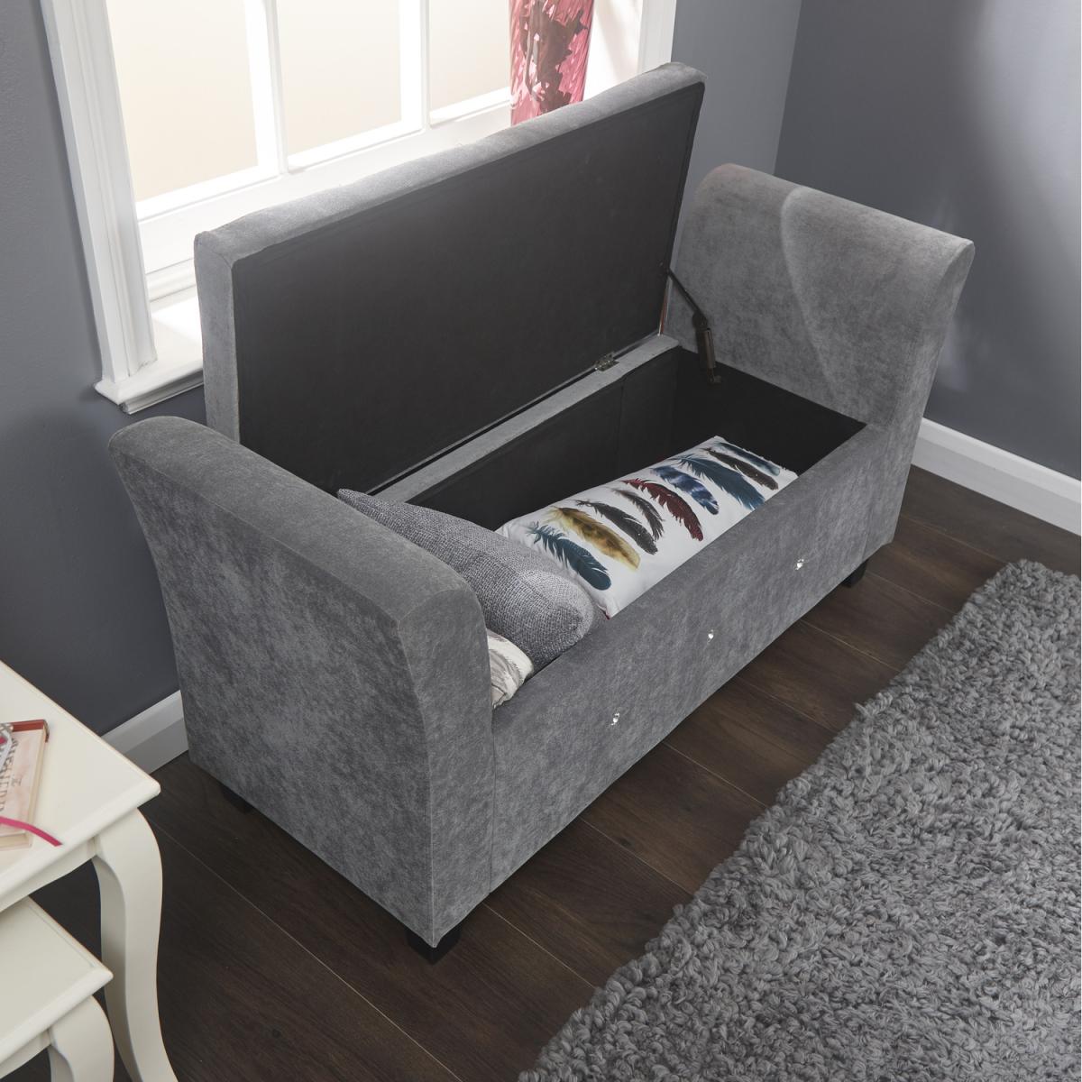 Adding instant charm to your hallway or bedroom, the lovely Verona window seat will make the perfect perch for putting on your wellies ready for a long yomp with the dog. With a deeply buttoned seat and generous storage space inside for hats, gloves, scarves, even shoes and boots or even bed linen & clothes. Finished in a luxurious soft chenille fabric which dazzling diamantes making this a true focal point for any room.