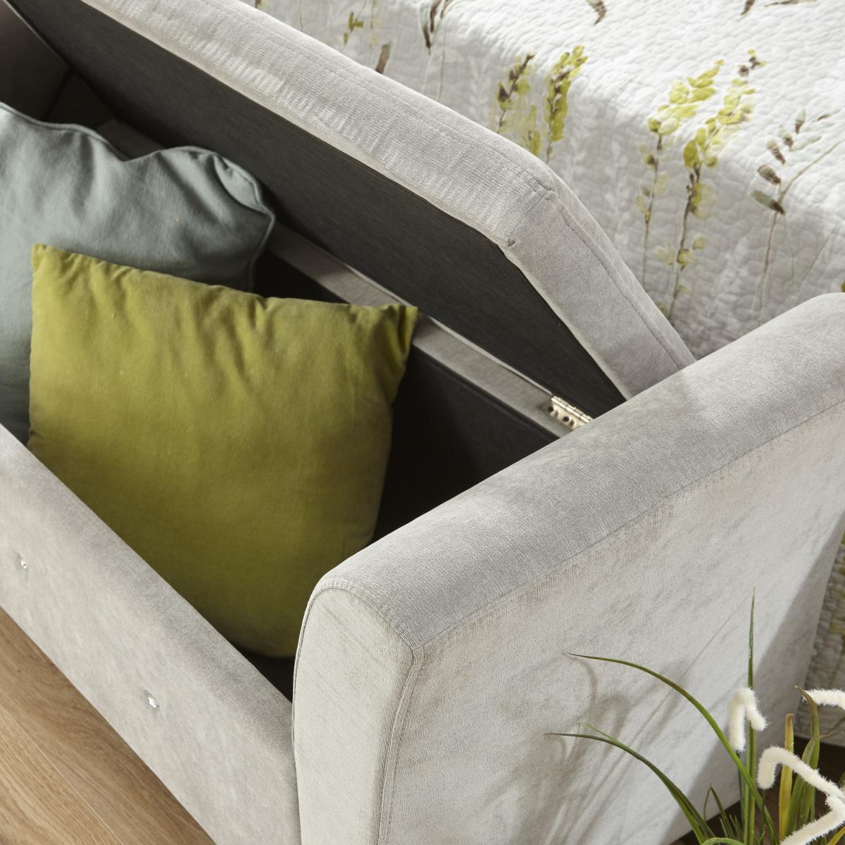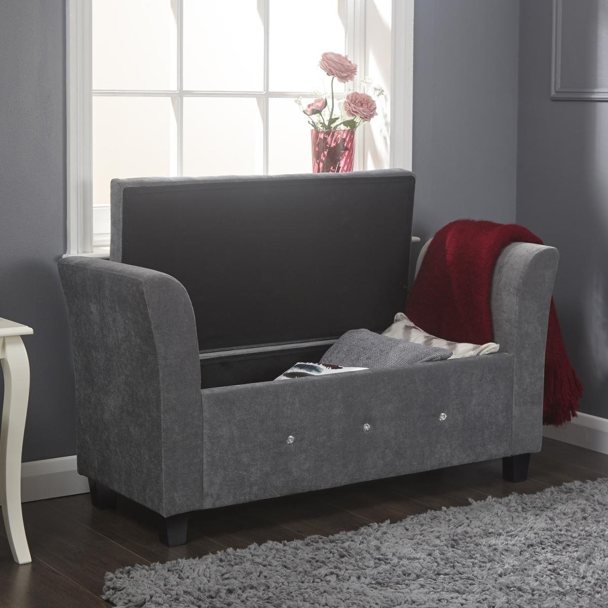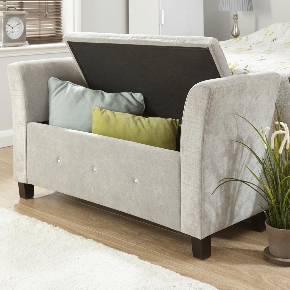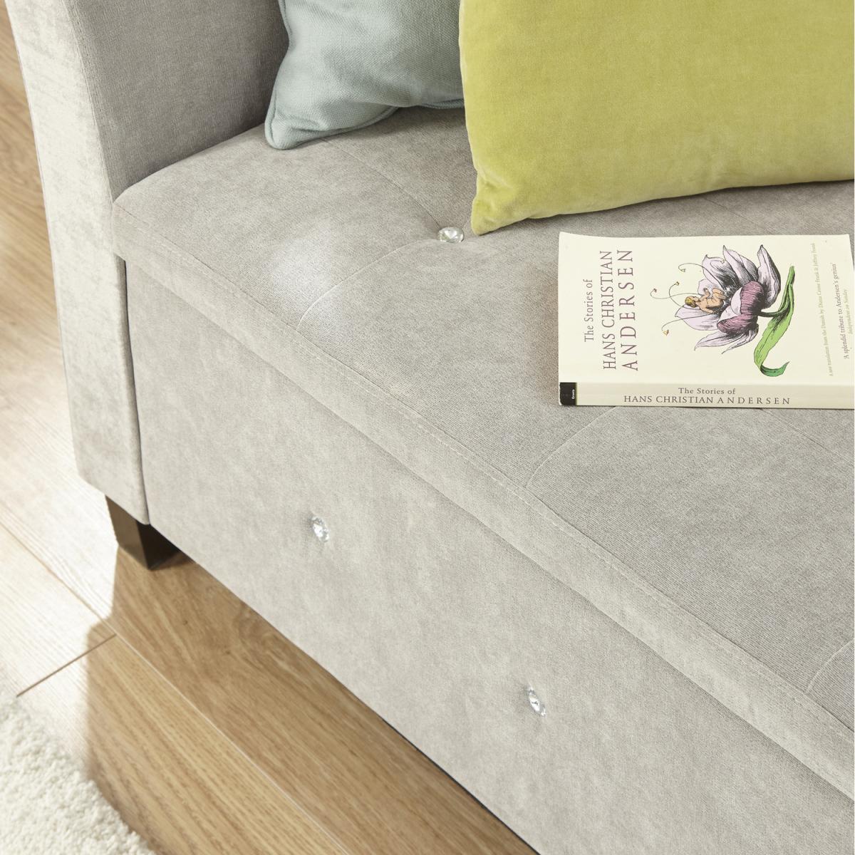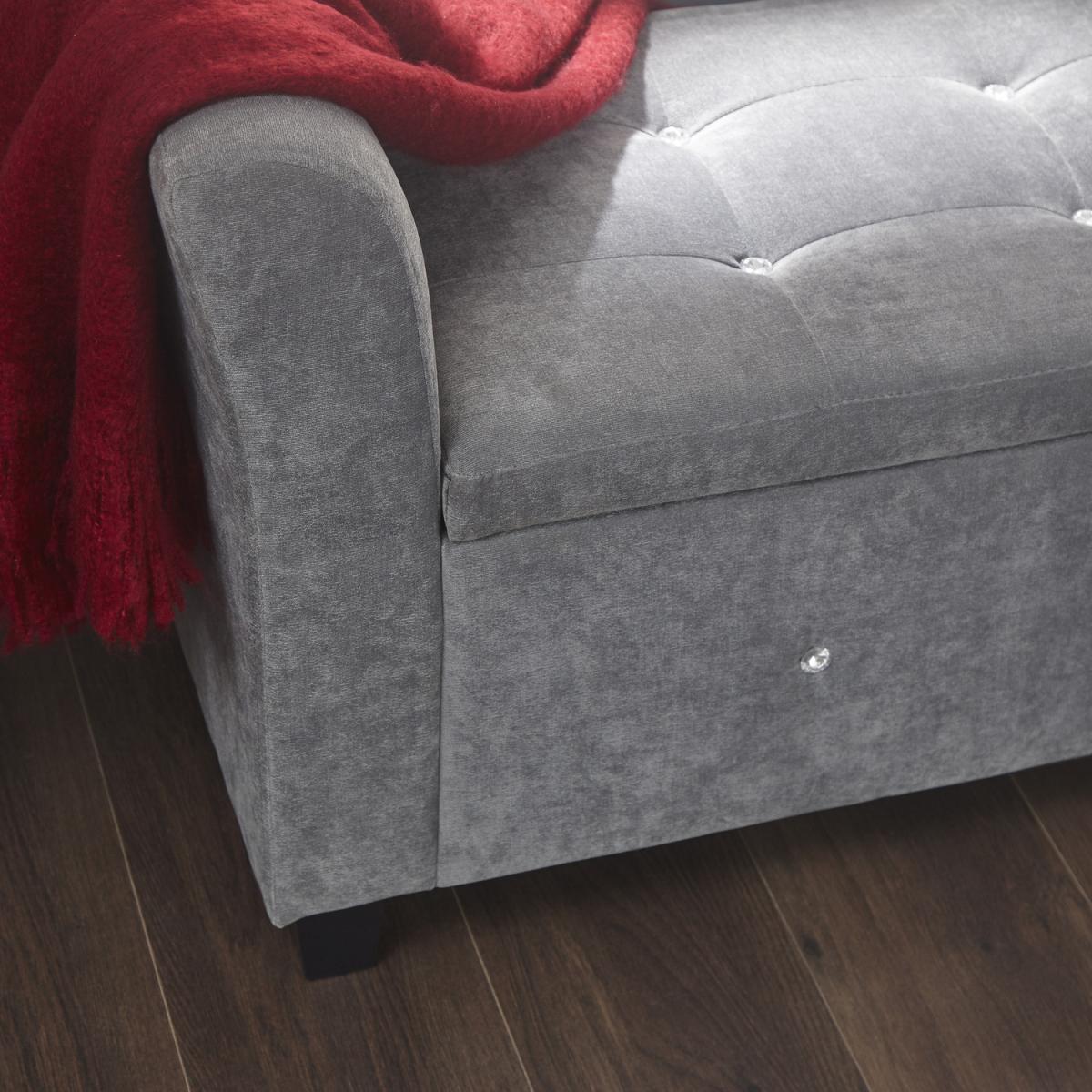 Adding instant charm to your hallway or bedroom, the lovely Verona window seat will make the perfect perch for putting on your wellies ready for a long yomp with the dog. With a deeply buttoned seat and generous storage space inside for hats, gloves, scarves, even shoes and boots or even bed linen & clothes. Finished in a luxurious soft chenille fabric which dazzling diamantes making this a true focal point for any room.