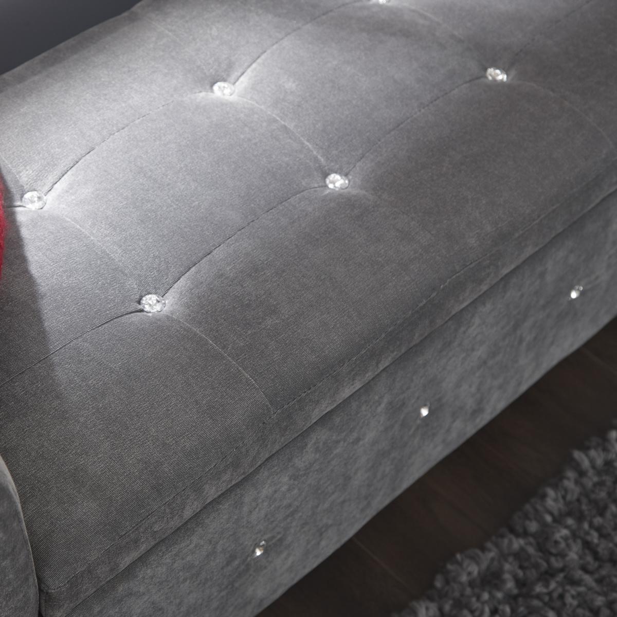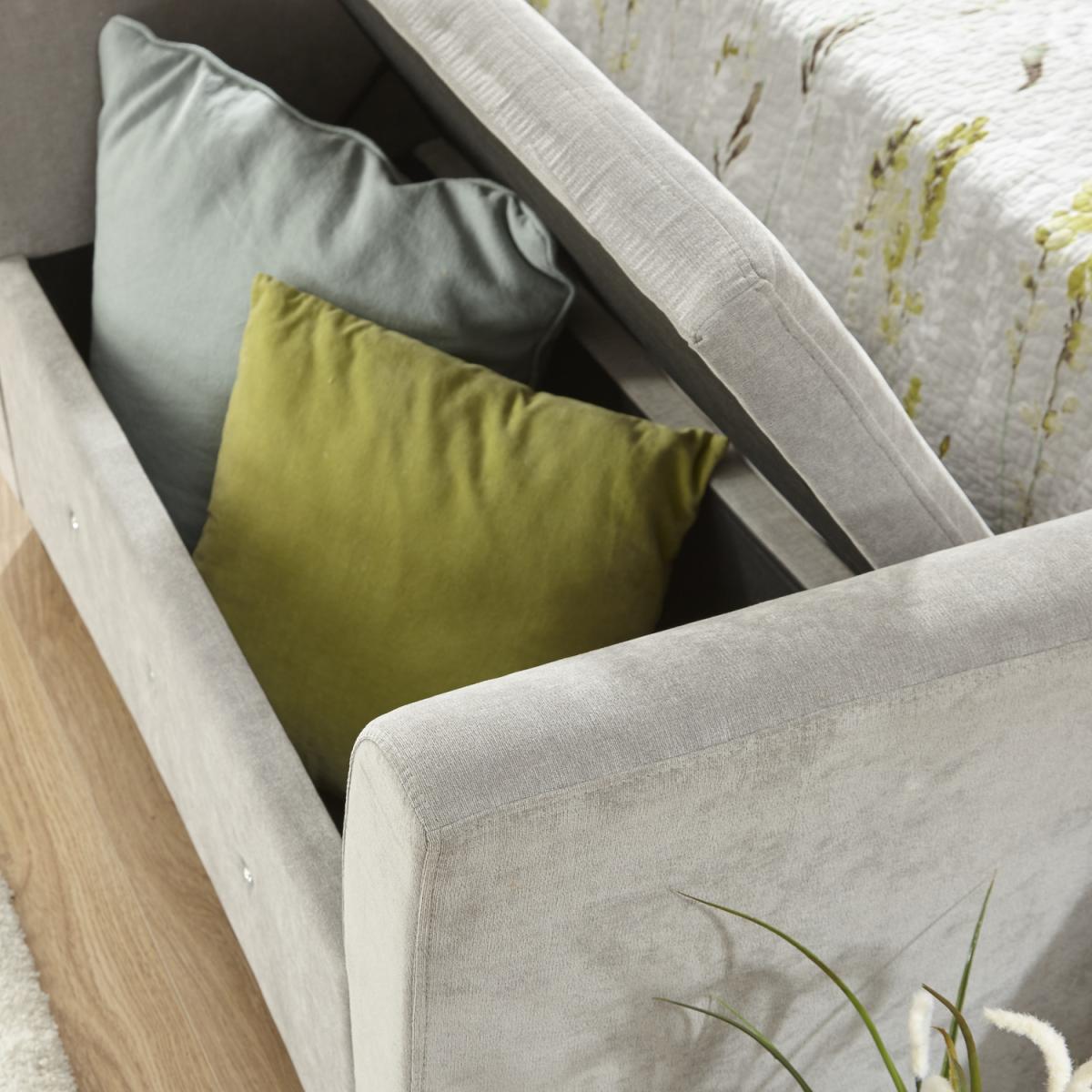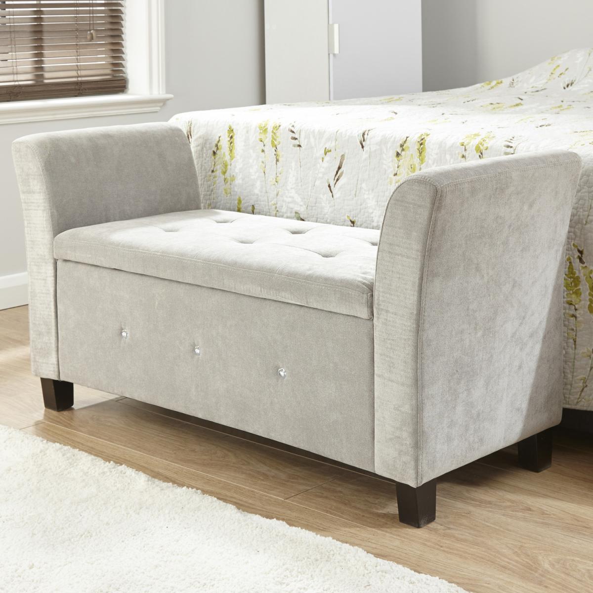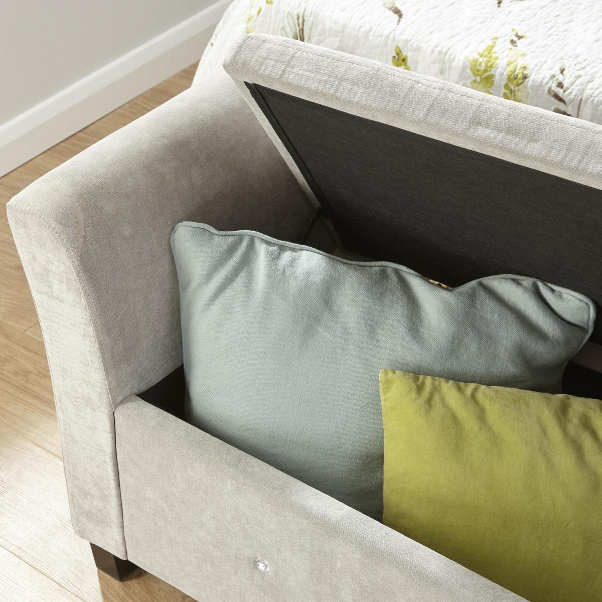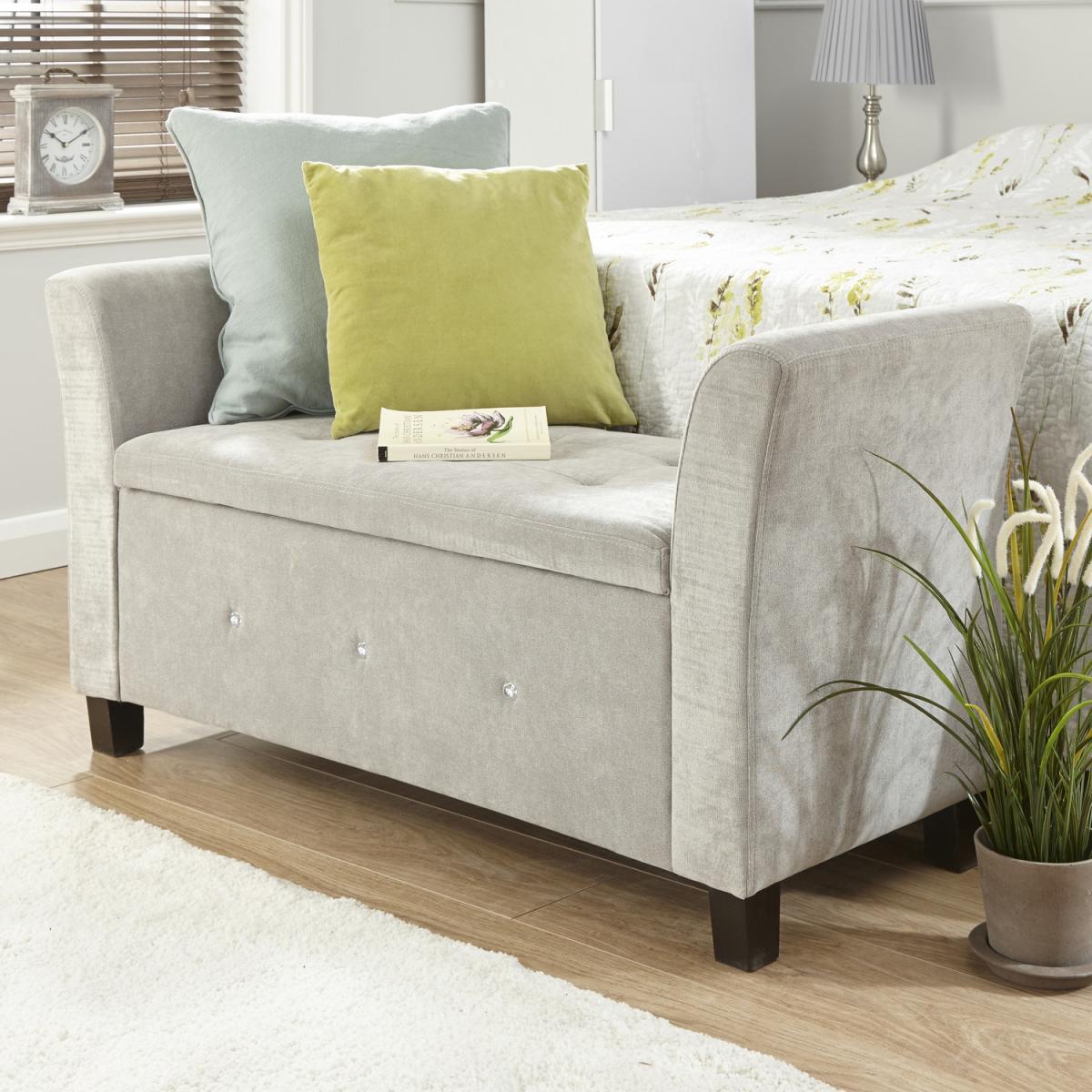 Adding instant charm to your hallway or bedroom, the lovely Verona window seat will make the perfect perch for putting on your wellies ready for a long yomp with the dog. With a deeply buttoned seat and generous storage space inside for hats, gloves, scarves, even shoes and boots or even bed linen & clothes. Finished in a luxurious soft chenille fabric which dazzling diamantes making this a true focal point for any room.