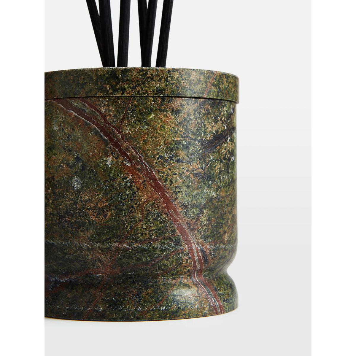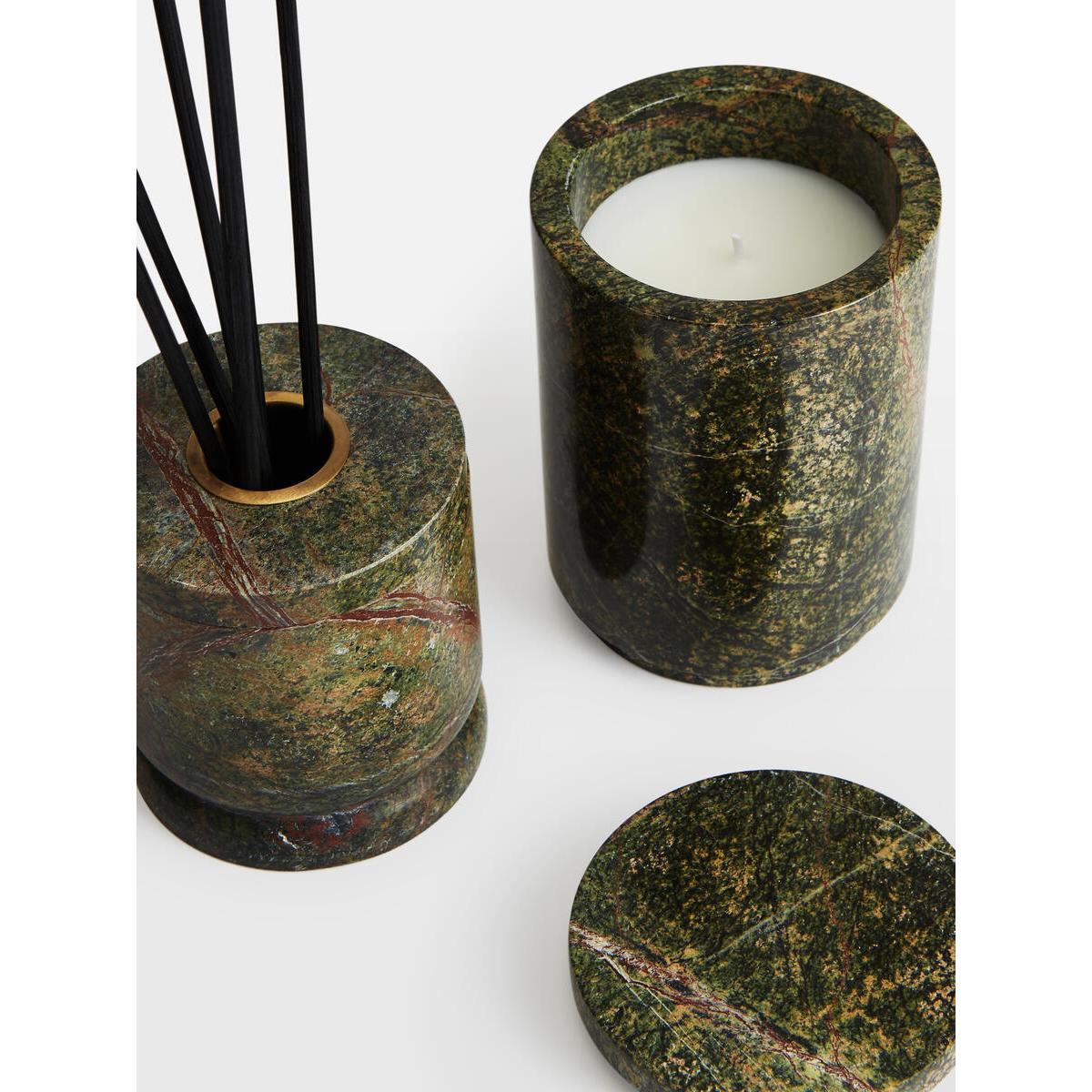 The Leather & Oud fragrance is reminiscent of nightcaps at Soho House Hong Kong, with the deeply aromatic scent of worn Leather and Oud to create a cosy evening mood. Characterised by a green Bidasar marble vessel, the natural variations make each candle unique and an eye-catching addition to your home display. Each one includes eight reeds to release an aromatic scent for up to 12 weeks. Scent notes Top: Oud Middle: Patchouli Base: Sandalwood Leather & Oud diffuser Eight reeds Reusable solid green Bidasar marble vessel Each vessel is unique and will vary due to the natural materials Removable borosilicate liner Reuse with diffuser refills 150ml/ 5.27fl oz Scent inspired by Soho House Hong Kong