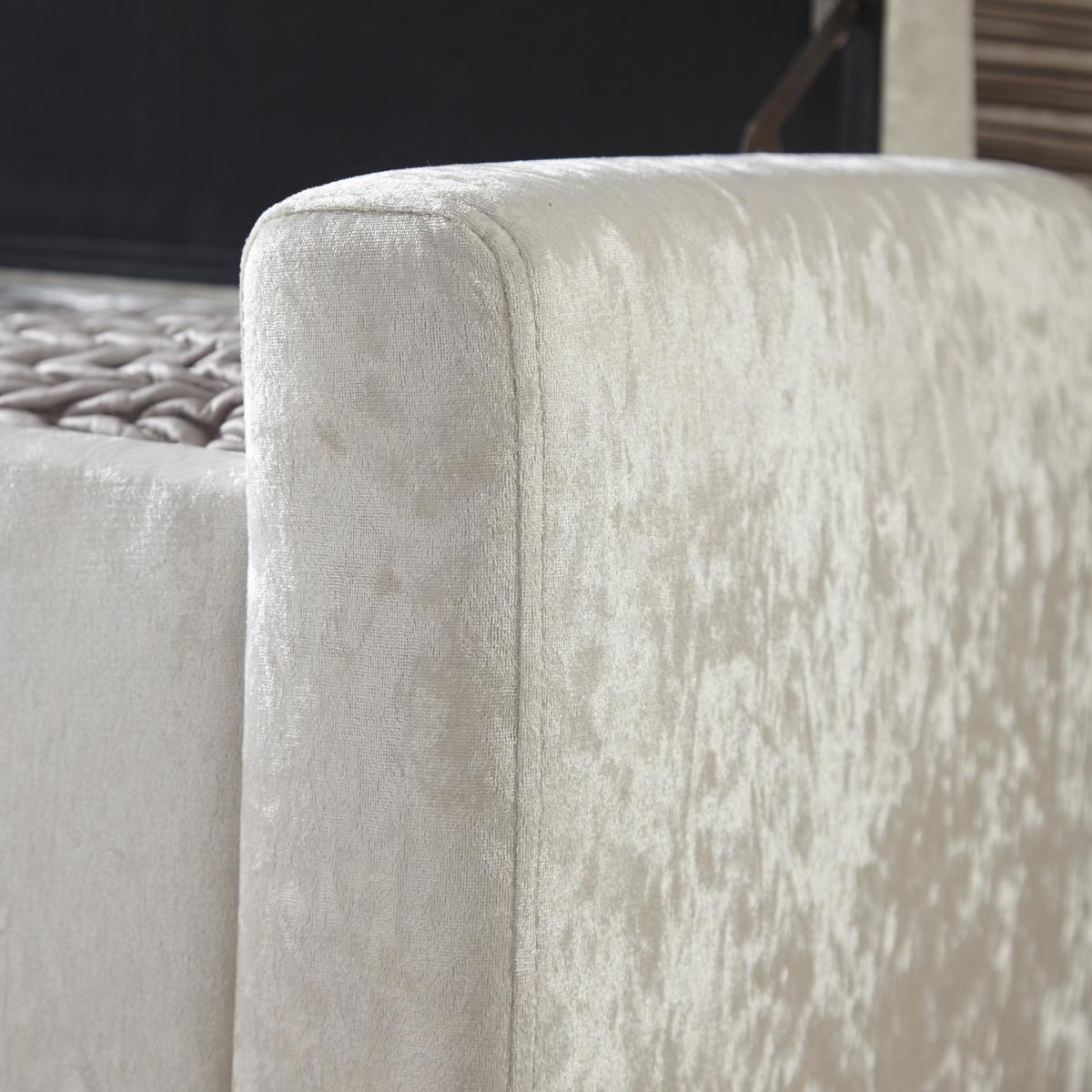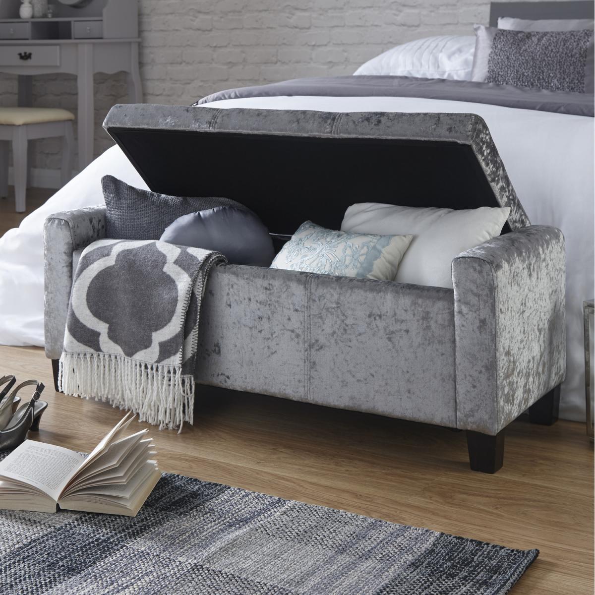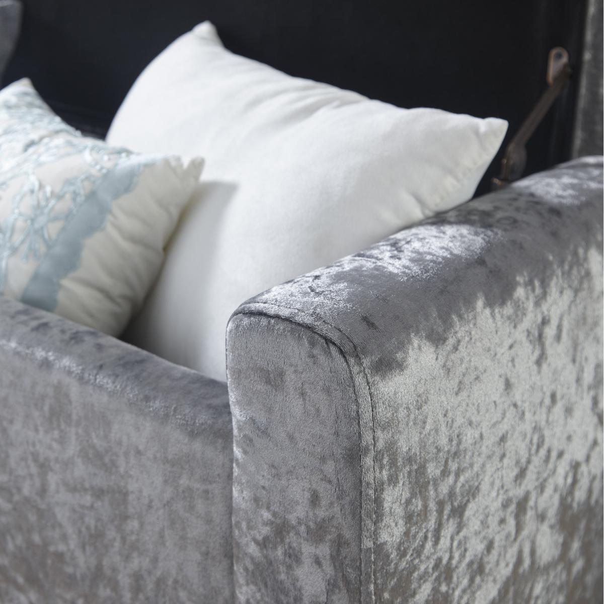 The Verona Upholstered Ottoman offers a simply stunning design. Featuring deep buttoned detailing on the lift-up lid, this ottoman is available in a luxurious silver or cream fabric finish. Ideal for those looking for a comfortable seating area where space may be limited. Crafted to an exceptionally high standard this ottoman comes complete with wooden feet. The seating area of the Verona Ottoman lifts up to reveal a spacious storage area that will help you to reduce the clutter in your home.