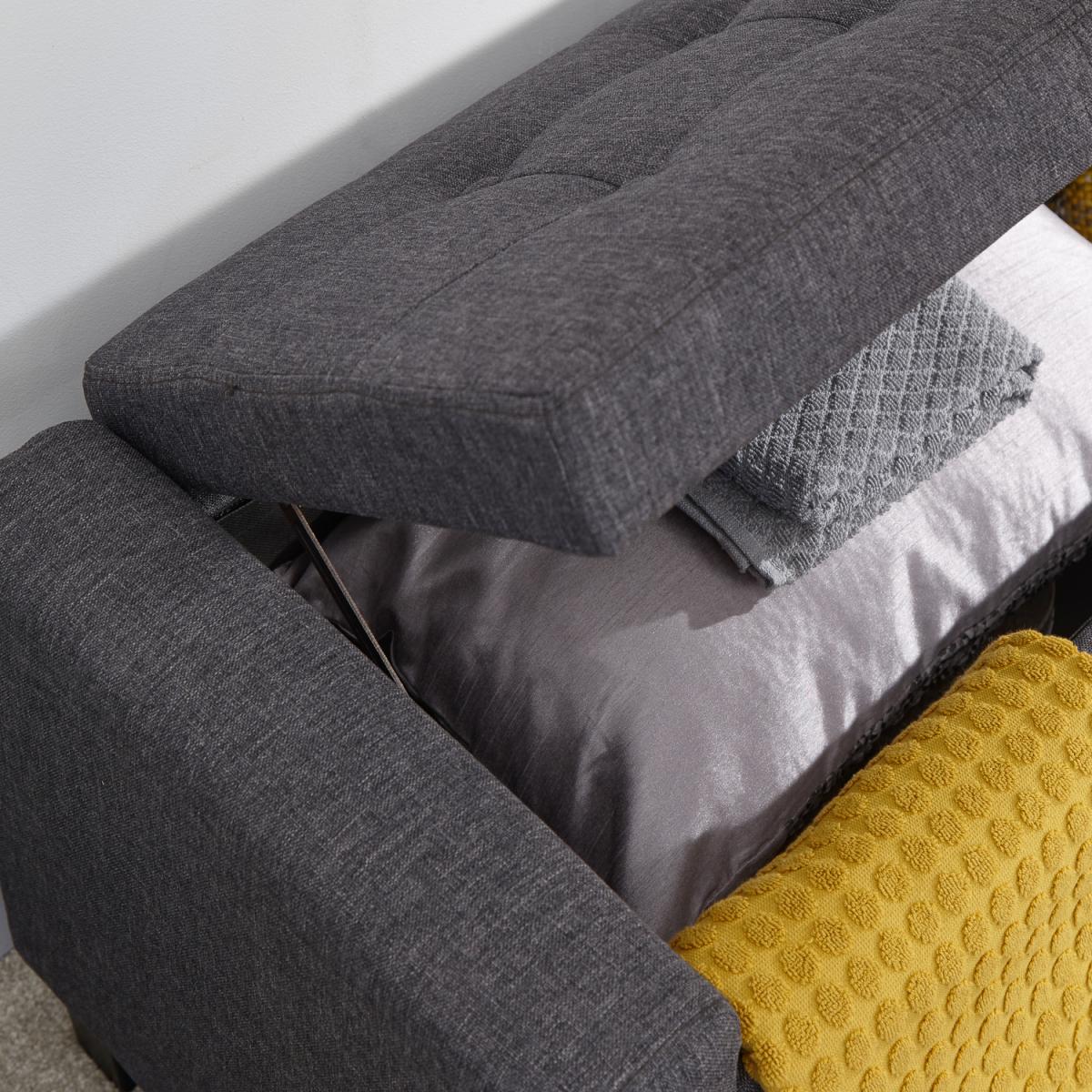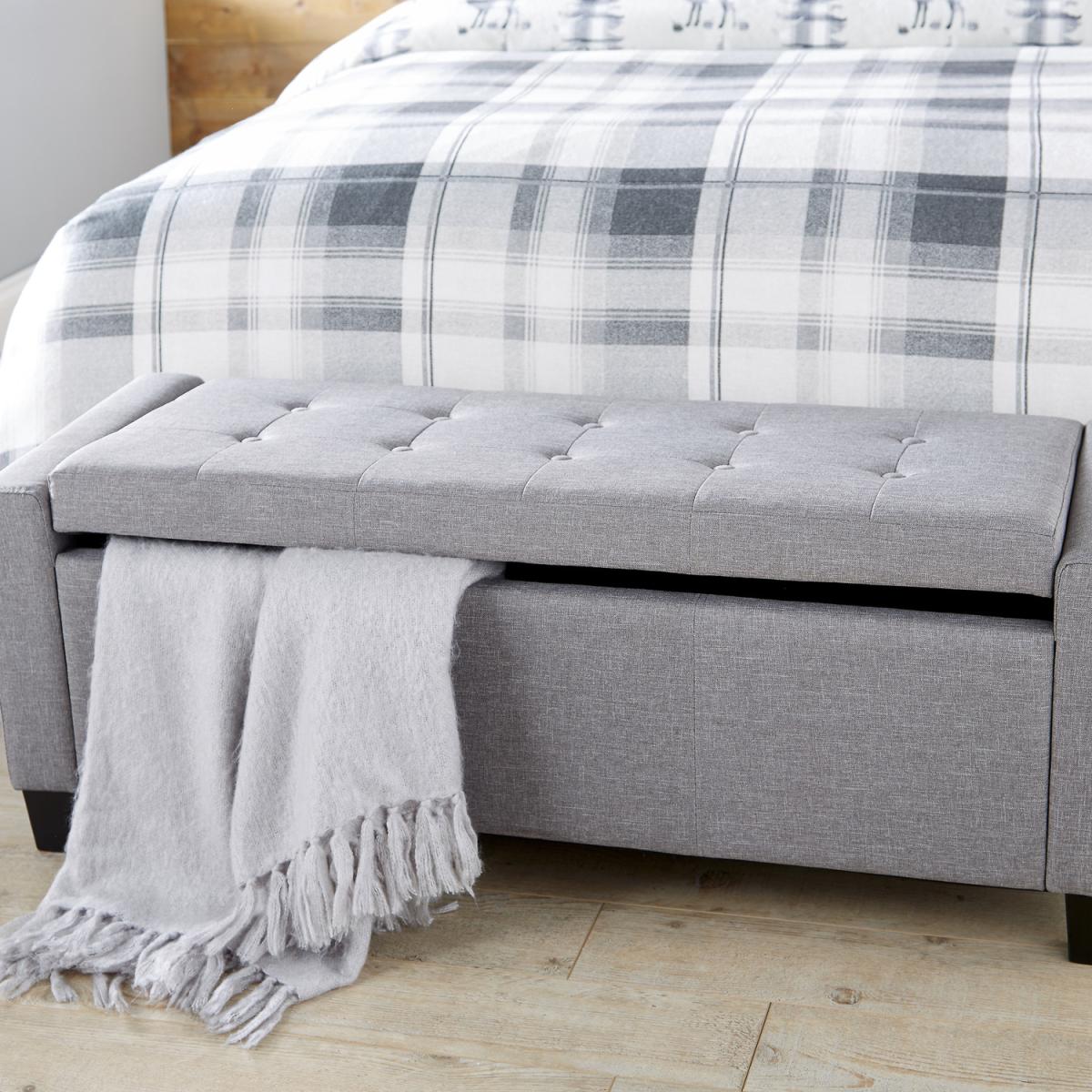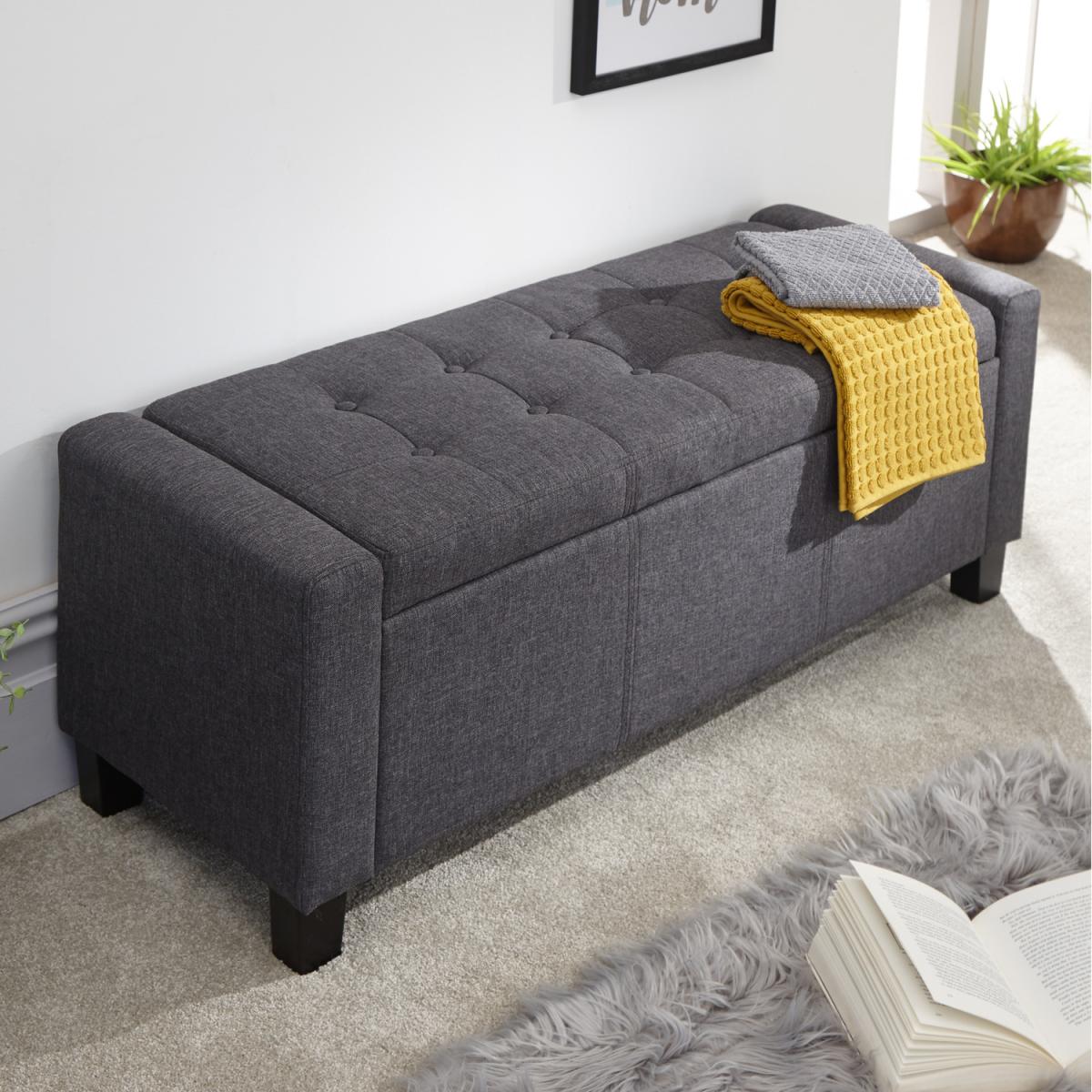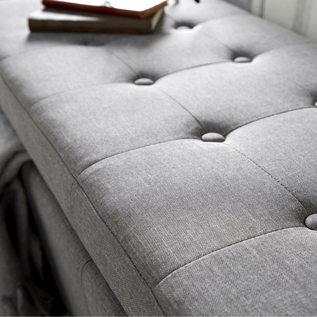 The Verona Upholstered Ottoman offers a simply stunning design. Featuring deep buttoned detailing on the lift-up lid, this ottoman is available in a luxurious silver or cream fabric finish. Ideal for those looking for a comfortable seating area where space may be limited. Crafted to an exceptionally high standard this ottoman comes complete with wooden feet. The seating area of the Verona Ottoman lifts up to reveal a spacious storage area that will help you to reduce the clutter in your home.