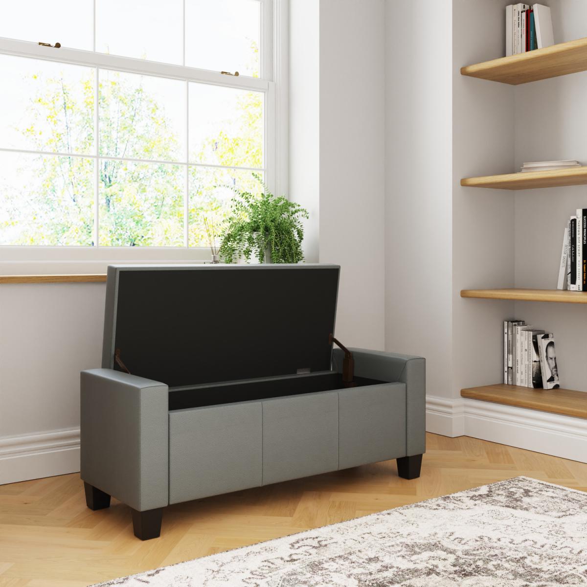 I really like this grey PU bench-it's a versatile piece that works well in both modern and transitional interiors. Its clean, simple design makes it a practical addition at the foot of a bed or as extra seating in a living room. The neutral grey colour ensures it blends seamlessly with various colour schemes, while the PU material offers easy maintenance and durability, making it suitable for everyday use. To style it effectively, consider adding a cosy throw or a couple of decorative cushions on top for a welcoming touch. It also pairs nicely with natural wood or metal accents, making it a flexible choice for many different spaces.