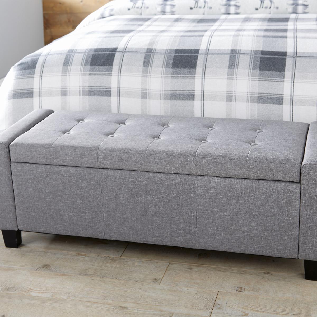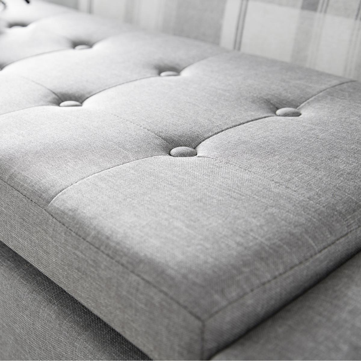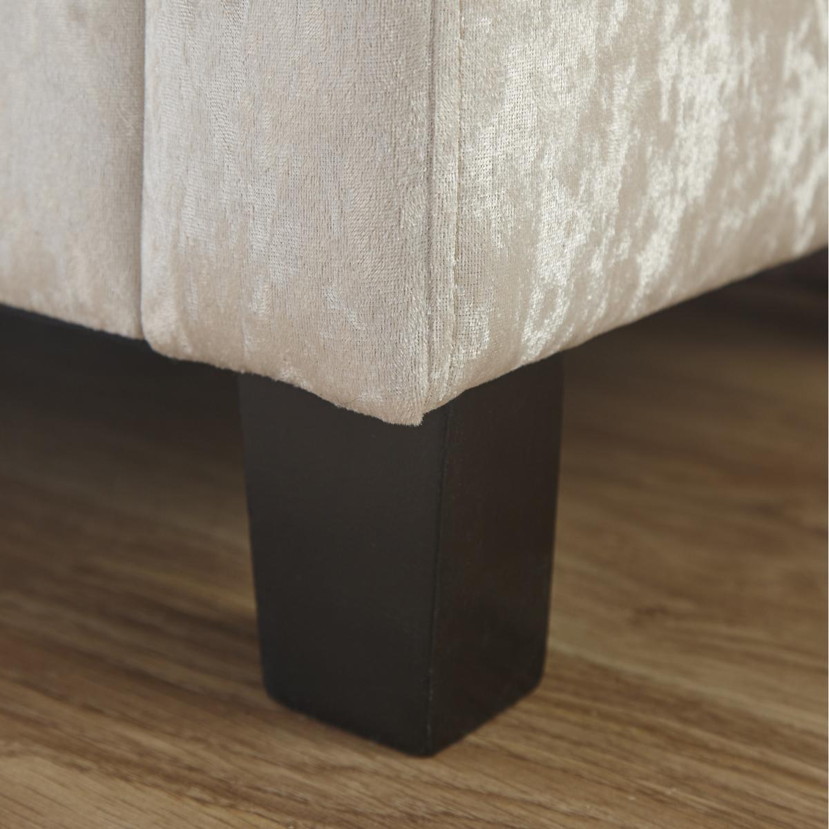 The Verona Upholstered Ottoman offers a simply stunning design. Featuring deep buttoned detailing on the lift-up lid, this ottoman is available in a luxurious silver or cream fabric finish. Ideal for those looking for a comfortable seating area where space may be limited. Crafted to an exceptionally high standard this ottoman comes complete with wooden feet. The seating area of the Verona Ottoman lifts up to reveal a spacious storage area that will help you to reduce the clutter in your home.