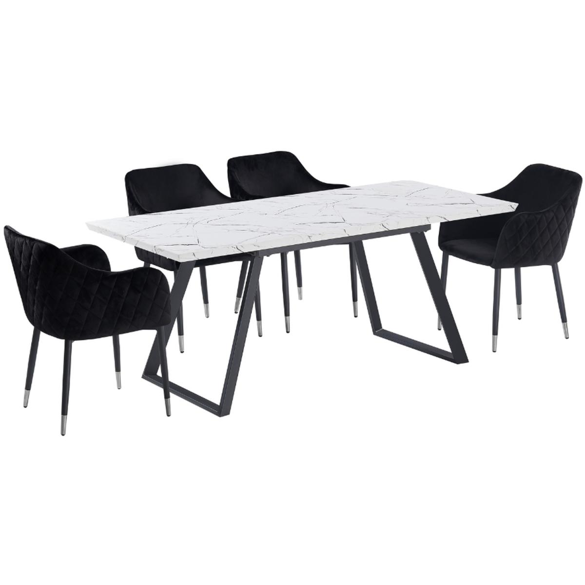 The Dining set includes a Toga Dining table that is extendable from 140 cm to 180 cm long giving you that extra space when you need it. Perfect whether it is a Traditional Dining set look or a Modern Dining Set look you are after. The table is supported by metal legs that provide not just sturdy support but a stunning and unique design that will get your guests talking. The table comes with fabulous velvet upholstered chairs that have an ergonomic design, unmistakable style, and comfy seats. The gorgeous diamond stitching on the exterior of the chair combined with the elegant arms creates an inviting and timeless design. The dining Chairs come with adjustable feet for added stability, perfect for uneven surfaces.