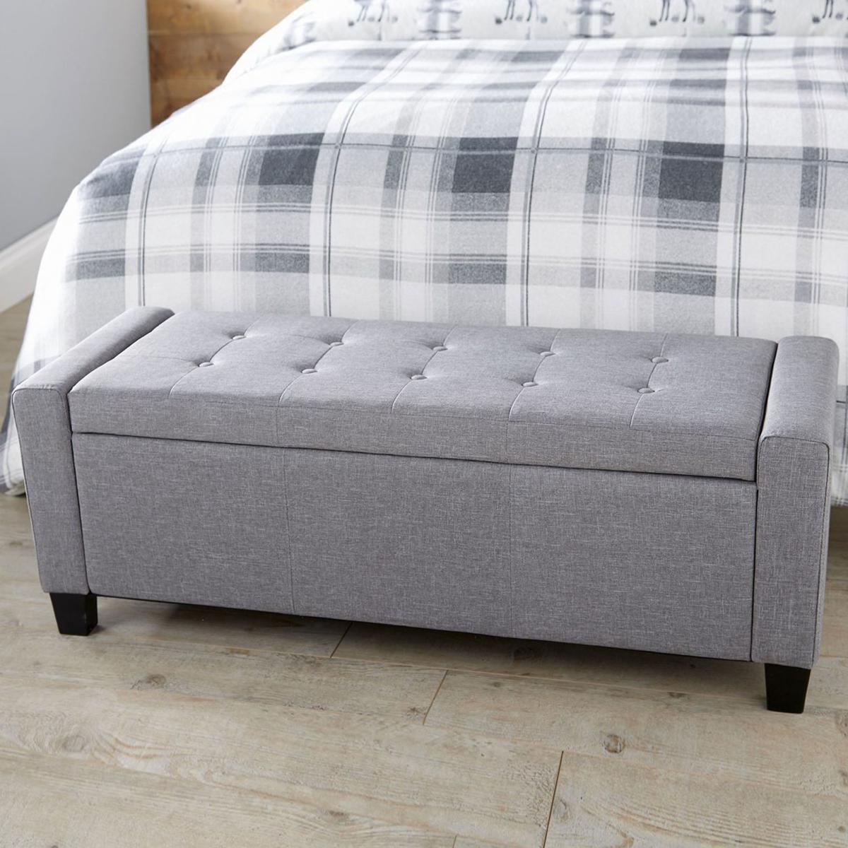 The Verona Upholstered Ottoman can sit at the end of the bed, or anywhere in the room, and offers a straightforward but stylish solution to keeping the bedroom clear of any unnecessary clutter or mess. Featuring deep button detailing on the lid and solid wooden legs, this ottoman can be used as a bench where space is limited. Please note, unfortunately we cannot deliver this item to the Channel Islands.
