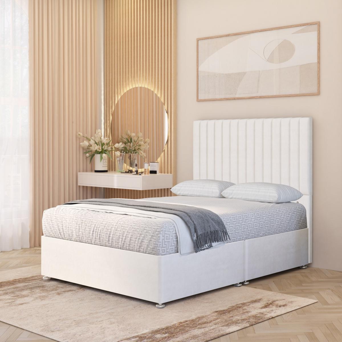 The luxurious Verona Divan Bed Set includes a high-grade divan base with a solid platform top, providing long-term durability and the best surface for your mattress. Paired with a 54" upholstered floor standing headboard and our premium 30cm deep Pacific 4000 Memory Foam Pocket Spring Mattress, this set combines comfort, style, and support. The pacific mattress allows you to sink in slightly and then offers medium firm cushioned support. Engineered for superior comfort, this mattress features a high count of pocket springs that respond individually to body weight, with firmer edge springs for enhanced support and stability. The 7-zone system targets shoulders, hips, and back to reduce pressure and improve posture. Three foam layers - memory foam, reflex foam, and polyester foam - combine to contour to your body, add bounce-back resilience, and provide a cushioned surface for deeper, undisturbed sleep. The quilted soft touch mattress cover offers an even surface to sleep on to support your whole body. The elegant floor standing headboard elevates this bed set and brings everything together, guaranteed to make a statement of luxury in your bedroom, hand crafted with vertical sectioned cushioned panels. Chose from a No draw divan bed, 2 draw divan bed, or 4 draw divan bed, all with mattresses included.