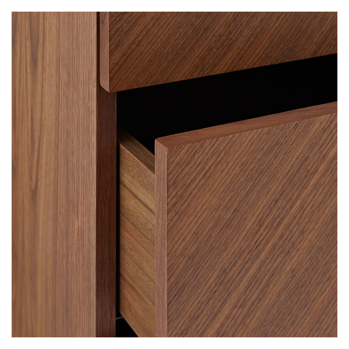 I love this tall chest for its clean lines and rich walnut finish, which adds warmth and sophistication to a space. It works particularly well in modern, Scandinavian, or mid-century interiors, where its sleek design can serve as both a statement piece and functional storage. Practical styling tips include layering with a few minimal accessories on top, such as a small plant or a tray, to keep it looking polished without clutter. Because of its versatile look, it pairs well with both open shelving and upholstered furniture, making it a great option for bedrooms, hallways, or living areas that benefit from organised storage with style.