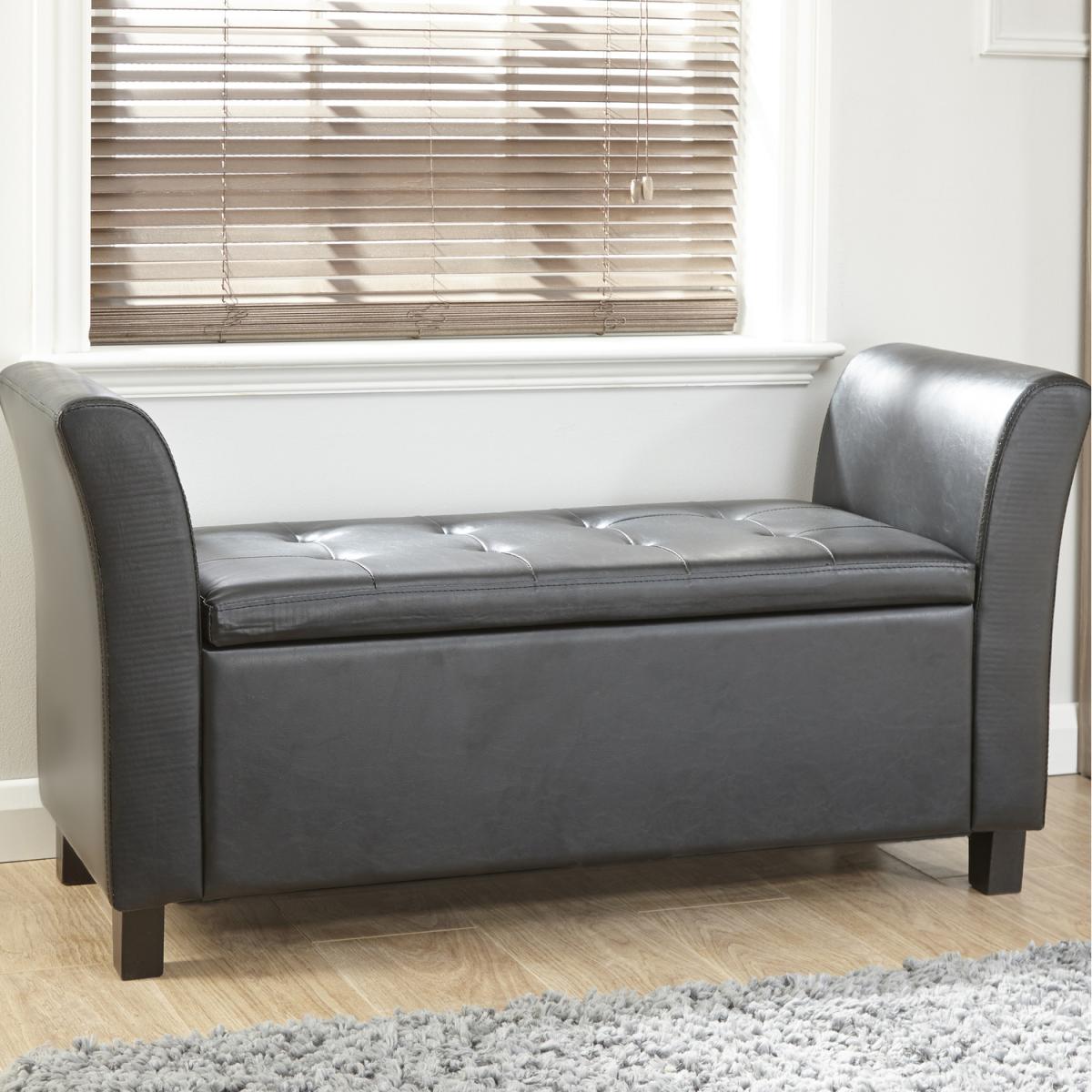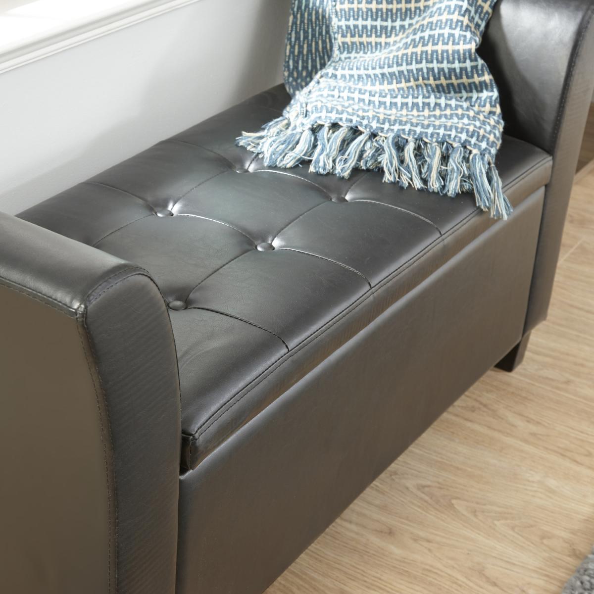 I’m a fan of this compact black window bench for its clean lines and handy under-seat storage - it slots neatly beneath a sill without overwhelming smaller rooms. Its faux-leather finish suits contemporary, industrial or Scandi-inspired schemes, and the neutral tone makes it easy to layer in colour pops. Keep styling simple: fold a chunky knit throw over one arm, add a couple of patterned cushions in pale greys or muted blues, then place a slim tray for a coffee cup or a small planter. In a hallway it doubles as a shoe-tying perch, while in a bedroom it offers both extra seating and discreet stowage.