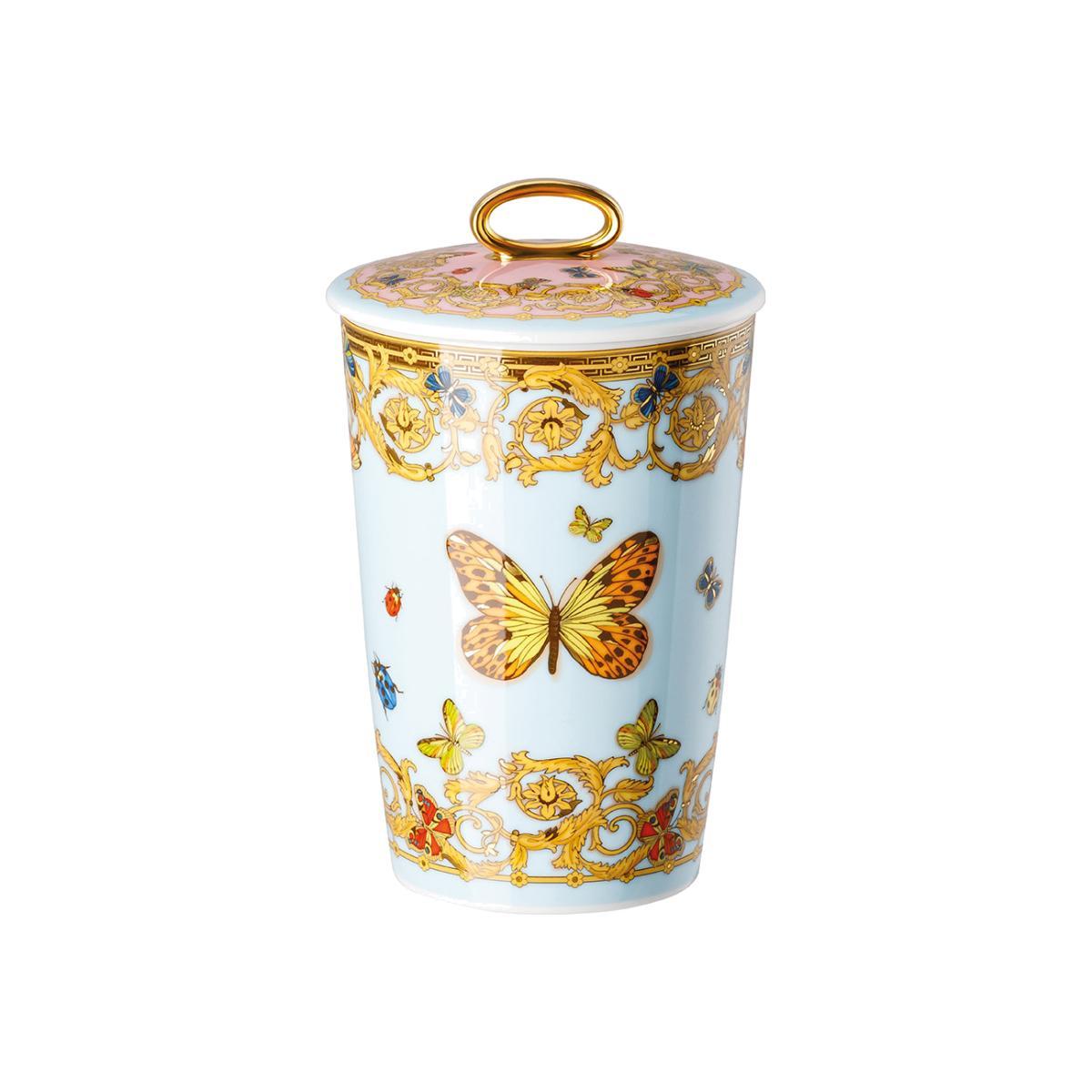 Finish an opulent dinner setting with this table candle from Versace Home. In classic Versace style, their table candle collection is adorned with the brand’s most iconic prints including intricate Baroque detailing, Medusa head logos and glints of gold. As decadent as the rest of the top Italian fashion house’s homeware collection, these candles are encased in the finest porcelain and topped with a ring holder lid. Emitting a light and fresh fragrance, it is the perfect greeting for guests at your next dinner party.