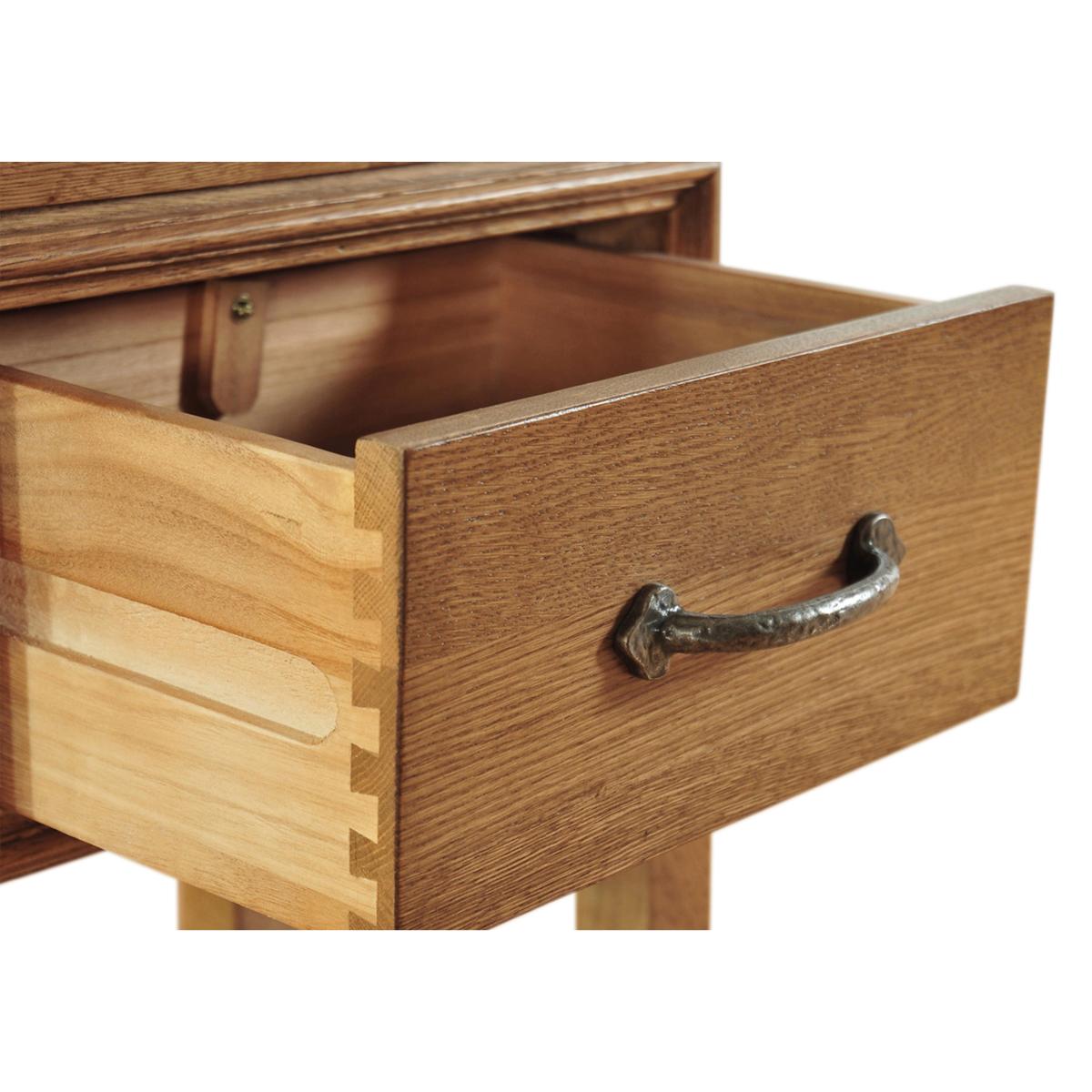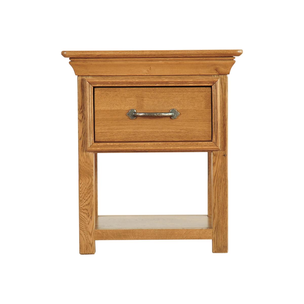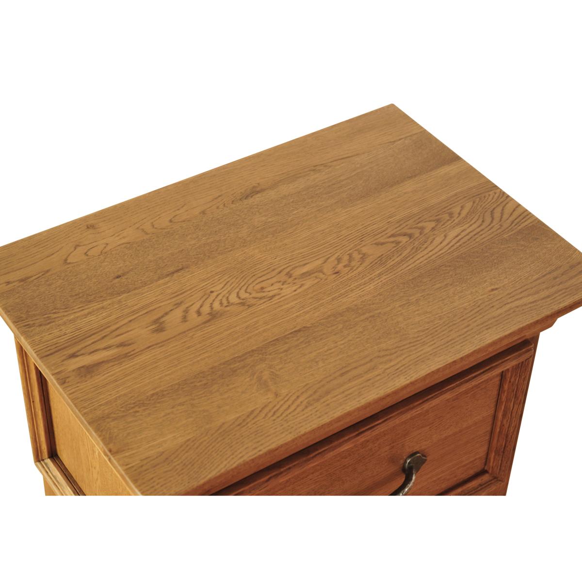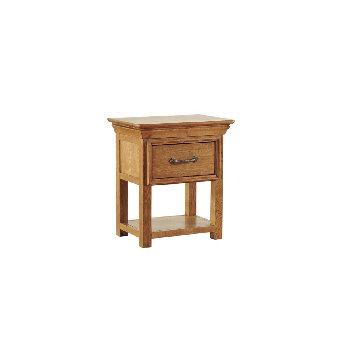 Your elegant bedroom awaits. Inspired by classic French furniture and beautifully handcrafted in oak, our Versailles collection offers heirloom-quality pieces for bedrooms large and small. Start with the curvaceous sleigh bed frame – available in three sizes – and then choose from an extensive selection of wardrobes, chests of drawers, bedside tables and more, all of which feature the range’s signature panelling and smooth woodgrain-enhancing lacquered finish. Made by furniture experts using traditional cabinetry techniques like dovetail drawer joints and tongue and groove interiors, the Versailles range exhibits beautiful oak furniture details inside and out. Perfectly proportioned and ideal for a smaller bedroom, this handcrafted oak nightstand offers practical storage alongside elegant French furniture-inspired details. Why you'll love it. Heirloom-quality 1-drawer nightstand handcrafted in oak. Inspired by classic French bedroom furniture. Elegant cornice top. Antiqued metal drawer handle. Built to last using traditional cabinetry techniques. Drawer has dovetail joints and tongue and groove base. Smooth lacquered finish enhances the wood’s natural beauty. This 1-drawer nightstand is part of the Versailles bedroom collection. What you need to know. Solid oak frame with oak veneer inlay panels. 1 drawer and a shelf. As oak is a natural material, knots and markings are to be expected. Avoid placing in direct sunlight, and take care to use coasters and placemats. The extensive Versailles range also includes bedside tables. WARNING!. Furniture can tip over unexpectedly and cause injury. This item must be fixed to a wall using the anti-tip kit provided. Be sure to use the correct wall fixings suitable for the walls in your home. Furniture Village is not able to fix anti-tip devices for you. Seek professional advice if you are unsure.