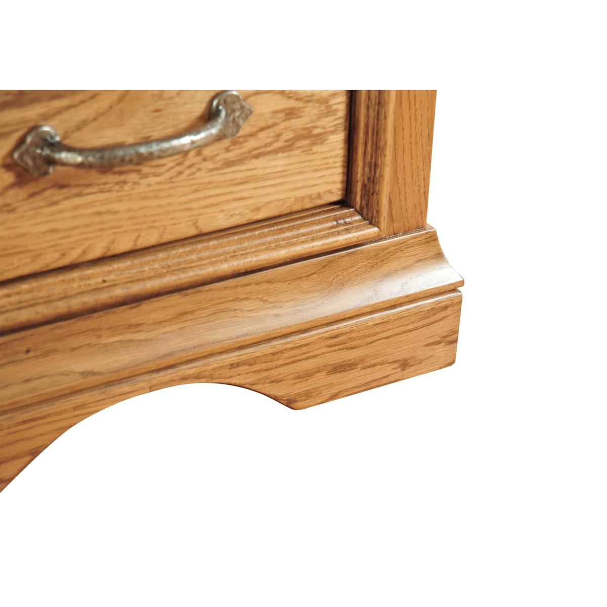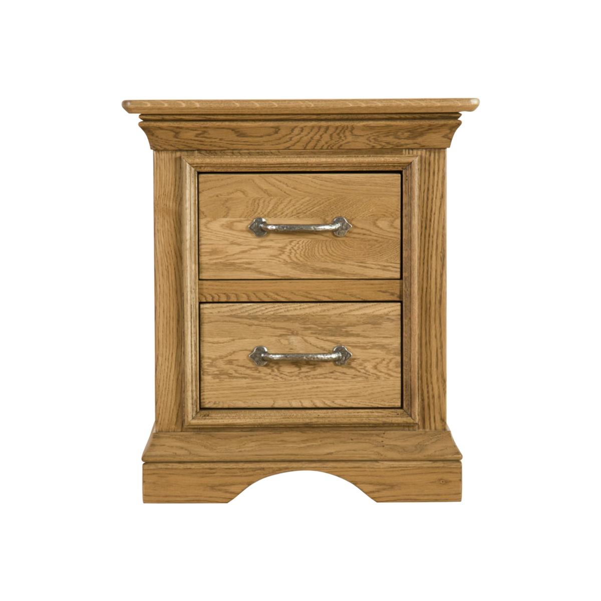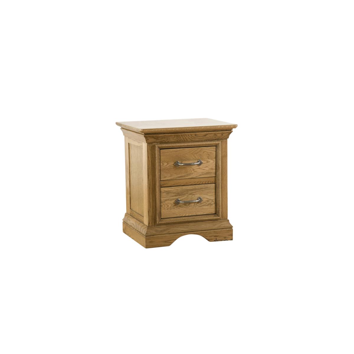 Your elegant bedroom awaits. Inspired by classic French furniture and beautifully handcrafted in oak, our Versailles collection offers heirloom-quality pieces for bedrooms large and small. Start with the curvaceous sleigh bed frame – available in three sizes – and then choose from an extensive selection of wardrobes, chests of drawers, bedside tables and more, all of which feature the range’s signature panelling and smooth woodgrain-enhancing lacquered finish. Made by furniture experts using traditional cabinetry techniques like dovetail drawer joints and tongue and groove interiors, the Versailles range exhibits beautiful oak furniture details inside and out. This stylish oak bedside table is surprisingly spacious thanks to its two drawers. And, with its handcrafted French furniture-inspired details, it’s just lovely to look at, too. Why you'll love it. Heirloom-quality 2-drawer bedside table handcrafted in oak. Inspired by classic French bedroom furniture. Elegant cornice top. Antiqued metal drawer handles. Built to last using traditional cabinetry techniques. Drawers have dovetail joints and tongue and groove bases. Smooth lacquered finish enhances the wood’s natural beauty. This 2-drawer bedside table is part of the Versailles bedroom collection. What you need to know. Solid oak frame with oak veneer inlay panels. 2 drawers. As oak is a natural material, knots and markings are to be expected. Avoid placing in direct sunlight, and take care to use coasters and placemats. The extensive Versailles range also includes a 3-drawer bedside table. WARNING!. Furniture can tip over unexpectedly and cause injury. This item must be fixed to a wall using the anti-tip kit provided. Be sure to use the correct wall fixings suitable for the walls in your home. Furniture Village is not able to fix anti-tip devices for you. Seek professional advice if you are unsure.