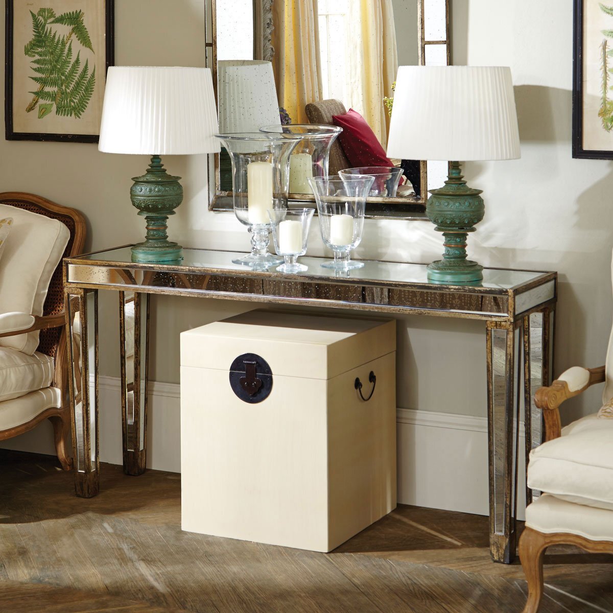 The antiqued mirror finish of our Versailles Console will bring a lightness to your scheme, not to mention a touch of glamour. Use it in a larger drawing or living room, as a counterpoint to a special picture or mirror hung above.