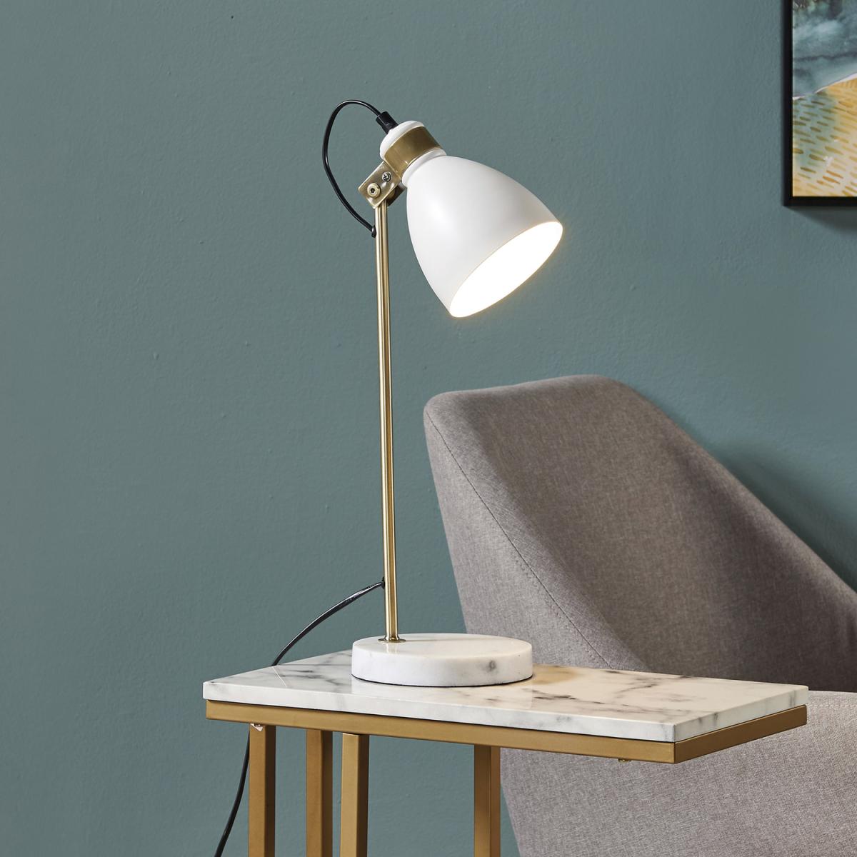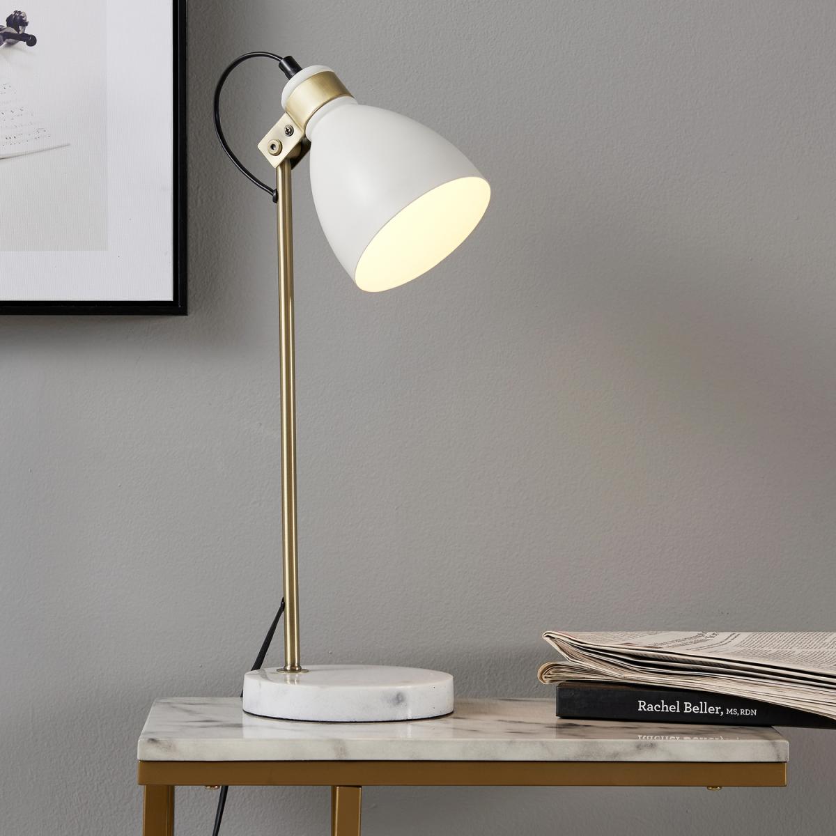The base is a luxurious white marble so you know that your item will be solid and secure. Bring home a new trendy look to your office today. Bulb sold separately.