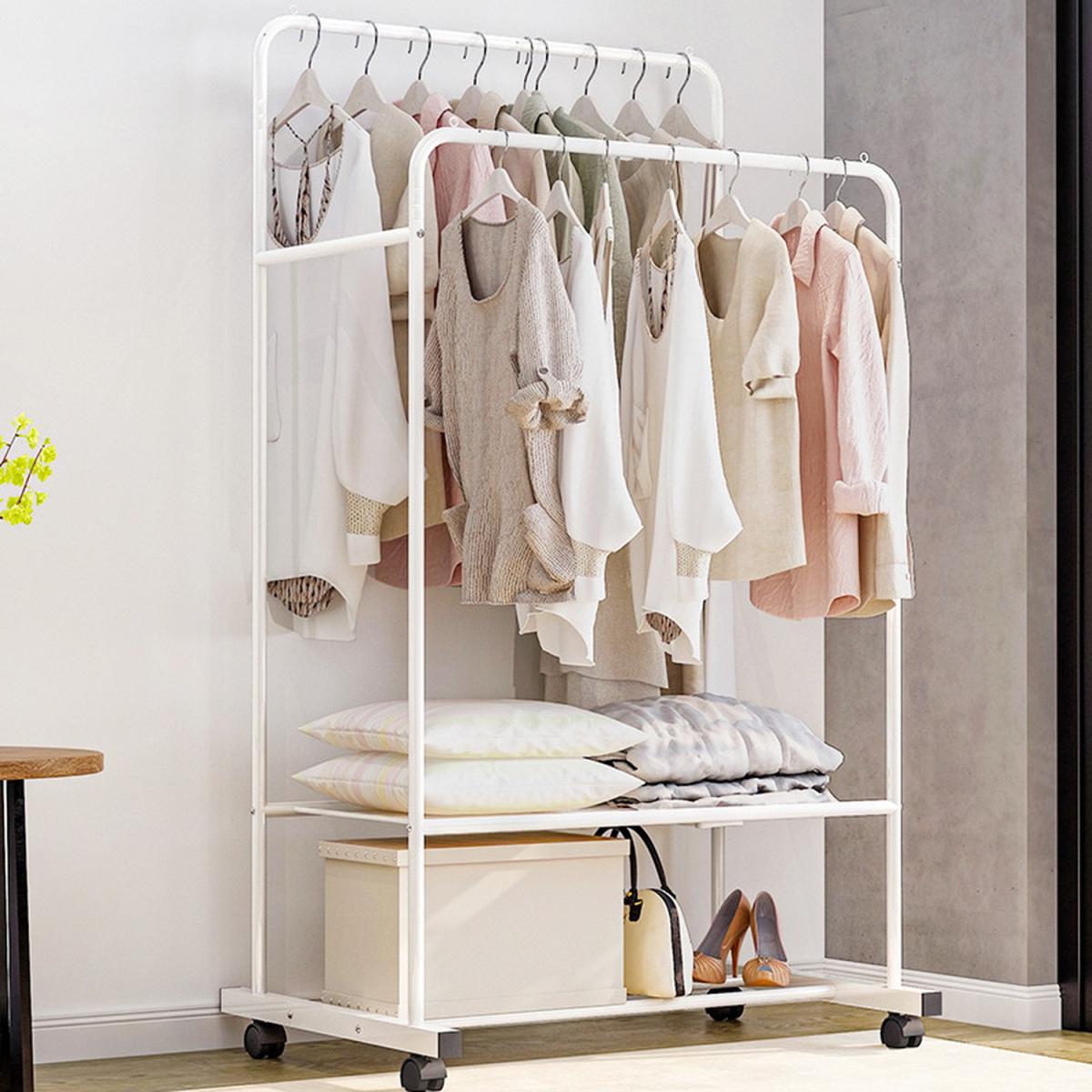 With this Livingandhome modern clothes rack, you can store all your clothes without taking up a large amount of floor space in your home. Crafted from high-quality metal, this clothes hanger provides excellent carrying capacity while maintaining its sleek and modern appearance. Its 360-degree rotation wheels make it easily movable, so you can place it wherever you need it most, whether it's in your bedroom, laundry room, or hallway.