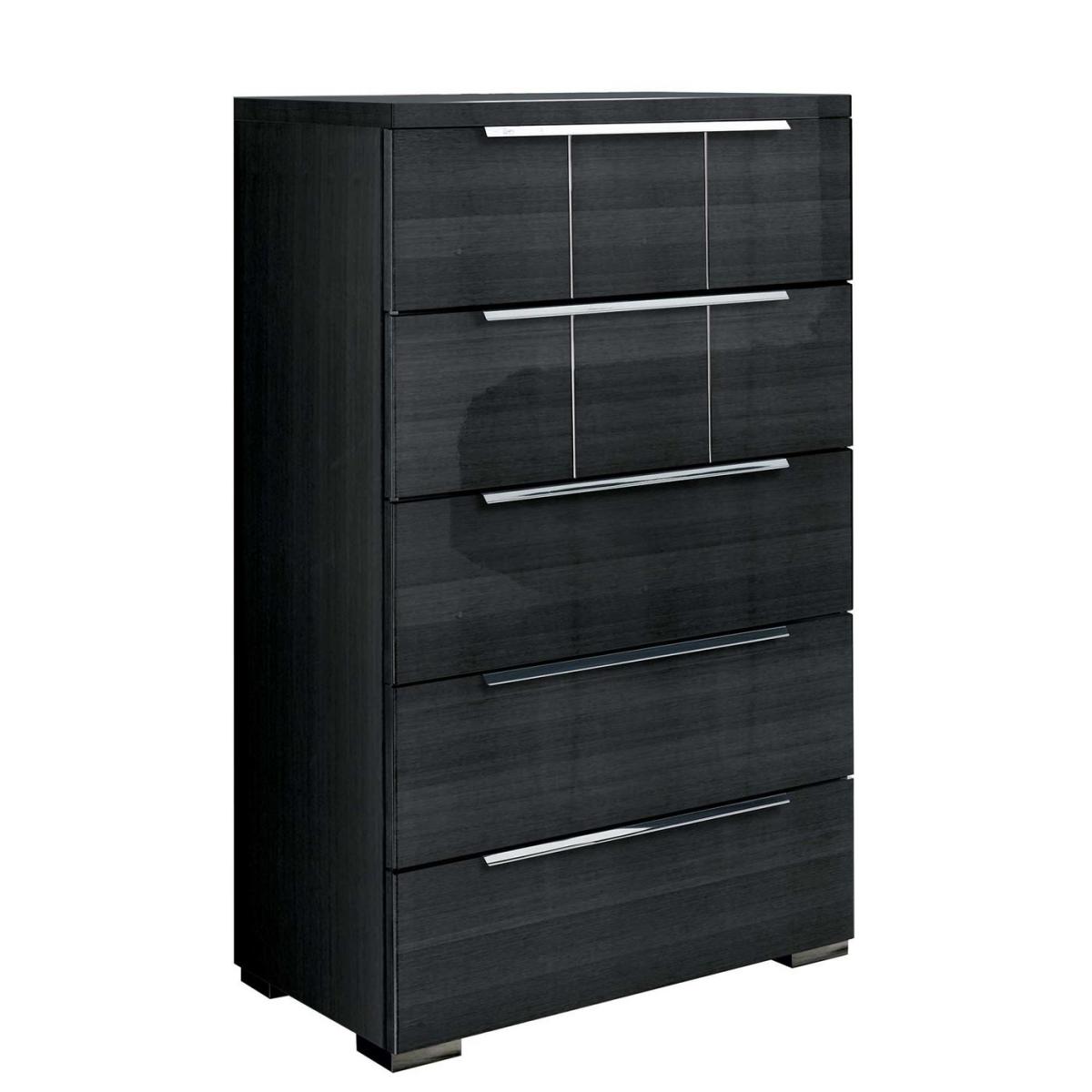 Stylish storage has never looked better than the sleek and modern design of the Versilia 5 Drawer Chest. Solid koto wood and veener looks simply stunning with the luxurious sheen of the lacquered 6 layer finish of the Versilia, beautifully accenting the wood characteristics and markings as well as adding a welcome modern edge. Completing the contemporary look of the Versilia, metallic accents of chrome feet and handles alongside linear detailing are the perfect match for an effortlessly stylish contrast with the deep toned wood.