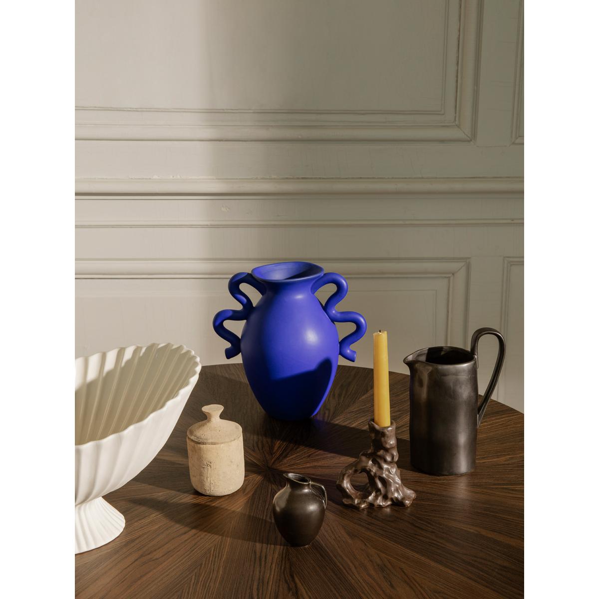 Verso vase 27 cm from Ferm Living is made of stoneware and comes in an oval shape with a tapered mouth. It's finished with two eye-catching handles with a wavy design. The vase has been treated with a reactive glaze, which makes each vase unique while also enclosing the delicate stoneware in a beautiful glossy finish. Fill the Verso vase with colourful bouquets of flowers or leave it empty for a magnificent still life in your home.