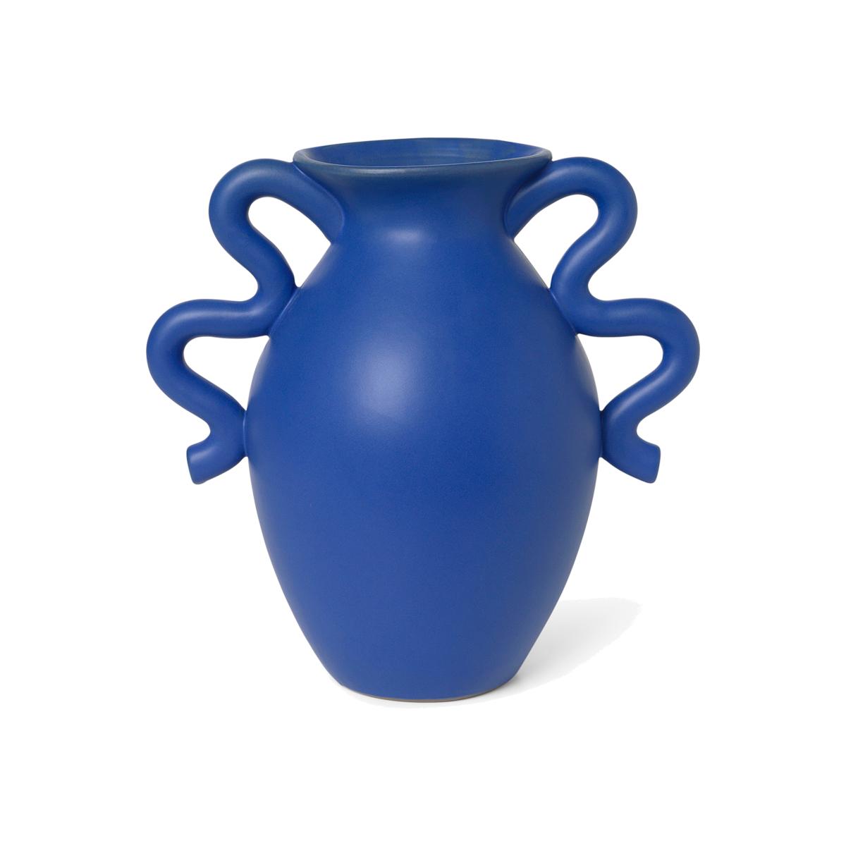 I love this blue vase for its bold colour and playful shape, which adds a contemporary touch to any space. It works particularly well in minimalist or modern interiors where it can serve as a statement piece. The bright hue ensures it stands out, so placing it in a neutral-toned room or on a clean surface will really make it pop. Practical styling tips include using it with a few simple stems or greenery to keep the look fresh and understated, or pairing it with other coloured accessories for a more eclectic vibe. Its size and vibrant finish make it versatile enough for both mantlepieces and side tables, adding a splash of colour without overwhelming the space.