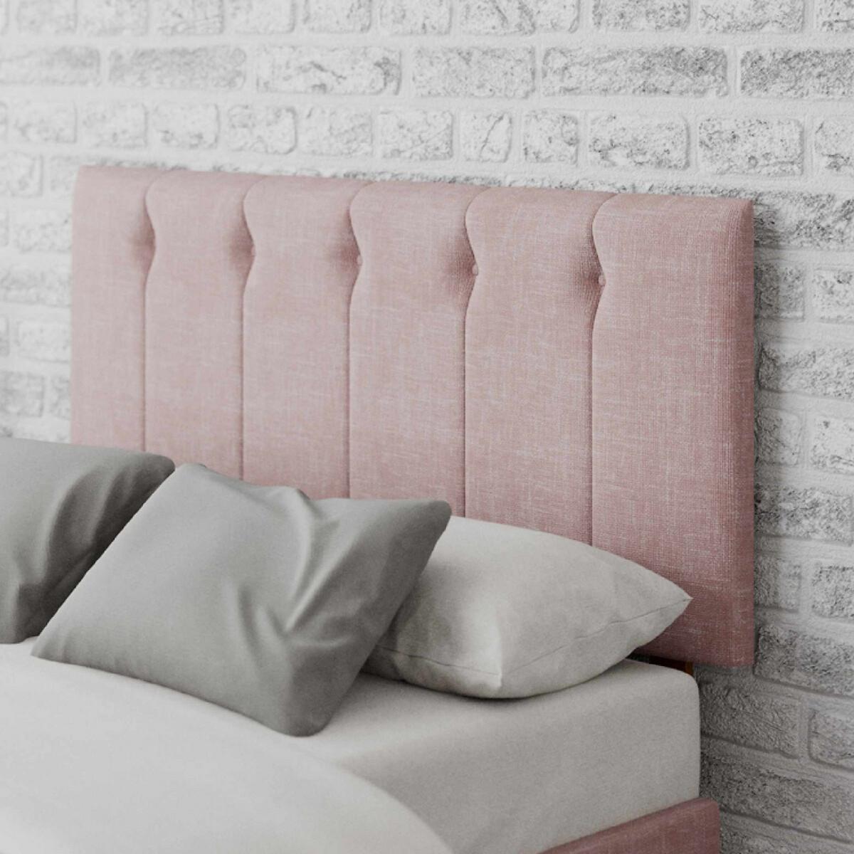 Please note: this product cannot be delivered to all Offshore Islands, Northern Island or Republic of Ireland. This product will be dispatched by one of our trusted suppliers. You’ll be contacted by their selected courier about your delivery. Please note this item will be delivered to your doorstep. A contemporary headboard featuring a deep vertical panelled design and button detailing. Its modern design enables you to turn your bed frame into a wonderful bedroom centrepiece. It is finished in Pure Pastel Cotton, a luxurious soft touch upholstery fabric with a hand-woven look and slight texture. The fabric has an ultra-smooth feel and exudes quality from a distance and up close. The headboard is hand crafted in the UK and features a chunky 15mm wooden panel, that can be fitted universally to any standard divan or frame. Swatch service: We offer a FREE swatch service. Please email samples@aspire-furniture.co.uk and include the below information:Please include 'La Redoute' in the title of your email. Name and address:Product: Hepburn Headboard. Fabric: Pure Pastel Cotton Colour: (in order to receive the correct colour please use the table below to identify correct reference)Your swatches will be delivered within 10 working days (subject to availability) Colour Description Colour to Request Pale green Eau De Nil Storm Storm Tea Rose Tea Rose Product Dimensions: Single: 60cmx90cmx8cm. Small Double: 60cmx120cmx8cm. Double: 60cmx135cmx8cm. King: 60cmx150cmx8cm Super King:60cmx180cmx8cm. Please remember to measure your available space before ordering. Packaged Dimensions: Single: 91cmx 61cmx 9cm Weight: 11kg. Small Double: 121cmx 61cmx 9cm Weight: 13kg. Double: 136cmx 61cmx 9cm Weight: 16kg. King: 151cmx 61cmx 9cm Weight: 18kg Super King: 181cmx 61cmx 9cm Weight: 21kg. Upholstered Fabric Composition: Cotton