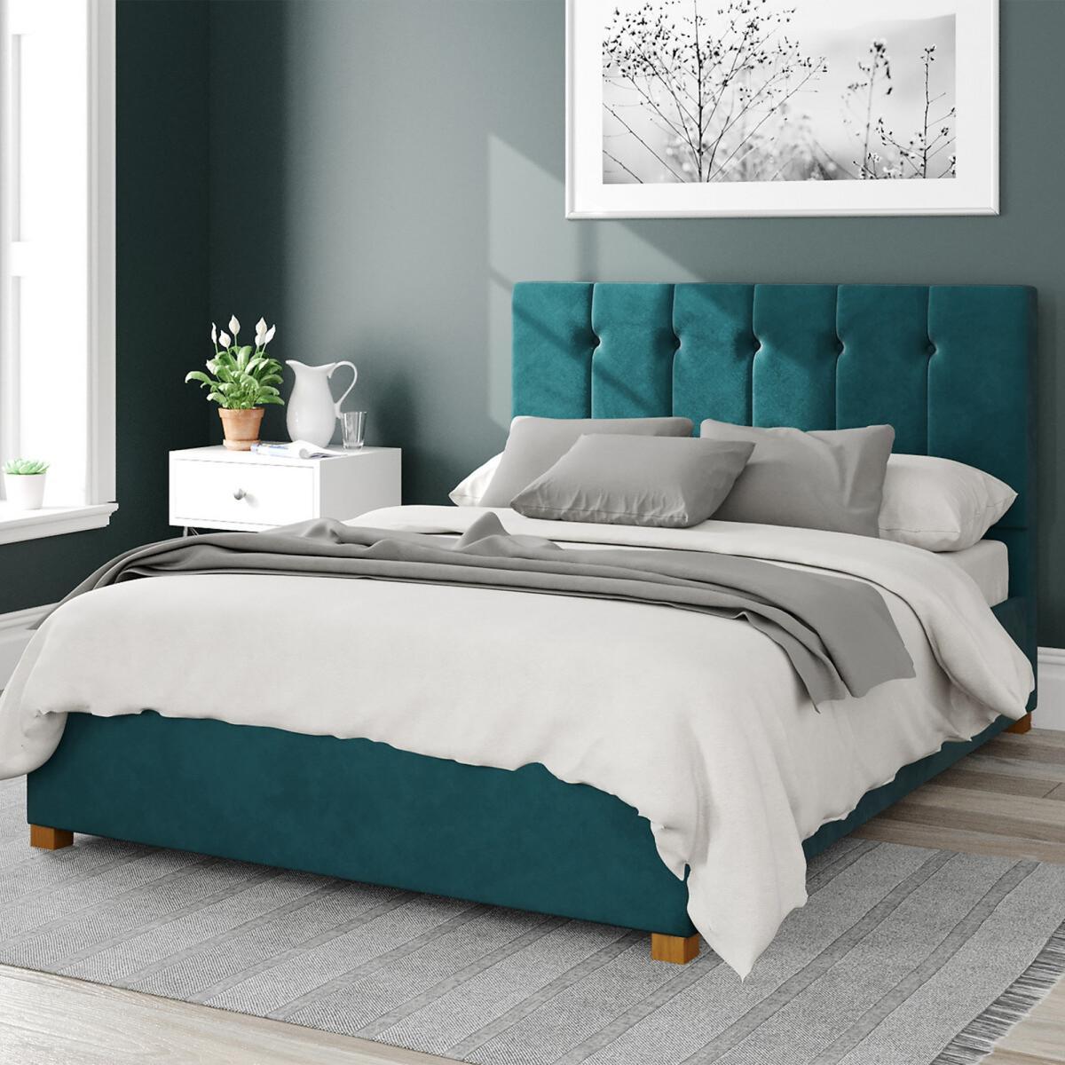 Please note: this product cannot be delivered to all Offshore Islands, Northern Island or Republic of Ireland. This product will be dispatched by one of our trusted suppliers. You’ll be contacted by their selected courier about your delivery. Please note this item will be delivered to your doorstep. Quality upholstered ottoman storage bed, hand crafted in the UK.Each headboard is constructed with deep foam padding perfect for sitting up in bed and reading. We believe quality has no short cuts, meaning all our designs are hand upholstered by our skilled craftsmen. Our UK ottoman design features chunky upholstered panels, which means it is built to last. Quality sprung slats improve comfort and mattress lifespan. The easy lift ottoman mechanism is supported with quality gas pistons, enabling the storage to be accessed with minimal effort. Once the ottoman is elevated it will hold position, allowing hands free access to storage. Our ottomans offer the perfect storage solutions for rooms with no or limited space with a spacious storage area of approximately 28cm. The fabric base attaches to the underside of the bed, protecting your stored items. Each ottoman is finished with hardwood feet which have been hand turned and varnished. Self Assembly Required. Swatch service: We offer a FREE swatch service. Please email samples@aspire-furniture.co.uk and include the below information:Please include 'La Redoute' in the title of your email. Name and address:Product: Hepburn Ottoman Bed. Fabric: Velvet. Colour: (in order to receive the correct colour please use the table below to identify correct reference)Your swatches will be delivered within 10 working days (subject to availability) Colour Description Colour to Request Forest Green Forest Green Berry Berry Slate Distressed Velvet - Slate Silver Coloured Silver Platinum Silver Coloured Distressed Velvet - Platinum Teal Teal Blush Pink Blush Steel Steel Ochre Ochre Ebony Black Ebony Navy Navy Light Grey Light Silver Emerald Emerald Duck Egg Blue Duck Egg Product Dimensions: Single: 112cmx100cmx209cm. Small Double: 112cmx130cmx209cm. Double: 112cmx147cmx209cmKing:112cmx160cmx219cm Super King: 112cmx190cmx219cm. Please remember to measure your available space before ordering. Packaged Dimensions: Single:Parcel 1 Packaged Dimensions 140cmx 113cmx 12cm Weight: 12kg Parcel 2 Packaged Dimensions 212cmx 32cmx 19cm Weight: 13kg Parcel 3 Packaged Dimensions 240cmx 180cmx 12cm Weight: 18kg. Small Double:Parcel 1 Packaged Dimensions 140cmx 113cmx 12cm Weight: 19kg Parcel 2 Packaged Dimensions 212cmx 32cmx 19cm Weight: 17kg Parcel 3 Packaged Dimensions 240cmx 180cmx 12cm Weight: 22kgDouble: Parcel 1 Packaged Dimensions 171cmx 113cmx 12cm Weight: 22kg Parcel 2 Packaged Dimensions 212cmx 32cmx 19 cm Weight: 18kg Parcel 3 Packaged Dimensions 240cmx 180cmx 12cm Weight: 23kgKing:. Parcel 1 Packaged Dimensions 171cmx 113cmx 12cm Weight: 27kg Parcel 2 Packaged Dimensions 212cmx 32cmx 19cm Weight: 22kg Parcel 3 Packaged Dimensions 240cmx 180cmx 12cm Weight: 25kg Super King:Parcel 1 Packaged Dimensions 201cmx 113cmx 12cm Weight: 30kg Parcel 2 Packaged Dimensions 212cmx 32cmx 19cm Weight: 25kg Parcel 3 Packaged Dimensions 240cmx 180cmx 12cm Weight: 27kg. Upholstered Fabric Composition: Velvet fabric