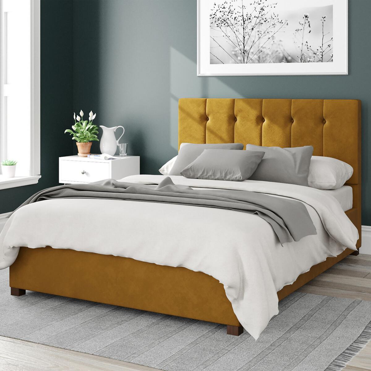 Vertical Buttoned Velvet Ottoman Storage Bed