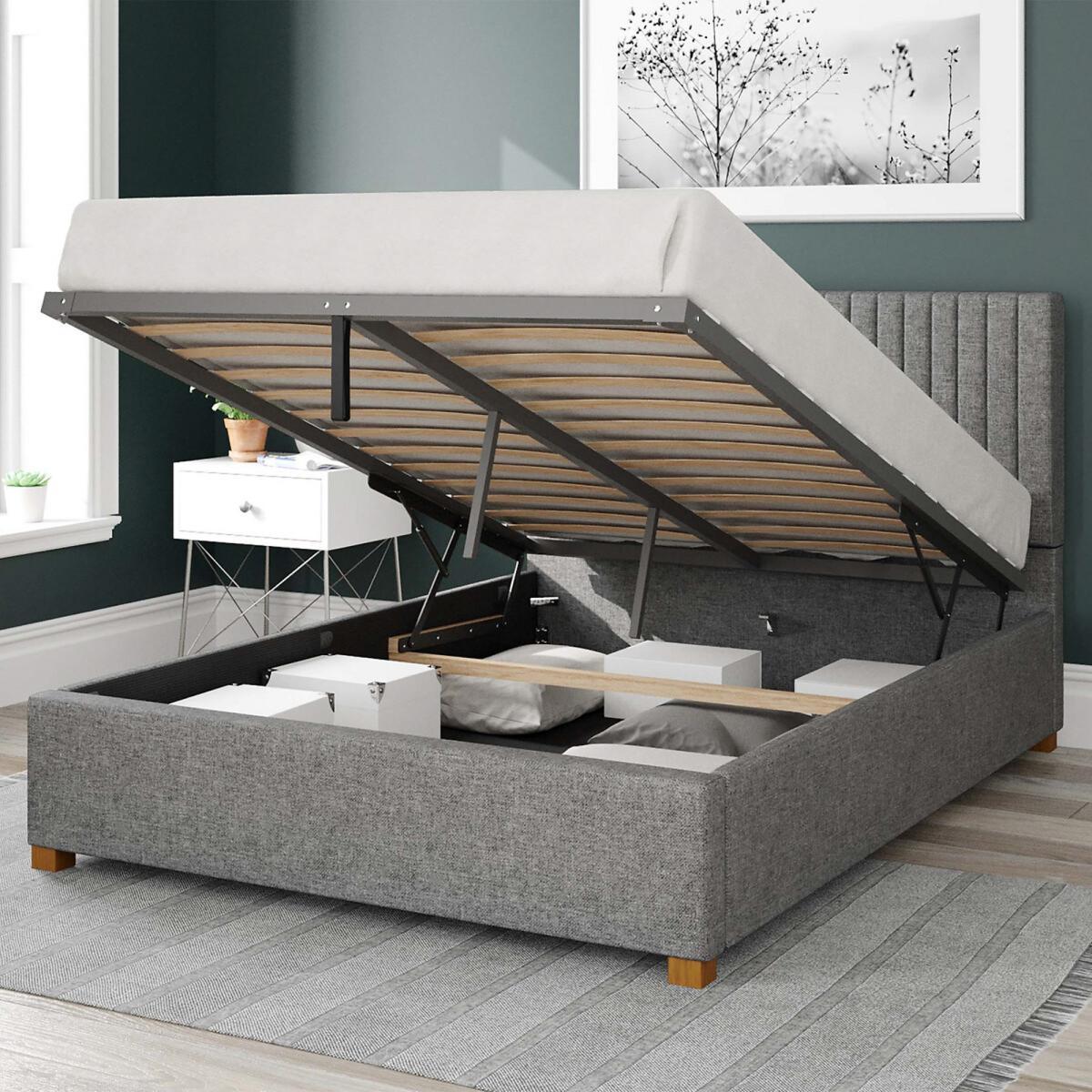 Please note: this product cannot be delivered to all Offshore Islands, Northern Island or Republic of Ireland. This product will be dispatched by one of our trusted suppliers. You’ll be contacted by their selected courier about your delivery. Please note this item will be delivered to your doorstep. Quality upholstered ottoman storage bed, hand crafted in the UK.Each headboard is constructed with deep foam padding perfect for sitting up in bed and reading. We believe quality has no short cuts, meaning all our designs are hand upholstered by our skilled craftsmen. Our UK ottoman design features chunky upholstered panels, which means it is built to last. Quality sprung slats improve comfort and mattress lifespan. The easy lift ottoman mechanism is supported with quality gas pistons, enabling the storage to be accessed with minimal effort. Once the ottoman is elevated it will hold position, allowing hands free access to storage. Our ottomans offer the perfect storage solutions for rooms with no or limited space with a spacious storage area of approximately 28cm. The fabric base attaches to the underside of the bed, protecting your stored items. Each ottoman is finished with hardwood feet which have been hand turned and varnished. Self Assembly Required. Swatch service: We offer a FREE swatch service. Please email samples@aspire-furniture.co.uk and include the below information:Please include 'La Redoute' in the title of your email. Name and address:Product: Grant Ottoman Bed. Fabric: Twill/Knit. Colour: (in order to receive the correct colour please use the table below to identify correct reference)Your swatches will be delivered within 10 working days (subject to availability) Colour Description Colour to Request Charcoal Charcoal Twill Grey marl Mineral Knit Chocolate Chocolate Knit Grey Grey Twill Natural Natural Twill Product Dimensions: Single: 112cmx100cmx209cm. Small Double:112cmx130cmx209cmDouble:112cmx147cmx209cmKing:112cmx160cmx219cm Super King:112cmx190cmx219cm. Please remember to measure your available space before ordering. Single:Parcel 1 Packaged Dimensions 140cmx 113cmx 12cm Weight: 12kg Parcel 2 Packaged Dimensions 212cmx 32cmx 19cm Weight: 13kg Parcel 3 Packaged Dimensions 240cmx 180cmx 12cm Weight: 18kg. Small Double:Parcel 1 Packaged Dimensions 140cmx 113cmx 12cm Weight: 19kg Parcel 2 Packaged Dimensions 212cmx 32cmx 19cm Weight: 17kg Parcel 3 Packaged Dimensions 240cmx 180cmx 12cm Weight: 22kgDouble: Parcel 1 Packaged Dimensions 171cmx 113cmx 12cm Weight: 22kg Parcel 2 Packaged Dimensions 212cmx 32cmx 19 cm Weight: 18kg Parcel 3 Packaged Dimensions 240cmx 180cmx 12cm Weight: 23kgKing:. Parcel 1 Packaged Dimensions 171cmx 113cmx 12cm Weight: 27kg Parcel 2 Packaged Dimensions 212cmx 32cmx 19cm Weight: 22kg Parcel 3 Packaged Dimensions 240cmx 180cmx 12cm Weight: 25kg Super King:Parcel 1 Packaged Dimensions 201cmx 113cmx 12cm Weight: 30kg Parcel 2 Packaged Dimensions 212cmx 32cmx 19cm Weight: 25kg Parcel 3 Packaged Dimensions 240cmx 180cmx 12cm Weight: 27kg. Upholstered Fabric Composition: Twill Knit Fabric