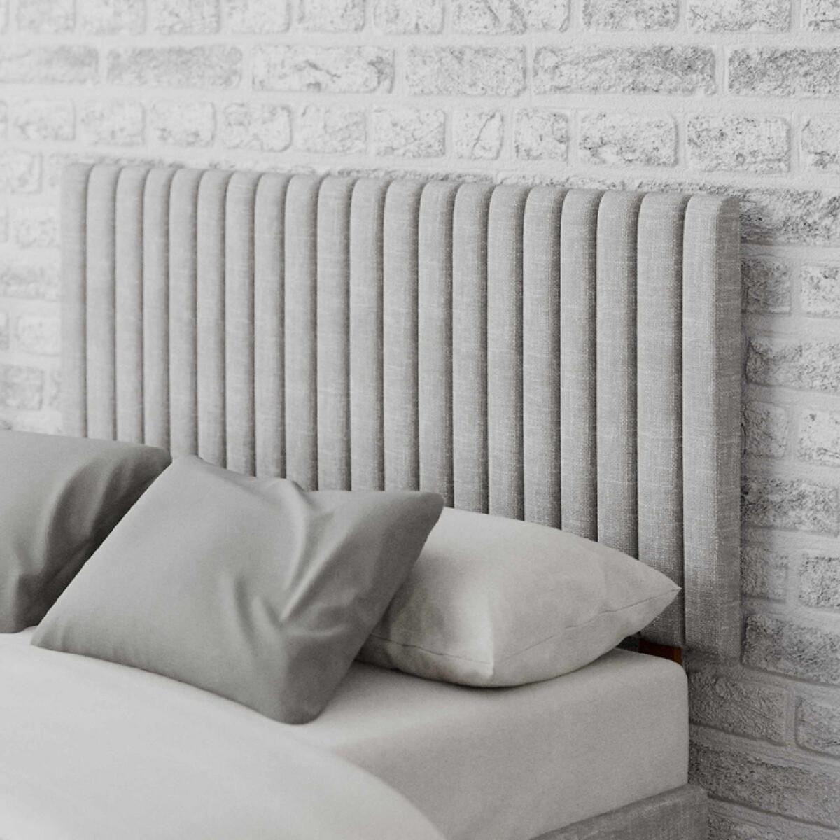 Please note: this product cannot be delivered to all Offshore Islands, Northern Island or Republic of Ireland. This product will be dispatched by one of our trusted suppliers. You’ll be contacted by their selected courier about your delivery. Please note this item will be delivered to your doorstep. A contemporary headboard featuring a vertical pattern. Its modern design enables you to turn your bed frame into a wonderful bedroom centrepiece. It is finished in Pure Pastel Cotton, a luxurious soft touch upholstery fabric with a hand-woven look and slight texture. The fabric has an ultra-smooth feel and exudes quality from a distance and up close. The headboard is hand crafted in the UK and features a chunky 15mm wooden panel, that can be fitted universally to any standard divan or frame. Swatch service: We offer a FREE swatch service. Please email samples@aspire-furniture.co.uk and include the below information:Please include 'La Redoute' in the title of your email. Name and address:Product: Grant Headboard. Fabric: Pure Pastel Cotton Colour: (in order to receive the correct colour please use the table below to identify correct reference)Your swatches will be delivered within 10 working days (subject to availability) Colour Description Colour to Request Pale green Eau De Nil Storm Storm Tea Rose Tea Rose Product Dimensions: Single: 60cmx90cmx8cm. Small Double: 60cmx120cmx8cm. Double: 60cmx135cmx8cmKing:60cmx150cmx8cm Super King:60cmx180cmx8cm. Please remember to measure your available space before ordering. Packaged Dimensions: Single: 91cmx 61cmx 9cm Weight: 11kg. Small Double: 121cmx 61cmx 9cm Weight: 13kg. Double: 136cmx 61cmx 9cm Weight: 16kg. King; 151cmx 61cmx 9cm Weight: 18kg Super King: 181cmx 61cmx 9cm Weight: 21kg. Upholstered Fabric Composition: Cotton