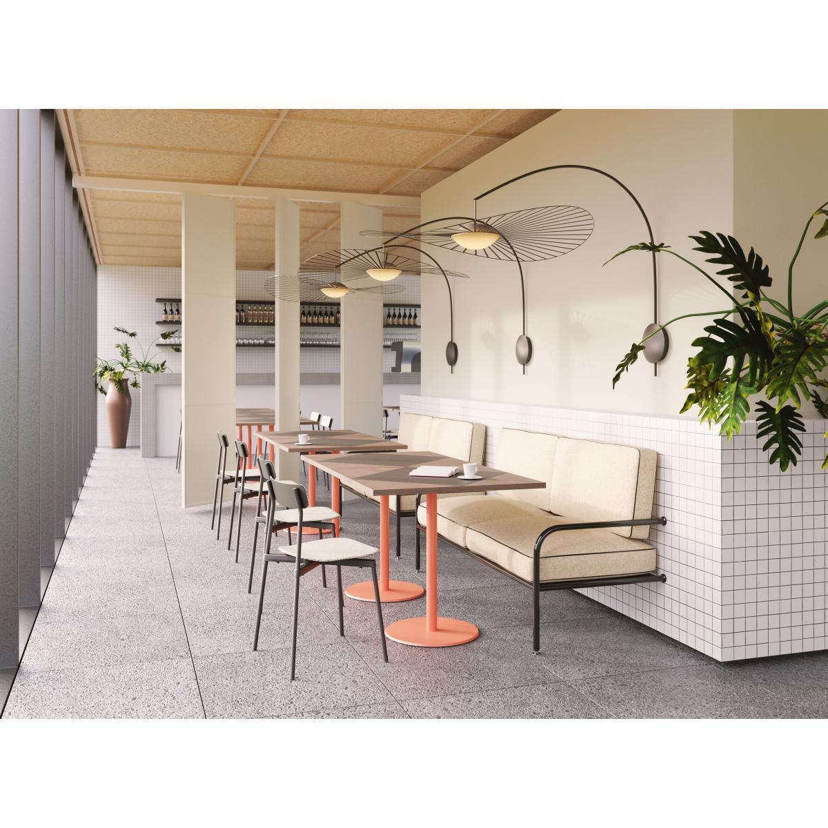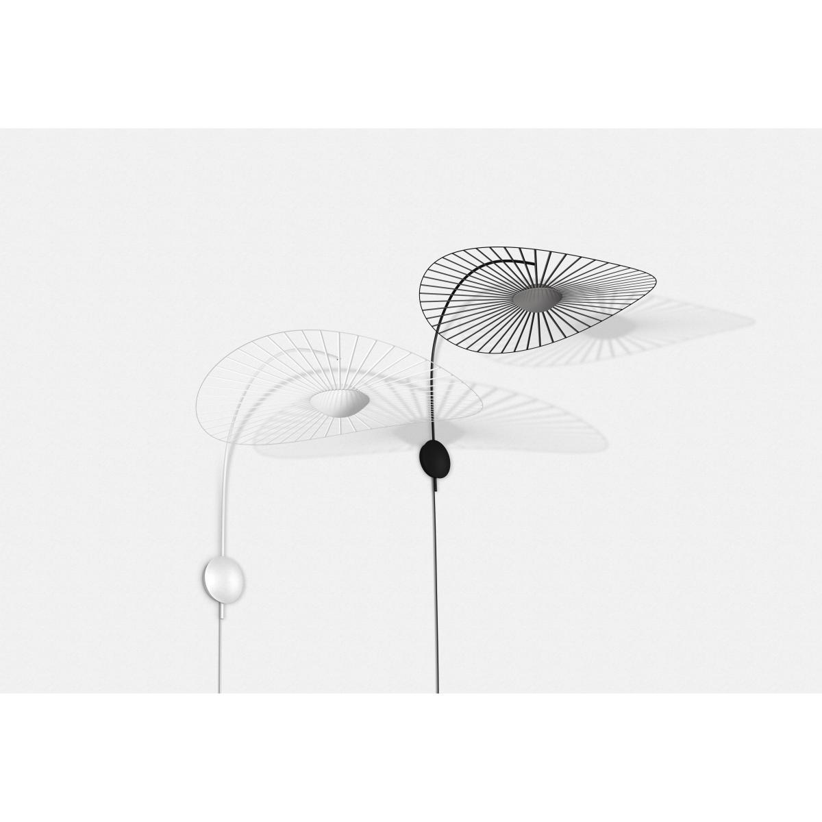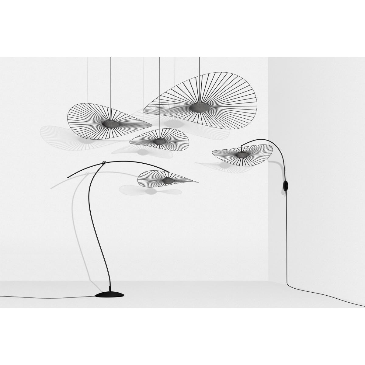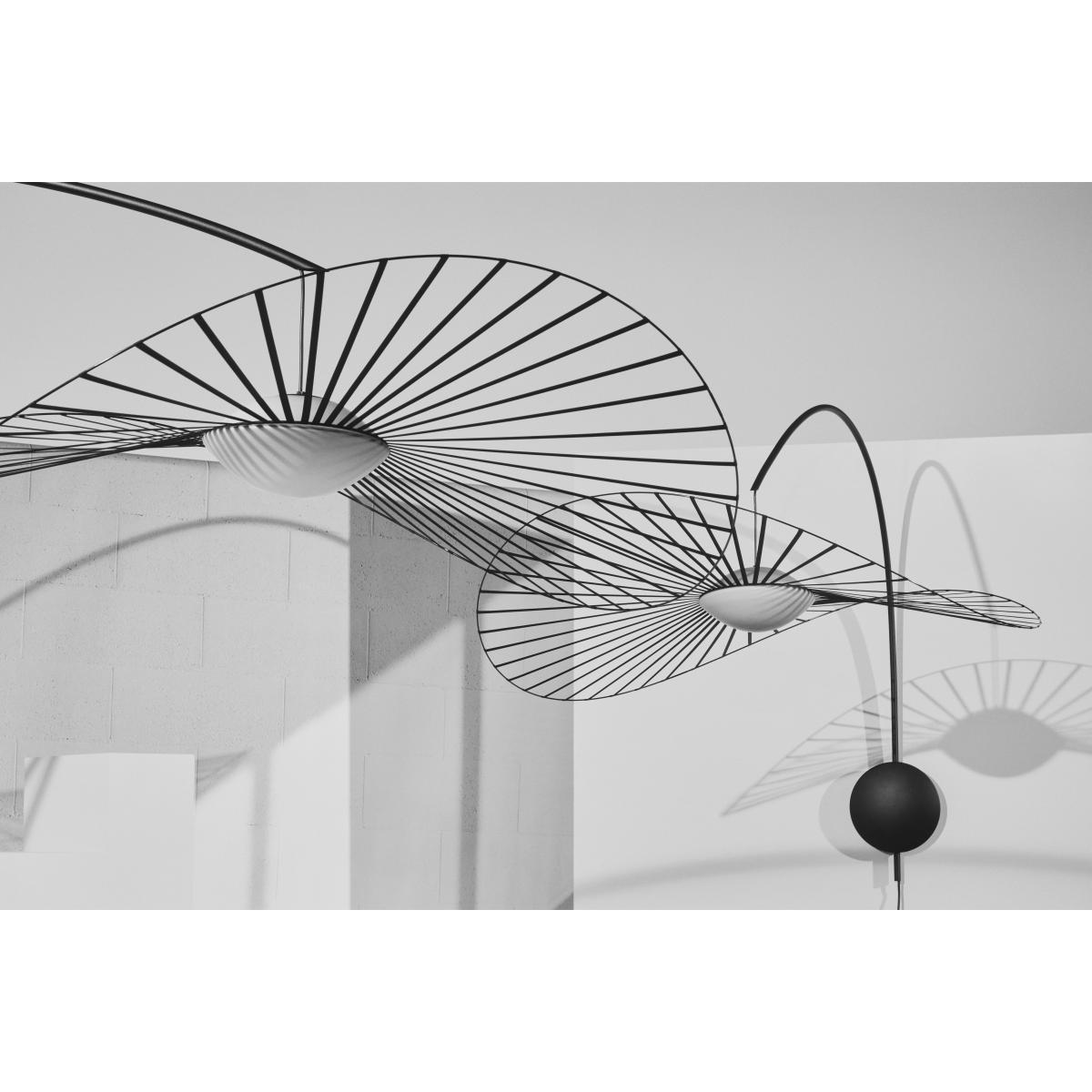 Vertigo Nova, a star is born. In a few years, the Vertigo pendant has become an emblematic light of contemporary design. Petite Friture and the French designer, Constance Guisset, have written a new chapter in the history of the iconic Vertigo pendant, which is now available as a wall light and floor lamp. These new editions are equipped with a central glass globe housing a cutting-edge LED technology, giving off a very gentle light. Vertigo Nova reuses the conventions and unique design which have made the traditional Vertigo pendant so successful: a large size, movement, lightness, graphic style and elegance. Its unique feature: the integrated, powerful and dimmable LED technology, which ensures an excellent diffusion, gentle or intense, as you like. Vertigo Nova magnifies the light: in addition to the practical and uniform light, this wall light projects a pretty shadow pattern on the surrounding walls once switched on. The arm can rotate: Vertigo Nova's lampshade consists of flexible polyurethane strips hand-stretched over a thin fibreglass structure. Vertigo Nova quivers with vibrations. It floats freely in space and twirls gently under the effect of drafts. Like a wide-brimmed hat, its mysterious, enveloping shape suggests an intimate space. A true "cabin lamp", it blends naturally into its environment by delimiting a graphic, almost transparent space, as if suspended between floor and ceiling. This lamp-sculpture is intriguing due to its form and its movement, appealing through its look. A singular presence ideal for daydreaming. The designer, Constance Guisset: "Vertigo Nova was born from the desire to work with the light of the object to soften and graduate it. The technical part is now sucked into a mysterious frosted glass. The function of the lamp is enhanced to only allow the essential to appear, a blanket flying between two bodies of water, light and delicate. ‘’.