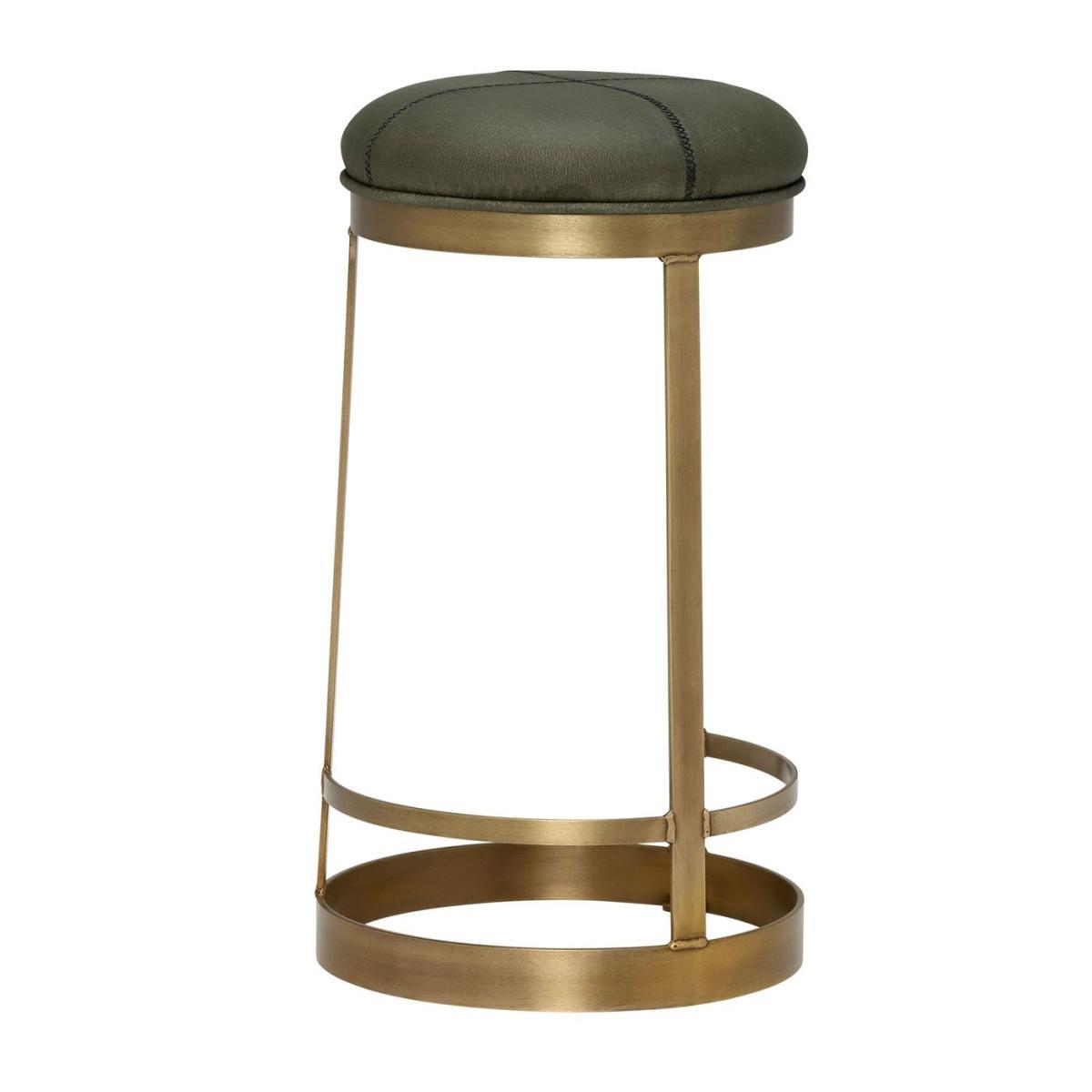 Design. A sophisticated seating choice for your home bar or kitchen island, the Vesper leather bar stool features a sleek metal frame finished in on-trend brass for a vintage touch. Incredibly comfortable, the seat is filled with high-quality foam that provides lasting support. Beautifully upholstered in your choice of hand-treated leather, it’s detailed with stylish exposed stitching. With a simple round design and an open frame, this bar stool offers a practical place to perch without taking up too much space. Choose between earthy browns, blacks and greys, or colourful red, blue and yellow.