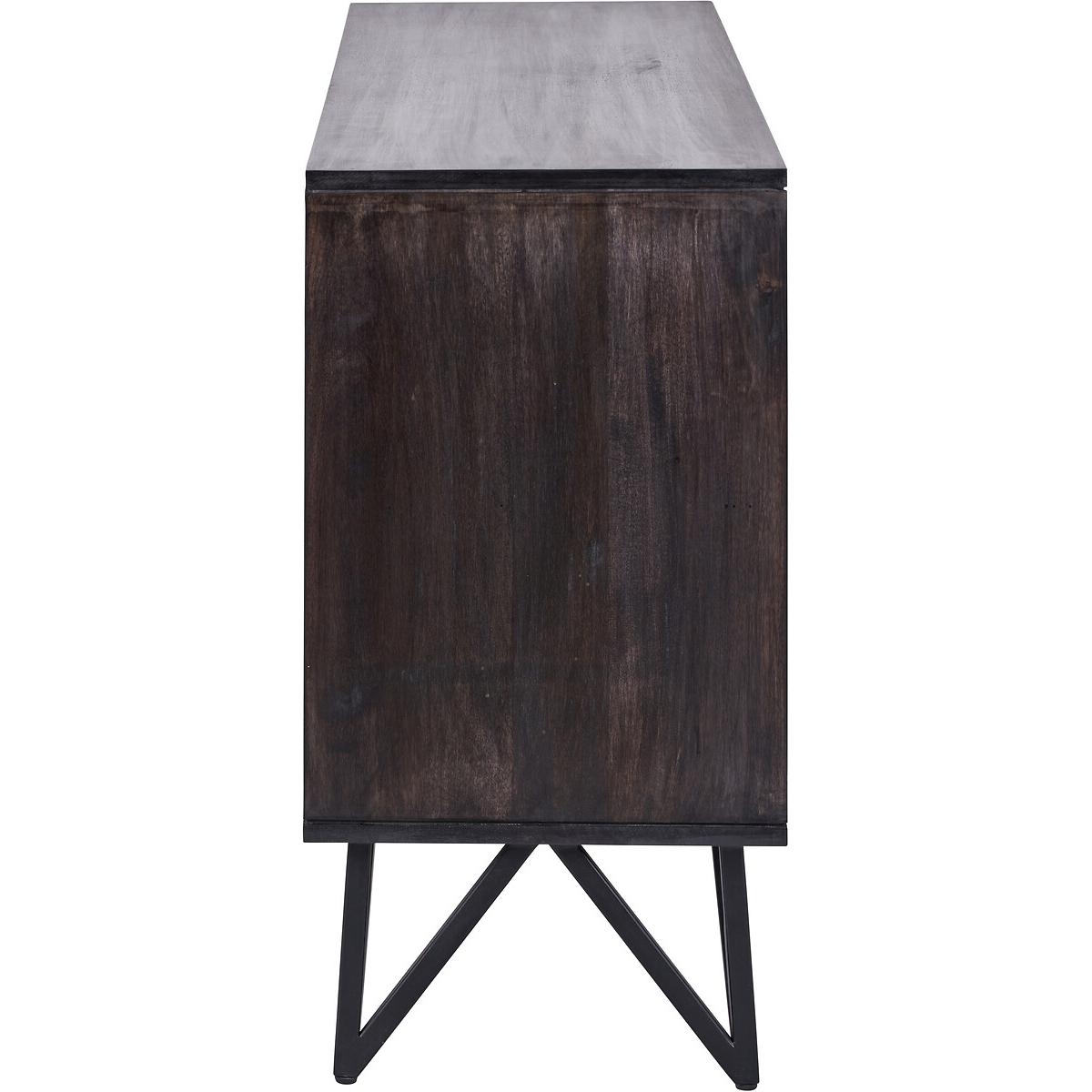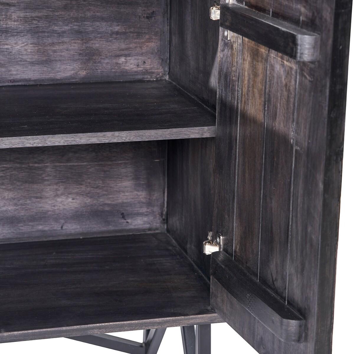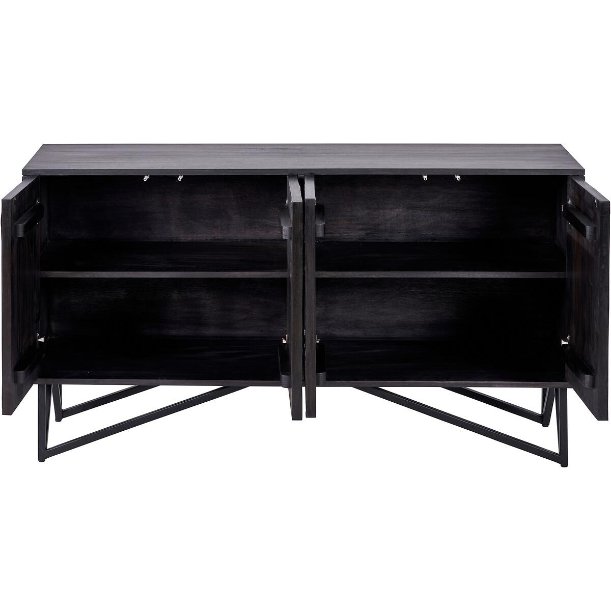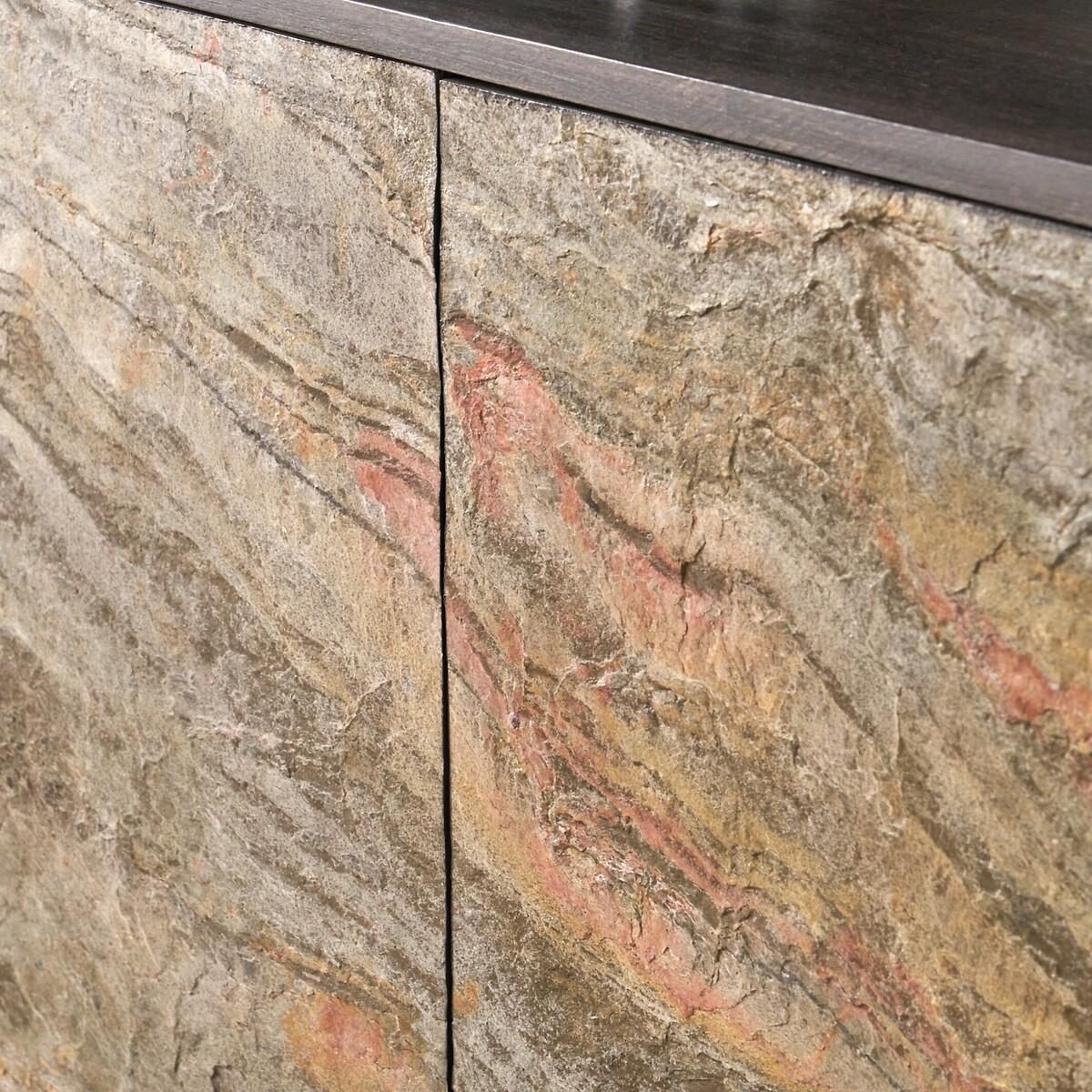 Make a bold statement with the Vesto 4-Door Sideboard, an extraordinary blend of natural texture and modern design. Expertly crafted in India, this distinctive piece combines sleek black-finished mango wood with unusual stone veneer door fronts. The stone veneer, showcasing earthy tones of green, grey, and brown, creates a striking contrast and adds an industrial edge rarely seen in sideboard design. Resting on angled metal legs, the Vesto Sideboard offers both style and practicality, with generous shelved storage hidden behind its four doors and a smooth top for displaying ornaments or décor. Ideal for dining rooms, open-plan living spaces, or design-led offices, this sideboard doubles as a sculptural focal point while keeping your essentials neatly concealed. Product Details• Made from mango wood• Stone veneer cupboards• 4 doors• Fixed interior shelves• Wall fixings included• Partial assembly required (legs/feet only)• 1 year manufacturers warranty. Product Composition - mango wood 88%, Steel 10%, Veneer 2%Product Dimensions - 140 cm x40 cm x76 cm , Weight - 42.5 KG• Clearance to floor: 21 cm Package Dimensions - 148 cm x 84 cm x 48 cm, Weight 54 kg. This product will be dispatched by one of our trusted suppliers. You’ll be contacted by their selected courier about your delivery.