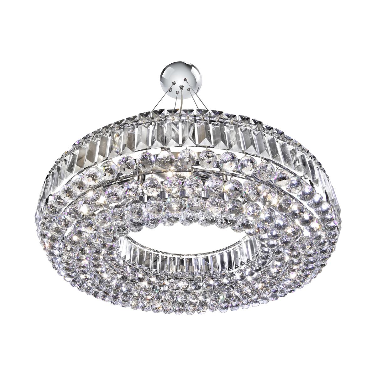This Vesuvius chrome circular 10 light chandelier with clear crystal coffin drops and balls makes an amazing impact in any room. The majestic, contemporary chandelier is a real statement piece which features a decorative hollow ring of crystal coffin drops and balls, with ten lights that make the entire piece sparkle at night.