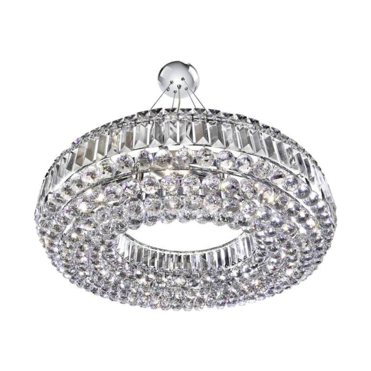 Has a modern and elegant feel which is sure to completely transform any room. The crystals on the fitting allow the light to reflect and shine in a beautiful way. This fitting is the ideal choice in any formal style room. The fitting has a weight of 47 kilograms. This gorgeous ceiling light is available in a larger version.