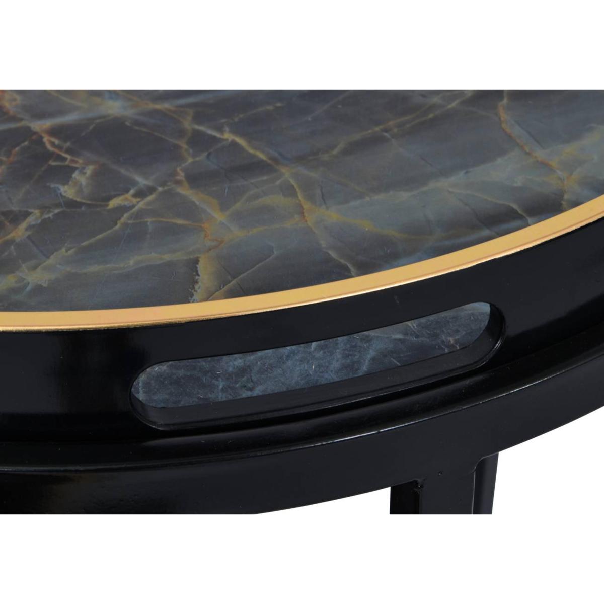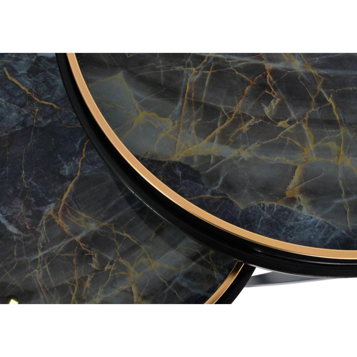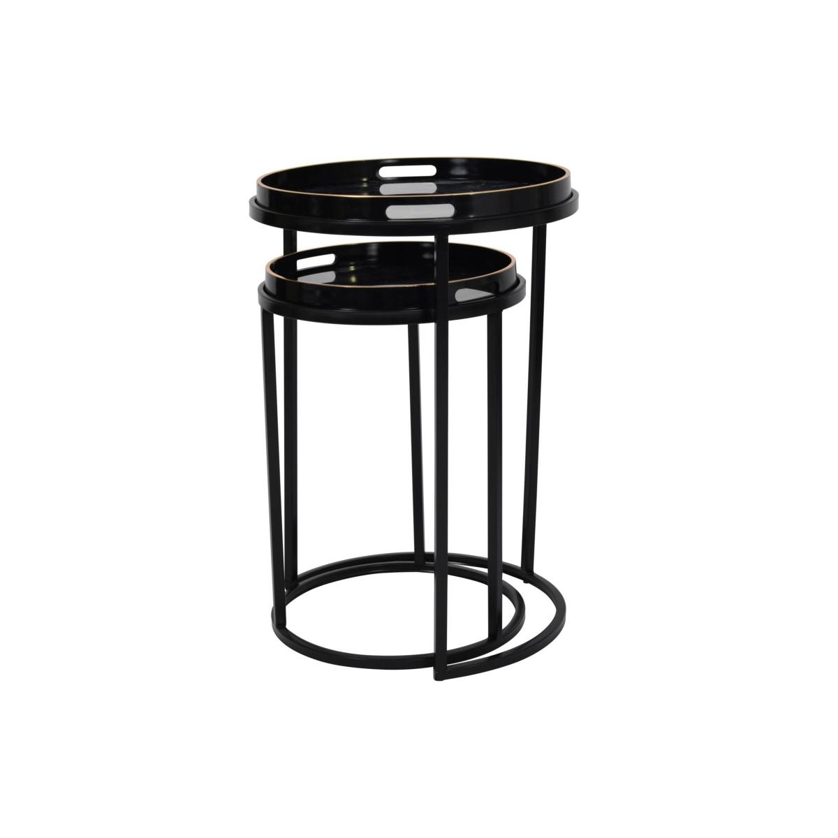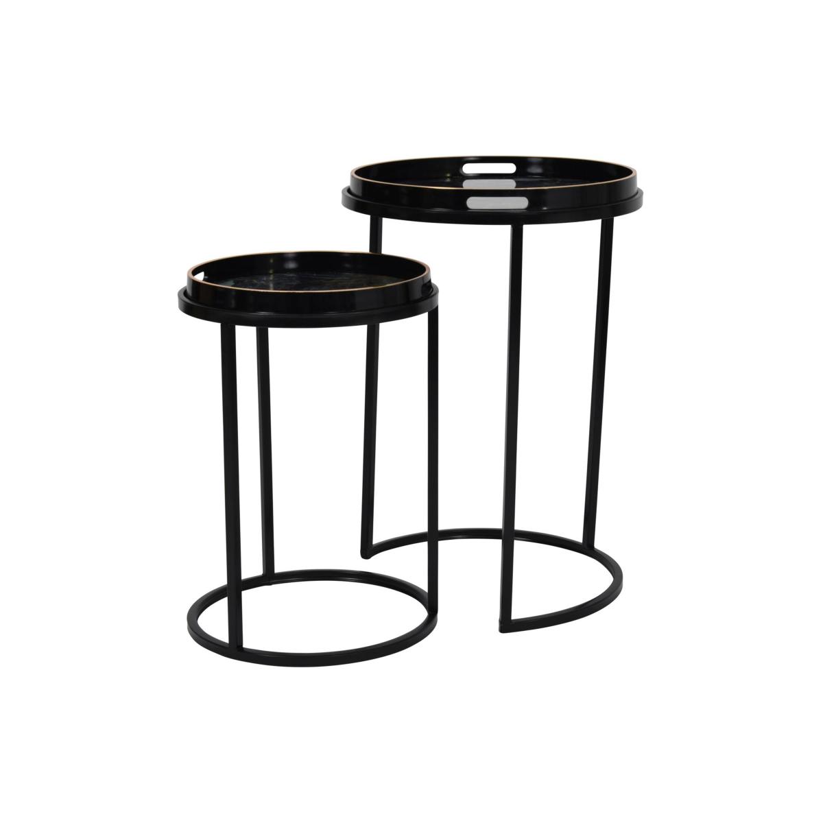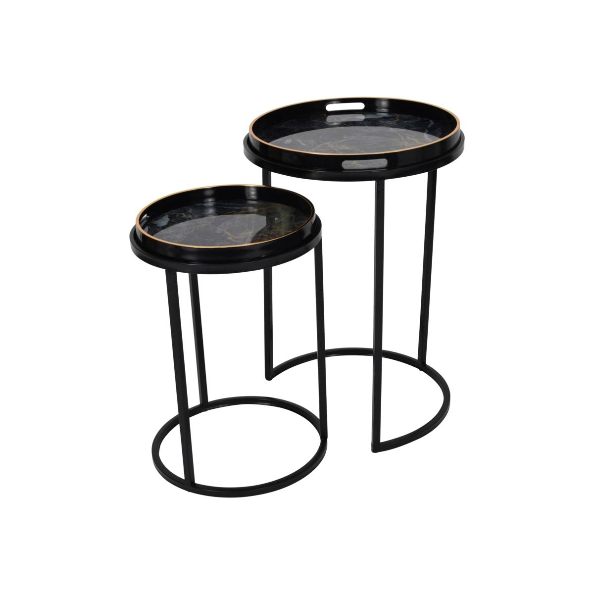 The Vesuvius set of two side tables: made for stylishly serving at home. Gorgeous metal frames and a marble-like finish. Why you'll love it. A touch of luxury. Contemporary design. Nest together or create a chic coordinating set. Stunning black and gold colour palette. Trays can be removed for ease. Made with care for Furniture Village. What you need to know. Iron base. Mirrored glass surface. For indoor use only. Dimensions. Height: 69 cm (28 in). Width: 47 cm (19 in). Depth: 47 cm (19 in).