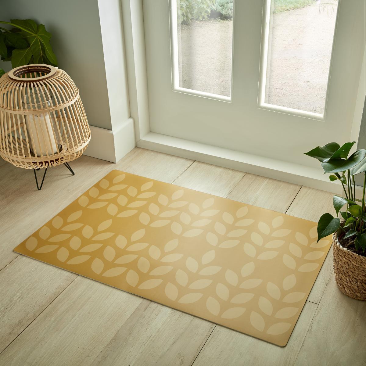 Inspired by Scandi design, the Vete Vinyl Doormat adds a pop of sunshine-inspired colour to your busy spaces. The 100% vinyl composition makes the Vete Vinyl Doormat perfect for on-the-go homes. The low-profile design is hard-wearing, the ideal choice for adding some comfort to high-traffic zones. Wipe-clean and moppable, the Vete Vinyl Doormat is pet and child friendly. We love using in kitchens, hallways and bathrooms to add a cushioned element to hard floors and some Scandi style to your busy spaces. Turn regularly to ensure even wear and to reduce moisture from building up under the mat. Wipe clean any spills with a damp, white cloth. Avoid the use of hard chemicals or bleach. Do not wash or tumble dry. Do not place this rug near an open fire. Please do not leave children or infants unattended.