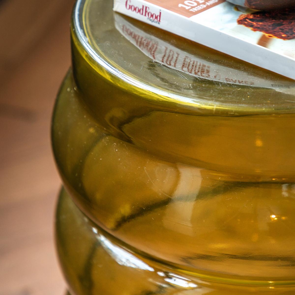 I’m a fan of this little green glass side table for its sculptural ripple effect and translucent hue - it adds shape and colour without overwhelming a space. It works particularly well in modern or mid-century settings where clean lines meet bold accents, but also slots neatly into a more eclectic lounge or a sunlit conservatory. Styling tip: pair it with a matte ceramic vase or a stack of slim coffee-table books in neutral tones to balance the gloss. In a bedroom corner, use it as a plant stand for a fern or trailing ivy to introduce natural texture and height.