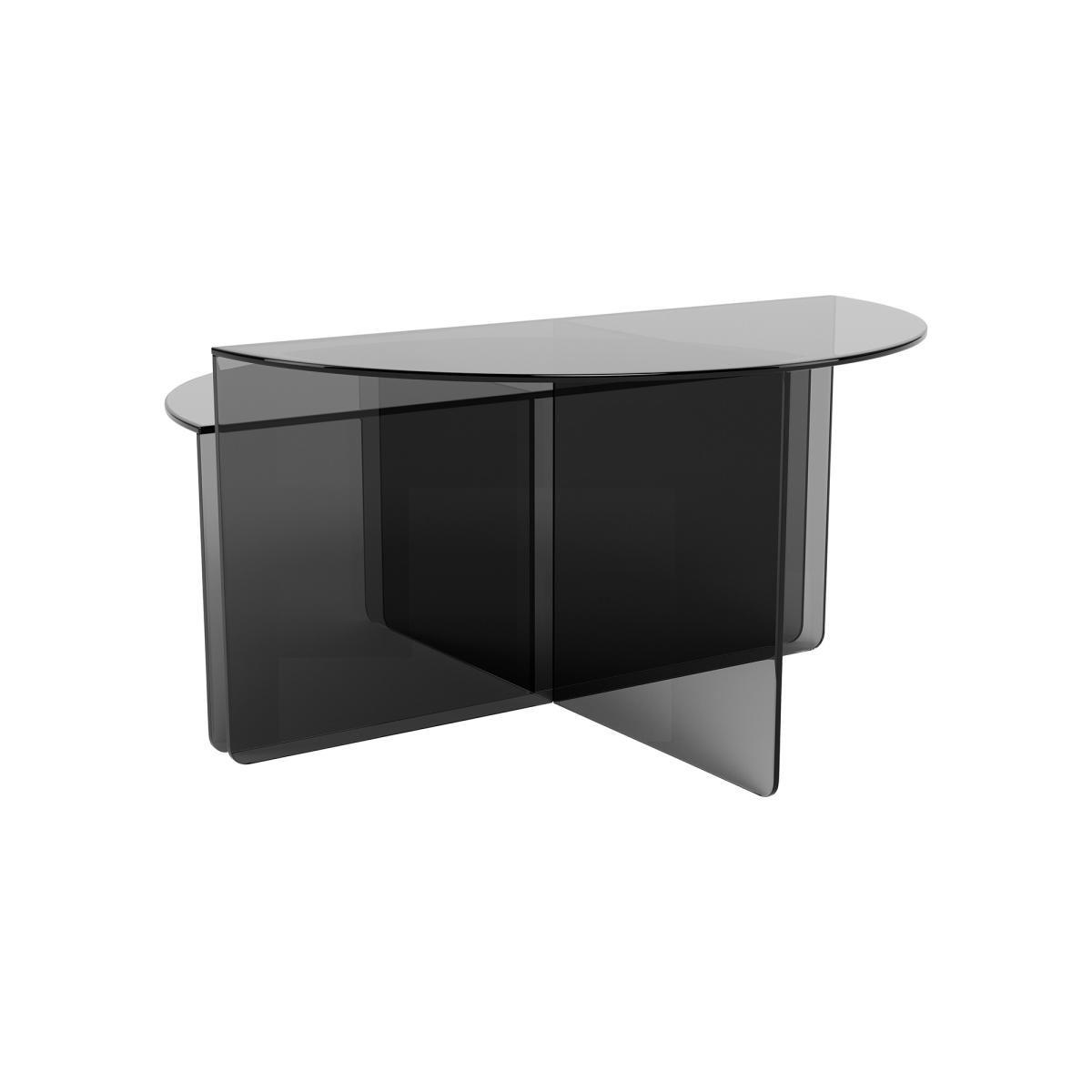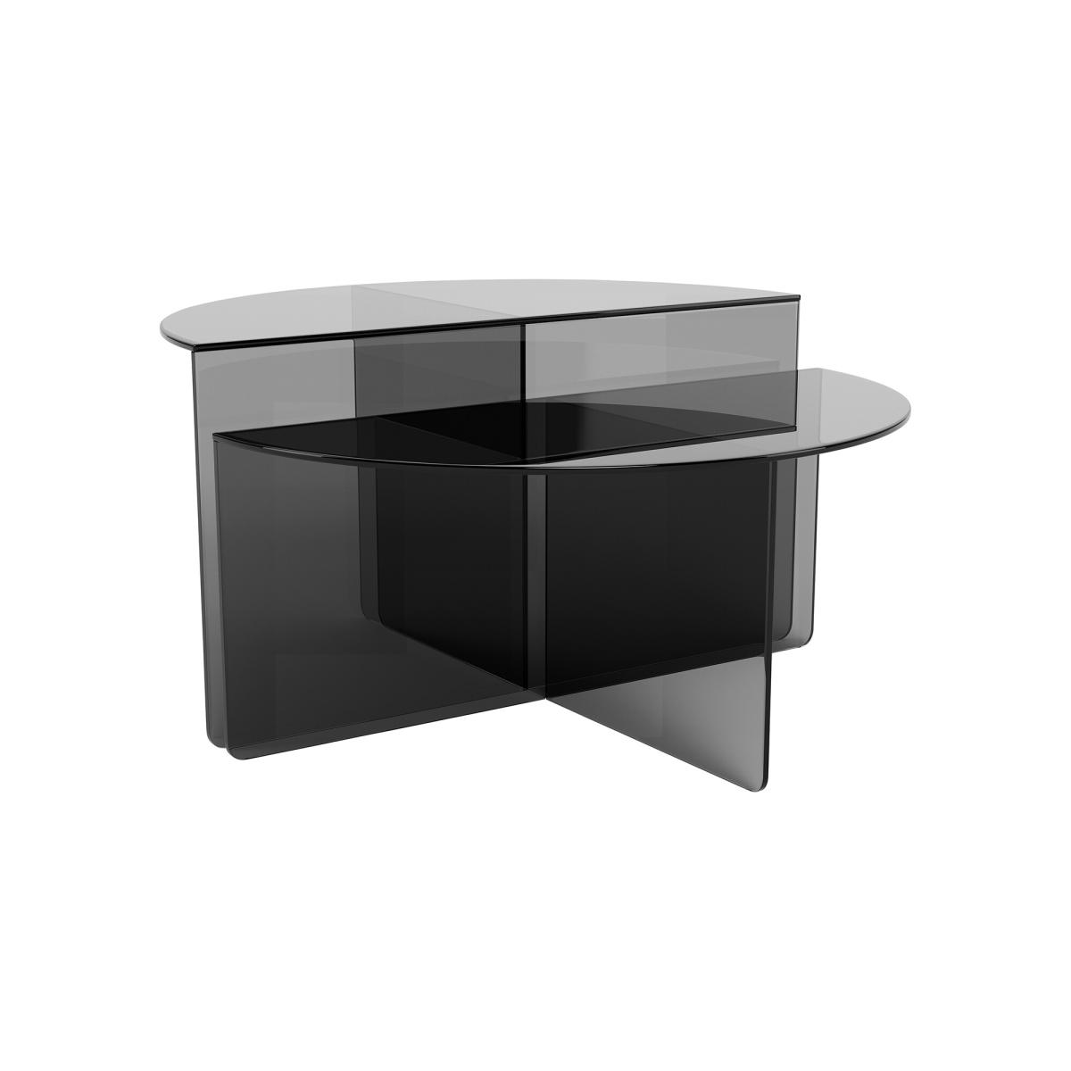 The Vetro Smoked Tempered Glass Round Coffee Table Set brings modern elegance to any living space. Featuring a set of two tables with smoked tempered glass tops and striking V-shaped bases, it combines unique design with durable quality. Ideal for contemporary or minimalist interiors, the round silhouette and sleek finish create a sophisticated focal point. Perfect for displaying décor, holding drinks, or complementing seating areas, this set balances style and function effortlessly.