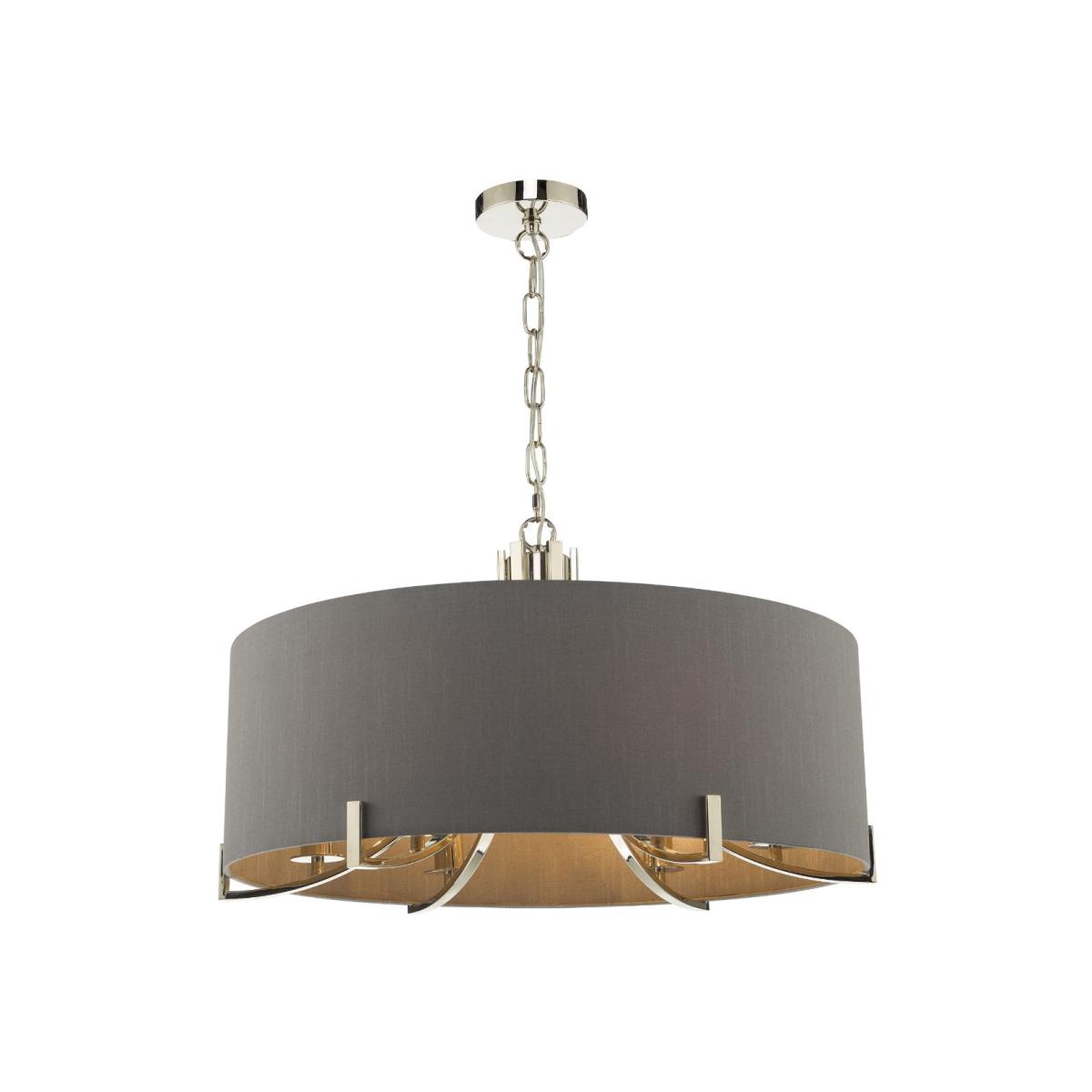 Contemporary ceiling light boasting a light grey and nickel finish. A stylish addition to your home, this ceiling light is part of the Veyron collection from Dar. This 6 light pendant boasts an elegant shape featuring a light grey shade and nickel detailing. It is adjustable in height and is ideal for use in kitchens, dining rooms, living room and hallways. Choose from either our warm white or cool white E14 bulbs Contemporary ceiling light boasting a light grey and nickel finish. A stylish addition to your home, this ceiling light is part of the Veyron collection from Dar. This 6 light pendant boasts an elegant shape featuring a light grey shade and nickel detailing. It is adjustable in height and is ideal for use in kitchens, dining rooms, living room and hallways. Choose from either our warm white or cool white E14 bulbs