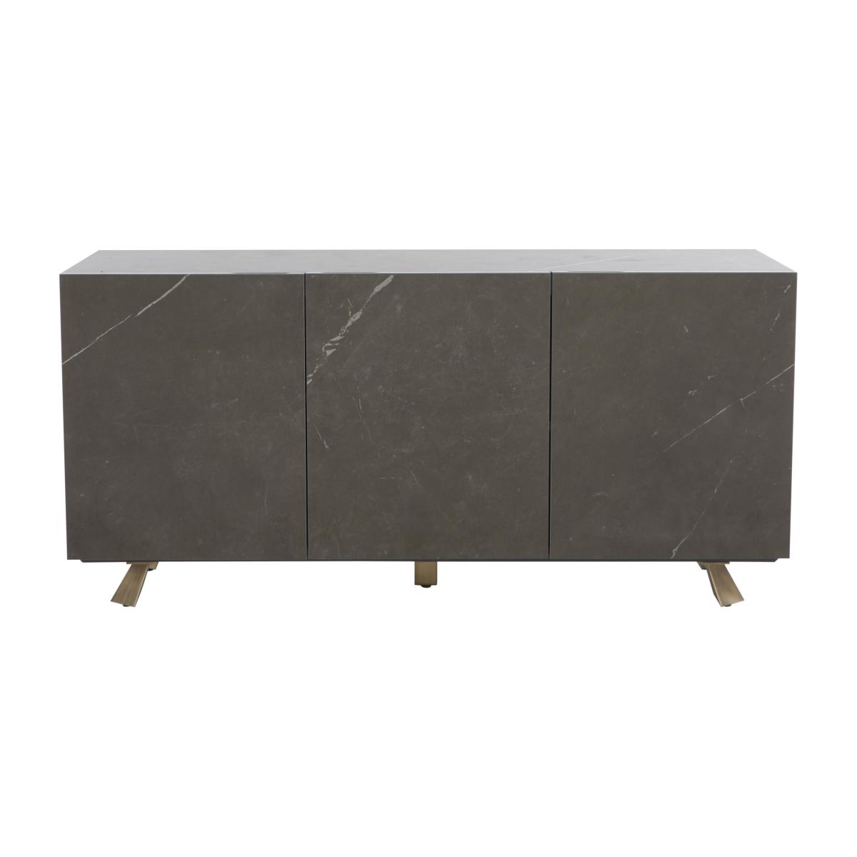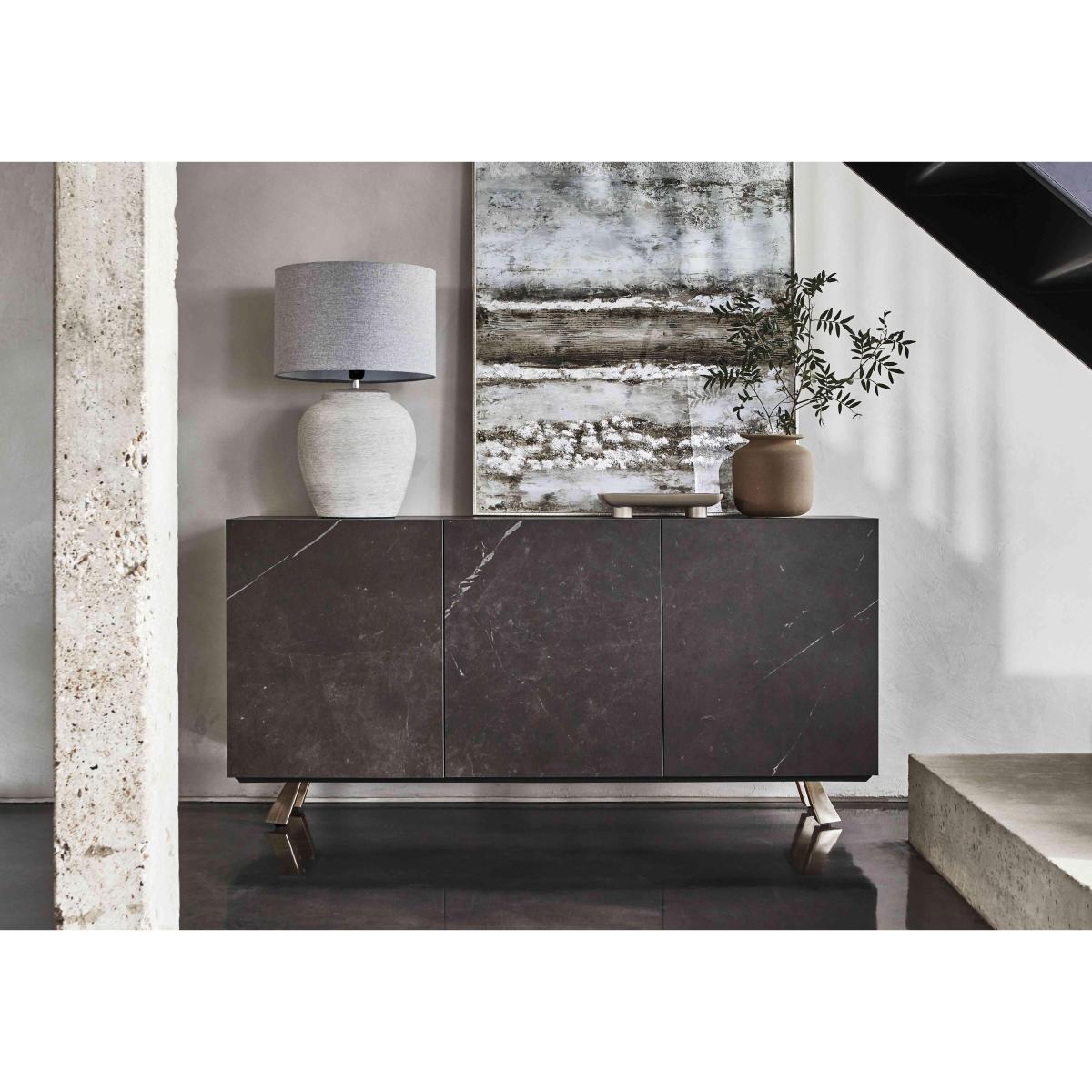 If you’re looking to make a style statement in your dining room, Veyron is the range for you. In a bold reinterpretation of modern urban style, the Veryon extending dining table delivers the wow factor on a grand scale thanks to its gorgeous combination of finishes – the dark grey Italian ceramic table top and that brushed brass angular base. And, as it extends to seat twelve, this is statement style that everyone can enjoy. Choose from a selection of dining sets featuring brass-leg dining chairs and complete the look with the range’s sideboard. Veyron is exclusive to Furniture Village. Practical sideboard proportions meet statement sideboard style in this piece, part of our exclusive Veyron range. The combination of ceramic and brushed brass is so uniqueWhy you'll love it Fabulous on the outside, spacious on the inside – this is sideboard perfection. Sophisticated urban dining style with a very unique look. Dark grey Italian ceramic on glass finish is extremely hardwearing. Metal legs have a brushed brass finish. Exclusive to Furniture Village. This sideboard is part of the Veyron range. What you need to know 1 double-door cupboard and 1 single-door cupboard each with a fixed shelf. The ceramic finish is heat-, scratch- and chip-resistant but not 100% heatproof. We recommend using coasters and placemats at all times. Easy to care for. Simply wipe with a clean damp cloth. WARNING!