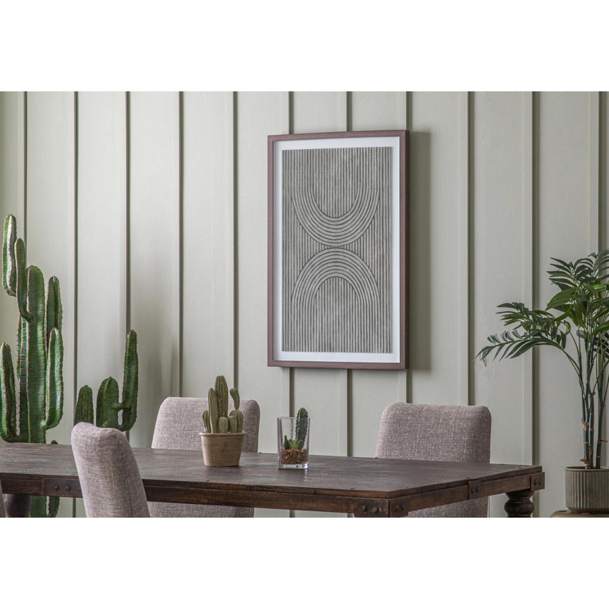 A contemporary and modern print with a distinctly bohemian feel, the Viaduct II Framed Wall Art features an interplay between straight and curved line forms with a natural styled grayscale colour scheme and a natural Wooden frame.
