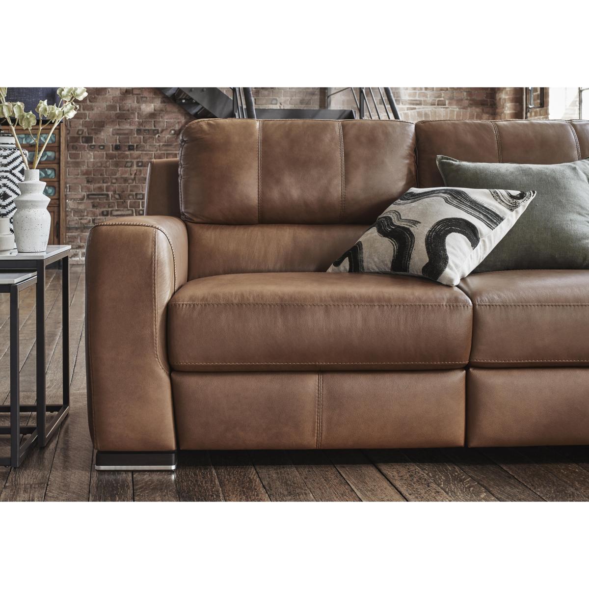Choose a sofa or chair from the Marinelli Viali range and you’ll enjoy the very best of Italian style, comfort and craftsmanship. The look is modern and luxurious from top to bottom, with understated straight arms and body-cradling curves. And you’ll quickly discover that beneath the stylish exterior, these sofas and chairs are built for real comfort. Sprung seats and backs, power recliners and pocket spring seat cushioning promise relaxation like never before. Fully modular, the Marinelli Viali range is designed, crafted and finished in Italy and offered in both 100% leather and fabric upholstery. Available with optional power recliners, this two-seater leather sofa is the epitome of Italian luxury in terms of style, comfort and craftsmanship. Made in Italy by Marinelli. Why you’ll love it Bring home contemporary Italian luxury. On-trend design with modern straight arms and curves in all the right places. Cushion perfection – seats have pocket spring and foam interiors for comfort with support. And those sprung seats and backs ensure evenly distributed body weight. Upgrade to the power recliner model for even more loungability. Relax at the touch of a button with the hidden recliner button down the inside seat cushion. 100% leather upholstery in an extensive choice of colours. Made in Italy. This 2-seater leather sofa is part of the modular Marinelli Viali range. Want something different? What you need to know Medium comfort level. Seat suspension: pocket springs. Seat cushioning: pocket springs, foam. Cushioning is fixed. Back suspension: webbing. Back cushioning: fibre. Cushioning is fixed. Arm cushioning: foam. Please allow time for recliner mechanisms to ease. Minor gaps are necessary to ensure ease of motion and may be exaggerated depending on floor type. To smooth and straighten fixed cushions, punch the back cushion’s top two corners and the seat cushion’s outer two corners, and pinch outwards. Leather has unique marks and characteristics with variation in colour and texture. Leather softens with use. Please read our upholstery care guide for more advice. Item code: VIAL2S--2-009