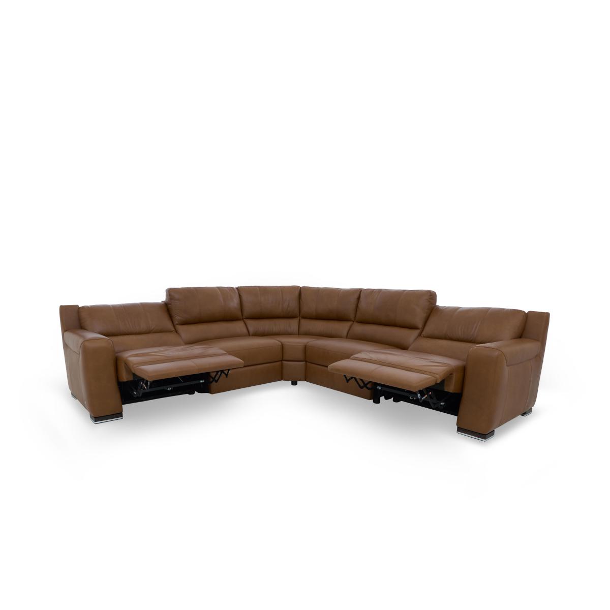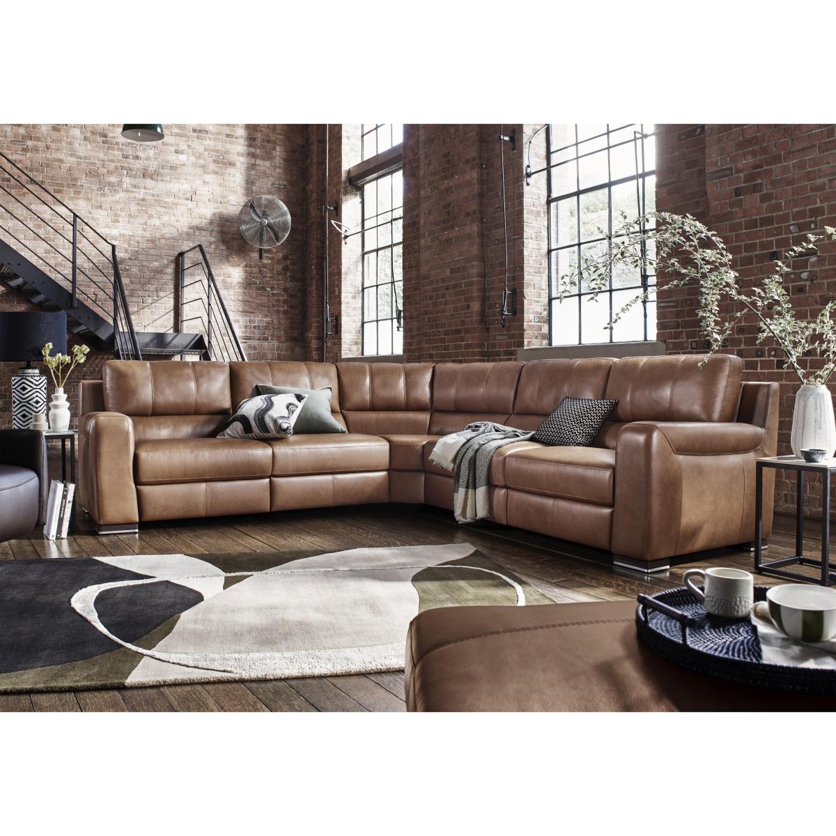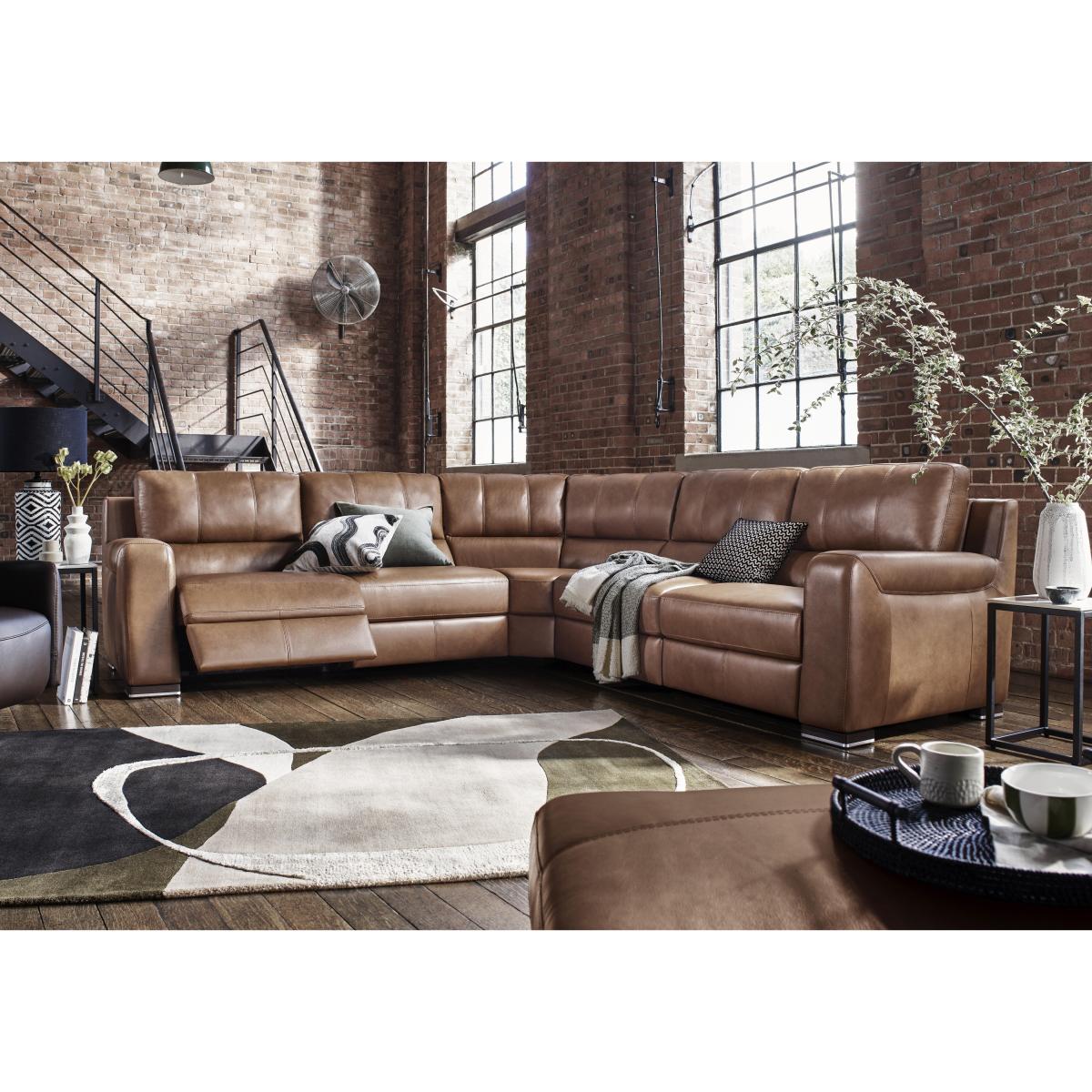 Choose a sofa or chair from the Marinelli Viali range and you’ll enjoy the very best of Italian style, comfort and craftsmanship. The look is modern and luxurious from top to bottom, with understated straight arms and body-cradling curves. And you’ll quickly discover that beneath the stylish exterior, these sofas and chairs are built for real comfort. Sprung seats and backs, power recliners and pocket spring seat cushioning promise relaxation like never before. Fully modular, the Marinelli Viali range is designed, crafted and finished in Italy and offered in both 100% leather and fabric upholstery. Large, luxurious and upholstered in 100% leather, this fabulous corner sofa with sprung seats and pocket spring cushions will change the way you relax – especially if you choose the power recliner model. Why you’ll love it Bring home contemporary Italian luxury. On-trend design with modern straight arms and curves in all the right places. Cushion perfection – seats have pocket spring and foam interiors for comfort with support. And those sprung seats and backs ensure evenly distributed body weight. Upgrade to the power recliner model for even more loungability. Relax at the touch of a button with the hidden recliner button down the inside seat cushion. 100% leather upholstery in an extensive choice of colours. Made in Italy. This large leather corner sofa is part of the modular Marinelli Viali range. Want something different? What you need to know Medium comfort level. Seat suspension: pocket springs. Seat cushioning: pocket springs, foam. Cushioning is fixed. Back suspension: webbing. Back cushioning: fibre. Cushioning is fixed. Arm cushioning: foam. Please allow time for recliner mechanisms to ease. Minor gaps are necessary to ensure ease of motion and may be exaggerated depending on floor type. To smooth and straighten fixed cushions, punch the back cushion’s top two corners and the seat cushion’s outer two corners, and pinch outwards. Leather has unique marks and characteristics with variation in colour and texture. Leather softens with use. Please read our upholstery care guide for more advice. Item code: VIALCNL-2-018