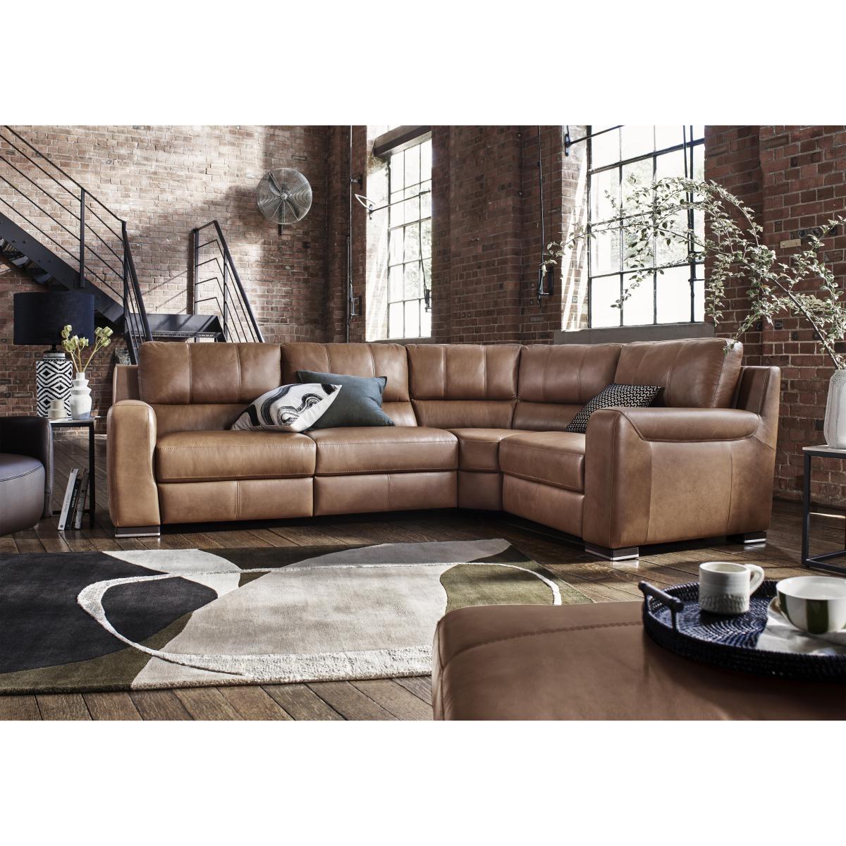 Choose a sofa or chair from the Marinelli Viali range and you’ll enjoy the very best of Italian style, comfort and craftsmanship. The look is modern and luxurious from top to bottom, with understated straight arms and body-cradling curves. And you’ll quickly discover that beneath the stylish exterior, these sofas and chairs are built for real comfort. Sprung seats and backs, power recliners and pocket spring seat cushioning promise relaxation like never before. Fully modular, the Marinelli Viali range is designed, crafted and finished in Italy and offered in both 100% leather and fabric upholstery. Lounging in Italian luxury is easy with this beautiful 100% leather corner sofa by Marinelli. With sprung seats and optional power recliners, true relaxation is yours. Why you’ll love it Bring home contemporary Italian luxury. On-trend design with modern straight arms and curves in all the right places. Cushion perfection – seats have pocket spring and foam interiors for comfort with support. And those sprung seats and backs ensure evenly distributed body weight. Upgrade to the power recliner model for even more loungability. Relax at the touch of a button with the hidden recliner button down the inside seat cushion. 100% leather upholstery in an extensive choice of colours. You can have the corner on the left- or the right-hand side. Made in Italy. This leather corner sofa is part of the modular Marinelli Viali range. Want something different? What you need to know Medium comfort level. Seat suspension: pocket springs. Seat cushioning: pocket springs, foam. Cushioning is fixed. Back suspension: webbing. Back cushioning: fibre. Cushioning is fixed. Arm cushioning: foam. Please allow time for recliner mechanisms to ease. Minor gaps are necessary to ensure ease of motion and may be exaggerated depending on floor type. To smooth and straighten fixed cushions, punch the back cushion’s top two corners and the seat cushion’s outer two corners, and pinch outwards. Leather has unique marks and characteristics with variation in colour and texture. Leather softens with use. Please read our upholstery care guide for more advice. Item code: VIALLCN-2-013