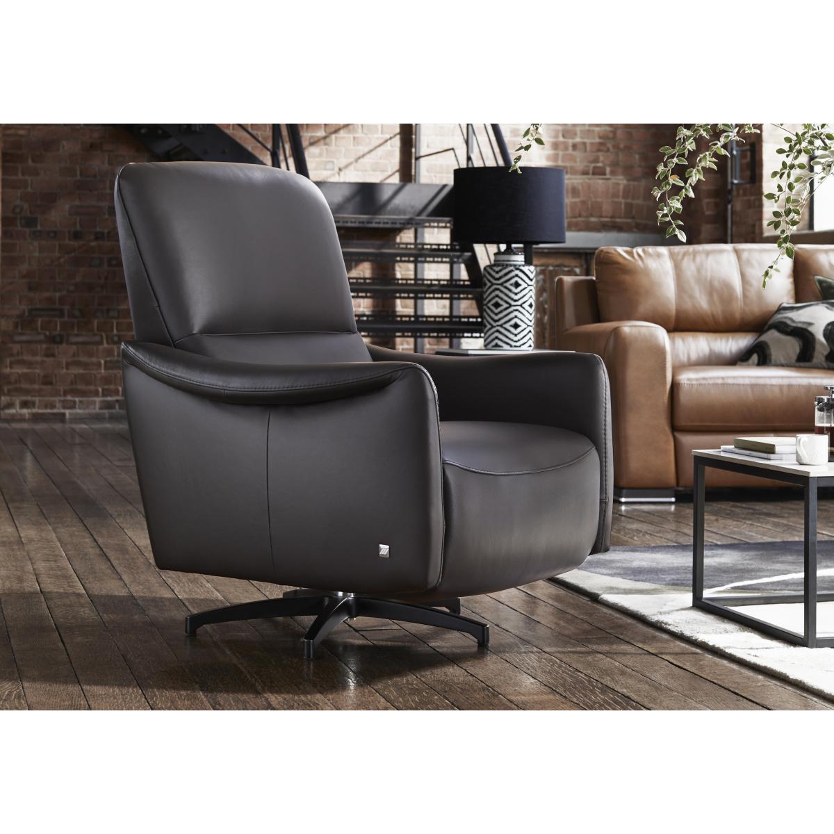 Choose a sofa or chair from the Marinelli Viali range and you’ll enjoy the very best of Italian style, comfort and craftsmanship. The look is modern and luxurious from top to bottom, with understated straight arms and body-cradling curves. And you’ll quickly discover that beneath the stylish exterior, these sofas and chairs are built for real comfort. Sprung seats and backs, power recliners and pocket spring seat cushioning promise relaxation like never before. Fully modular, the Marinelli Viali range is designed, crafted and finished in Italy and offered in both 100% leather and fabric upholstery. Bring a dash of contemporary Italian style – and exceptional comfort – to your living room with this swivel chair by Marinelli. Add a power recliner for even more ways to get comfy. Why you’ll love it Bring home contemporary Italian luxury. On-trend design with curves in all the right places. Cushion perfection – the seat has a pocket spring and foam interior for comfort with support. And that sprung seat and back ensure evenly distributed body weight. Upgrade to the power recliner model for even more loungability. Relax at the touch of a button with the hidden recliner button down the inside seat cushion. 100% leather upholstery in an extensive choice of colours. Made in Italy. This leather swivel chair is part of the modular Marinelli Viali range. Want something different? What you need to know Medium comfort level. Seat suspension: foam. Seat cushioning: foam. Cushioning is fixed. Back suspension: webbing. Back cushioning: foam. Cushioning is fixed. Arm cushioning: foam. Please allow time for recliner mechanisms to ease. Minor gaps are necessary to ensure ease of motion and may be exaggerated depending on floor type. To smooth and straighten fixed cushions, punch the back cushion’s top two corners and the seat cushion’s outer two corners, and pinch outwards. Leather has unique marks and characteristics with variation in colour and texture. Leather softens with use. Please read our upholstery care guide for more advice. Item code: VIALSCH-2-014