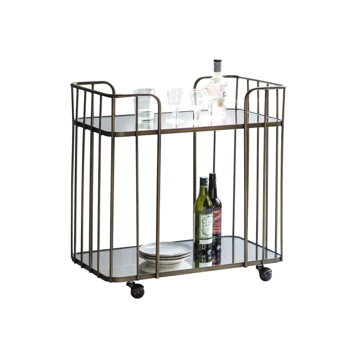 This entertaining essential features a toughened glass top and shelf with an art deco styled antique bronze finished metal frame and castors so it can effortlessly be wheeled into position whenever required. Material: Glass. Colour/Finish: Bronze.