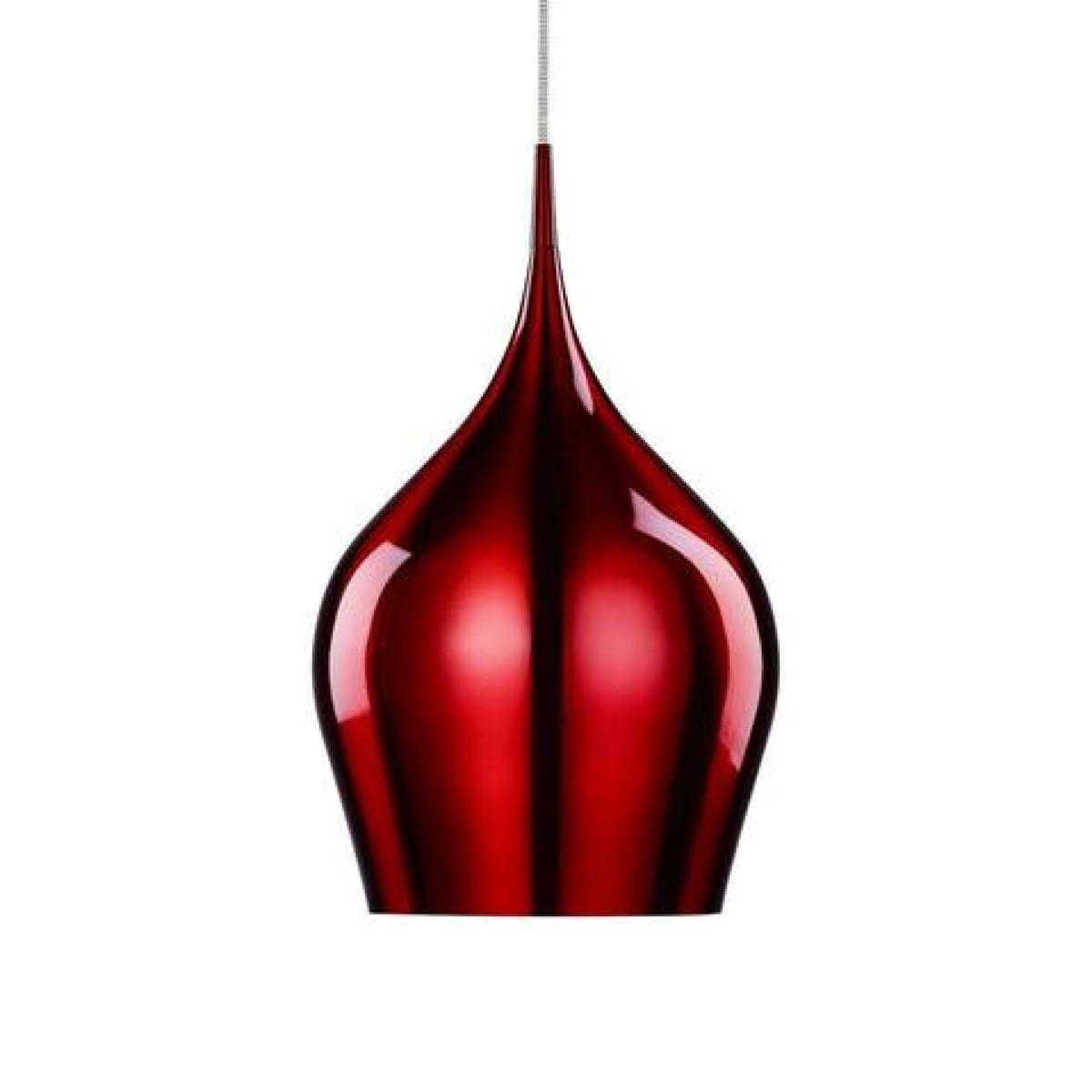 I love this red dome pendant for its bold colour and sleek silhouette, making it a great statement piece in a variety of interiors. It works particularly well in modern or contemporary spaces, adding a pop of colour to neutral schemes or complementing more vibrant colour palettes. For practical styling, consider hanging it over dining tables, kitchen islands, or in entryways to create a focal point. To keep the look cohesive, pair it with simple, minimalist furnishings or incorporate matching red accents elsewhere in the room. Its vibrant hue and clean shape make it versatile enough to suit both casual and more upscale interiors.